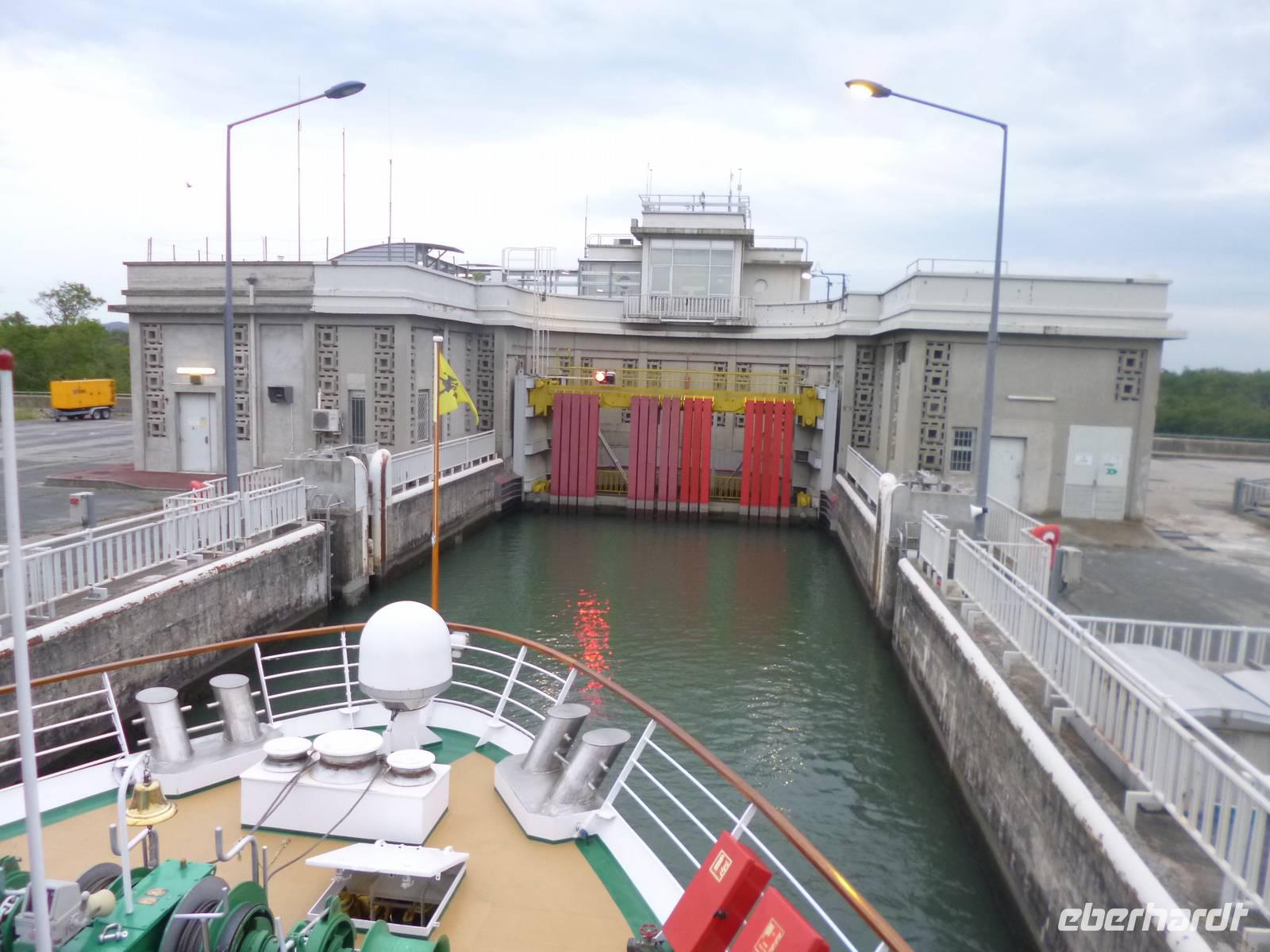 Zurück an Bord wartet bereits das Abendessen auf uns, welches wir heute allerdings in Etappen einnehmen. Denn gegen 20 Uhr fahren wir in die größte Schleuse Frankreichs, die Schleuse Bollène, ein. 23 Meter wird die A-ROSA Luna hinabgelassen, bevor wir unsere Fahrt Richtung Arles fortsetzen können.
