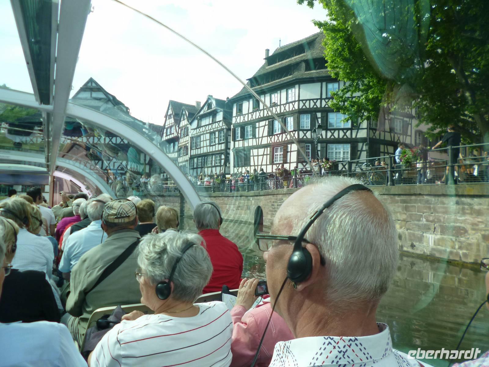 Für unsere Gruppe geht die Reise nach der Ausschiffung am nächsten Morgen jedoch weiter. Nun allerdings per Bus. Am frühen Nachmittag erreichen wir das Hotel Novotel in Straßburg für eine letzte Zwischenübernachtung. Nach einer kurzen Erfrischungspause gehen wir auf Erkundungstour ins pittoreske „Petite France". Malerische Fachwerkhäuser, schmale Gassen, lebhafte Plätze und französische Chansons machen den Charme dieses Viertels von Straßburg aus. An der Bootsanlegestelle von Batorama gehen wir erneut an Bord eines Schiffes. Diesmal zur 70-minütigen Rundfahrt auf der durch die elsässische Hauptstadt fließenden Ill. Durch das berühmte Gerberviertel „Kleinfrankreich" fahren wir zu den gedeckten Brücken, dem Vauban-Werk, zur Neustadt, bzw. dem Viertel aus der Kaiserzeit, sowie zum „Europa-Viertel" bevor das Schiff vor dem Rohan Palast wieder hält. Auf dem Weg zurück zum Hotel werfen wir noch einen Blick ins weltbekannte Münster, dem größten Bauwerk der Christenheit bis zum 19. Jahrhundert und absoluten Meisterwerk der gotischen Kunst.