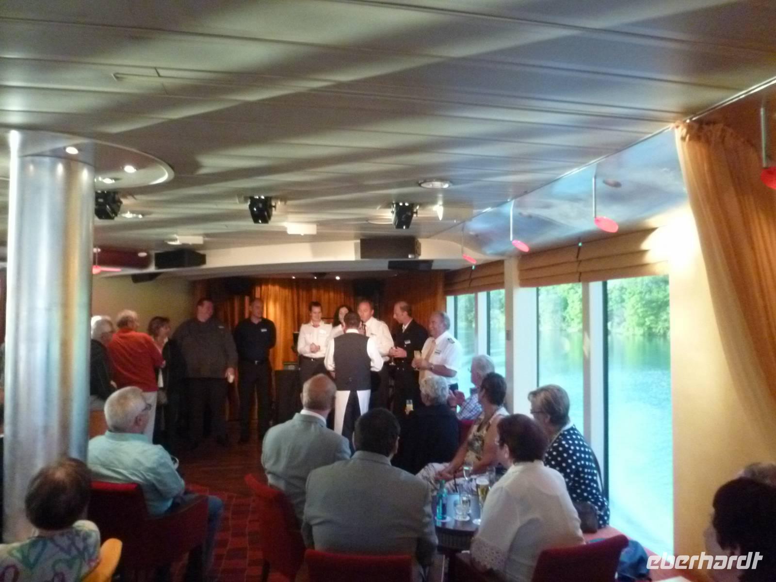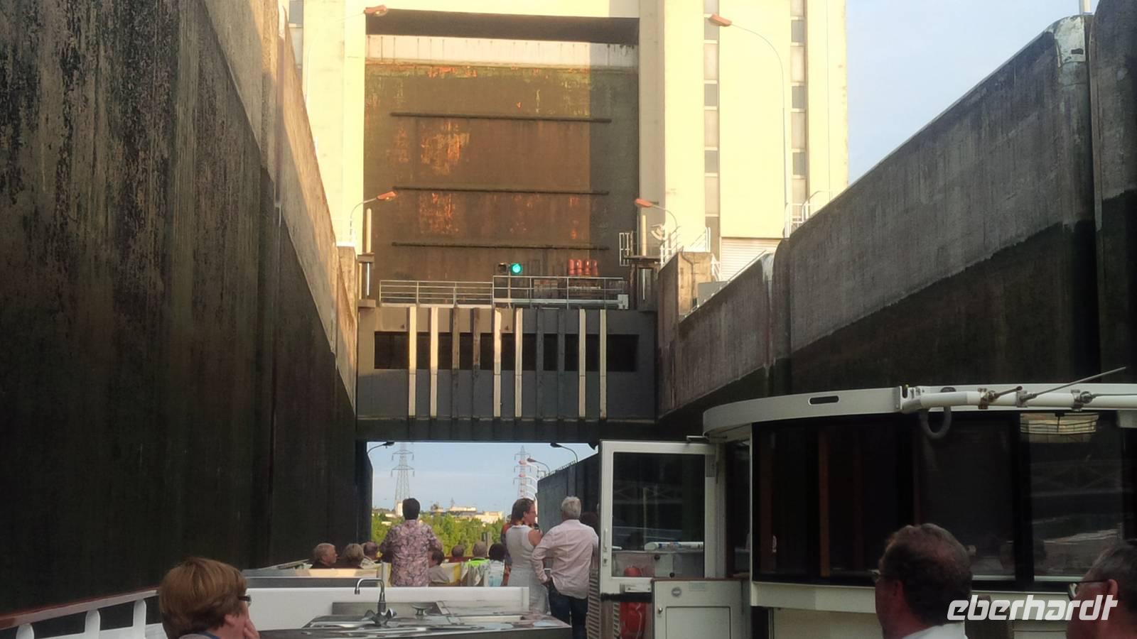 Wir schifften morgens aus und unsere Reise ging nun mit dem Bus wieder weiter. Der Himmel weinte heute zum ersten und letzten Mal und so fiel der Abschied leichter. Am frühen Nachmittag erreichten wir bei trockenem warmen Wetter das Hotel Novotel in Straßburg für eine letzte Zwischenübernachtung. Nach einer kurzen Erfrischungspause spazierten wir gemeinsam am Quai entlang, vorbei am Rathaus, wo eine Hochzeit stattfand, vorbei am Münster bis zur Bootsanlegestelle von Batorama. Dort gingen wir an Bord des kleinen Ausflugsschifffes. Bei einer 70-minütigen Rundfahrt auf der durch die elsässische Hauptstadt fließenden Ill sahen wir nochmals das berühmte Gerberviertel „Kleinfrankreich" fuhren zu den gedeckten Brücken, dem Vauban-Werk, zur Neustadt, bzw. dem Viertel aus der Kaiserzeit, sowie zum „Europa-Viertel" bevor das Schiff vor dem Rohan Palast wieder hielt. Auf dem Weg zurück zum Hotel gingen wir noch ins weltbekannte Münster, dem größten Bauwerk der Christenheit bis zum 19. Jahrhundert und absoluten Meisterwerk der gotischen Kunst, in dem gerade ein Gottesdienst stattfand. Danach bummelten Manche zu Fuß zum Hotel, andere nahmen die Tram. Nach einem leckeren 3-Gang Menü konnte man noch die Stadt am Samstagabend bei herrlichen Temperaturen genießen.