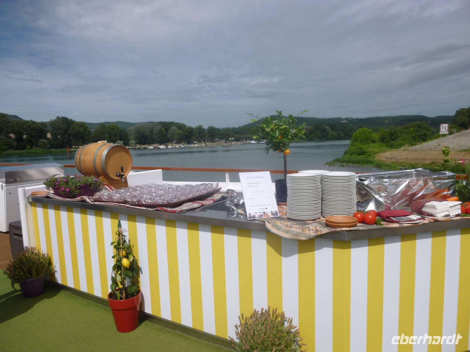 Heute konnte man bei einer ausführlichen Stadtführung die Sehenswürdigkeiten von Avignon kennenlernen. Auch das berühmte kolossale Bauwerk „Pont du Gard" und Uzés wurden heute als Ausflug angeboten. Beides fand guten Anklang bei den Gästen. Gerne wäre sie noch viel länger in Uzés geblieben, aber alles hat einmal ein Ende und so kehrten alle Gäste mit zahlreichen Eindrücken zurück an Bord. Dann legte die A-ROSA Luna ab in Richtung Norden. Auf dem Sonnendeck gab es frische Austern und dazu konnte ein Glas Champagner getrunken werden. Bei herrlichem Sonnenschein liefen wir dann aus.
