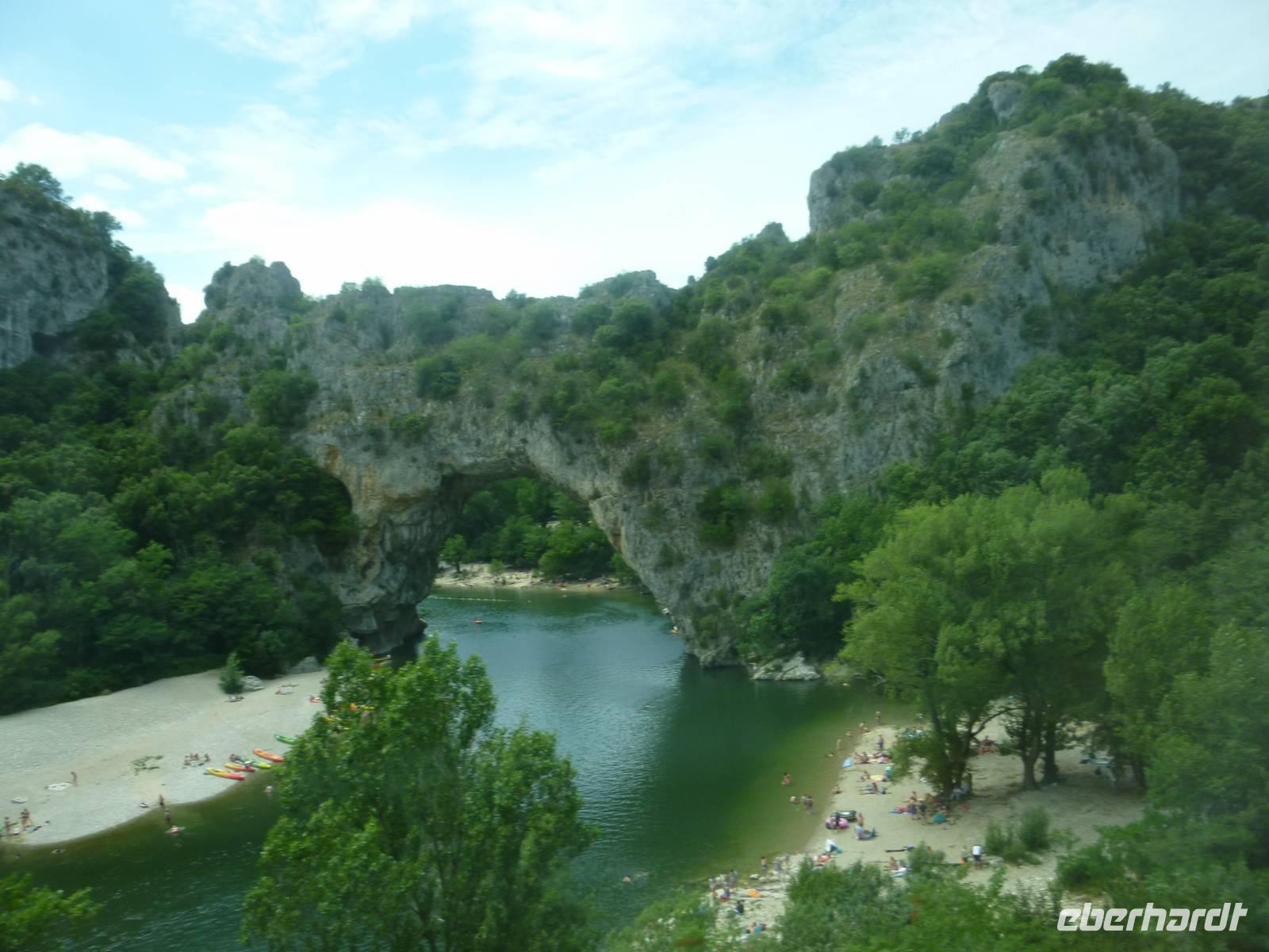 Als wir Viviers erreichten schien herrlich wie immer die Sonne und wir konnten vor dem Mittagessen und dem heutigen Ardeche-Ausflug auf dem Sonnendeck geniessen. Vormittags fand heute auch eine sehr interessante technische Fragestunde vom Leitenden Technischen Offizier statt. Wir ließen uns sehr unterhaltsam über den Bau der A-ROSA Luna, den Maschinenraum, die Küche und Wäscherei sowie über das Leben der Crew an Bord aufklären. Vor dem Mittagessen gab es einen Vormittagsbrunch an Deck, bei dem es Chardonnay Wein und Quiche Luna gab. Einige Gäste erkundeten Viviers auf eigene Faust. Diese kleine Stadt hat ihren mittelalterlichen Grundriss sowie eine Anzahl von Renaissancebauten noch erhalten. Gut gestärkt nach dem Brunch und dem Mittagsbuffet fuhren wir zuerst ins Lavendelmuseum bei St. Rèmeze. Hier erfuhren wir viel über den Anbau und die Verarbeitung des Lavendels, fotografierten und schnupperten ein schönes Lavendelfeld und konnten Lavendelöl und andere schöne Dinge kaufen. Dann ging es mit dem Bus weiter zu den Schluchten der Ardèche und dem 32 Meter hohen natürlichen Brückenbogen Pont d'Arc. Wir lassen den herrlichen Ausblick bei einem Fotostopp auf uns wirken, bevor wir zur Grotte „de la Madeleine" weiterfuhren. Hier musste man 183 Treppenstufen in 40 Metern Tiefe gehen, um dann mit einem musikalischen Lichtspiel belohnt zu werden. Die anderen Gäste hielten sich im Café auf oder blickten auf die Schlucht erneut und die „Kathedrale" -Felsen und pausierten im Schatten. Wieder gab es ein sehr gutes Abendessen- Buffet währenddessen wir gegen 20 Uhr in die größte Schleuse Frankreichs, die Bollène, einfuhren. 22 Meter wird hier die A-ROSA Luna hinabgelassen, bevor die Fahrt Richtung Arles weiterging.