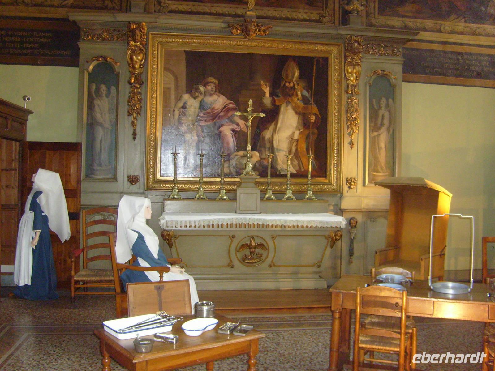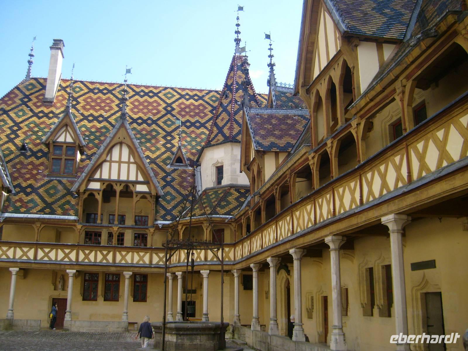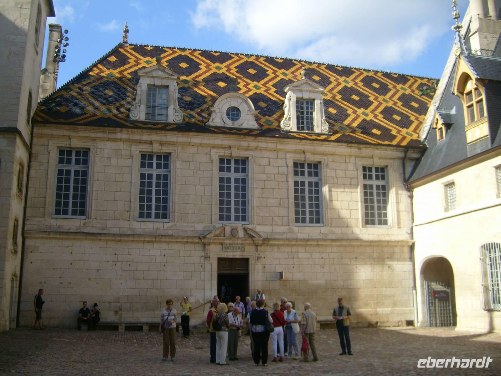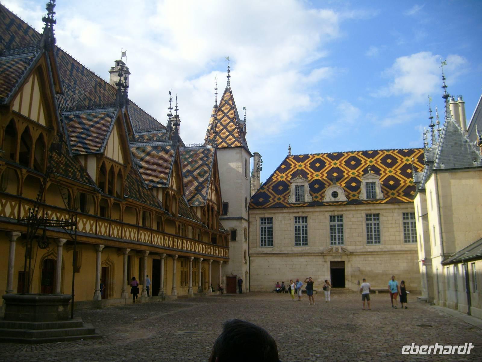 Jeden Morgen beginnt der Tag für Frühaufsteher schon ab 6.30Uhr mit Cafe & Crossaints. Danach gibt es das reichhaltigere Frühstück am Buffet. Die Auswahl ist über die Maße reich. Wir haben keine festen Sitzplätze im Restaurant und das ist gut so. Mit uns fahren Gäste aus dem BL Rheinland/Pfalz, BL NRW, Berlin, Hamburg. So kommen wir mit allen ins Gespräch. Während des Frückstücks macht die A-ROSA einen technischen Stopp in Tournus. Wir bleiben an Bord. Es wird zu einem „Französischen Abend“ geladen, den wir gerne annehmen. Die Liste ist schnell voll. Nach dem Mittagessen starten 2 Ausflüge. Einmal in die Stadt der Herzöge - nach Dijon oder ein Kulturtrip nach Beaune und in das Hôtel Dieu. Der Weg nach Beaune führt uns entlang der „Route des Grands Crus“ durch kleine verträumte Weindörfer des Burgunds. Die im Herbst zum Leben erwachen, denn es ist Weinlese. Wir sehen viele fleißige Helfer die die Weinstöcke abernten. Nur hin und wieder kommt mal eine Maschine "Vollernter" zum Einsatz. Höhepunkt der Tour ist aber das geschichtsträchtige Hospiz, "Hôtel Dieu". Heute ein Museum. Aber Bis 1971 war es noch Krankenhaus. Der modernere Teil ist heute Altenpflegeheim und wird finanziert aus der jährlichen Versteigerung wertvoller Weine der Gegend. Nach kurzer Freizeit fahren wir zurück zum Schiff. Nach dem Abendessen stellt und die Hotelmanagerin den Kapitän der A-ROSA Luna und die Offiziere vor. Mit einem Glas Sekt stoßen wir an. Santé!