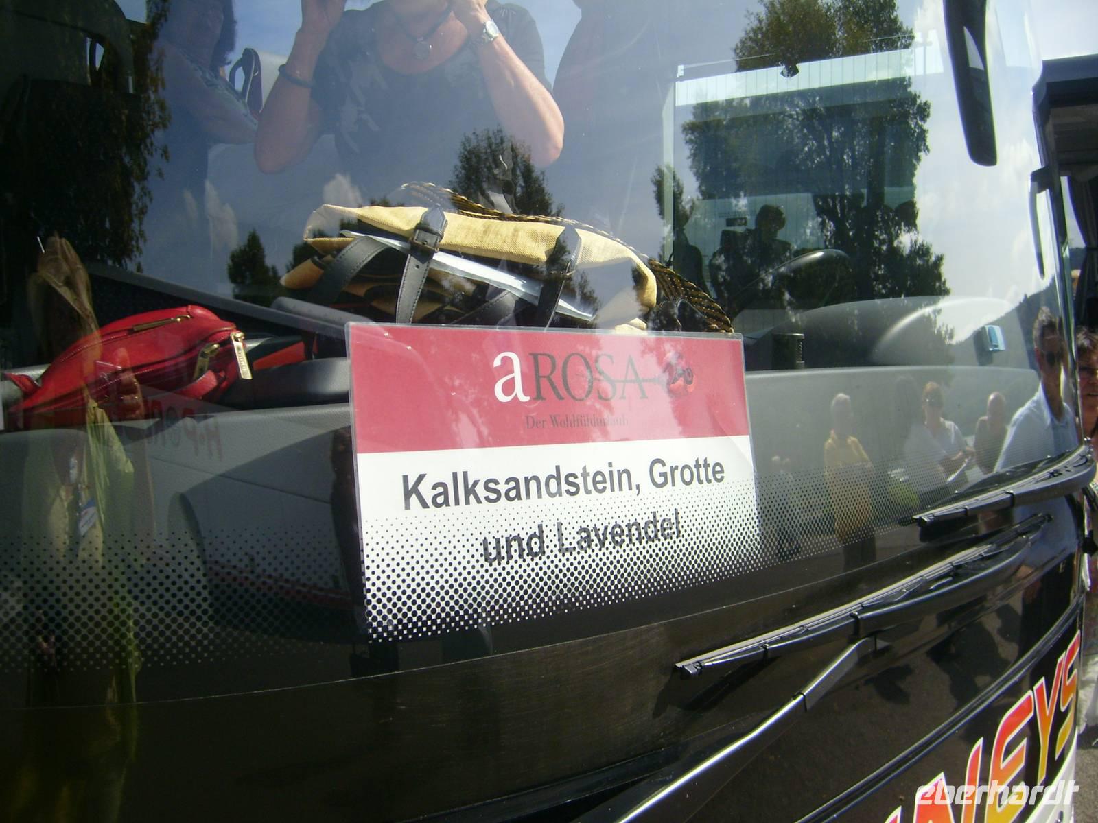Wir machen einen Fotostopp an dem Naturwunder, dem32m hohen natürlichen Brückenbogen „Pont d’Arc. Wir sind überwältigt von dem herrlichen Anblick. Doch nach uns warten weitere Busse um in der kleinen Bucht einfahren zu können. Und so fahren wir weiter in das Lavendelmuseum. Sehen einen Film über die gewachsene Tradition des Anbaus von Lavendel in Frankreich. Nur der echte Lavendel wird hier verkauft. Mittlerweile wird der Lavendel, vor allem in China, chemisch hergestellt. Wir holen uns eine Nase vom „echten“ und nehmen den Duft in Form von Seife, Öl, kleinen Blütensäckchen mit nach Hause. Weiter geht es zur natürlichen „Grotte de la Madeleine“. Nicht alle Gäste können aus gesundheitlichen Gründen - hohe Luftfeuchte, 183 Stufen, 40m tief - mit hinein. Wir oben gebliebenen haben einen phantastischen Blick auf die Schluchten und die Ardéche. Spüren etwas vom Minestral - dem typischen Wind der Ardéche. Vorbei an einer intakten Flora mit Steineichen, Judasbaum, Rosmarin, Wachholder, Zeter, Thymian, fährt uns der Bus zurück zur A-ROSA Luna.