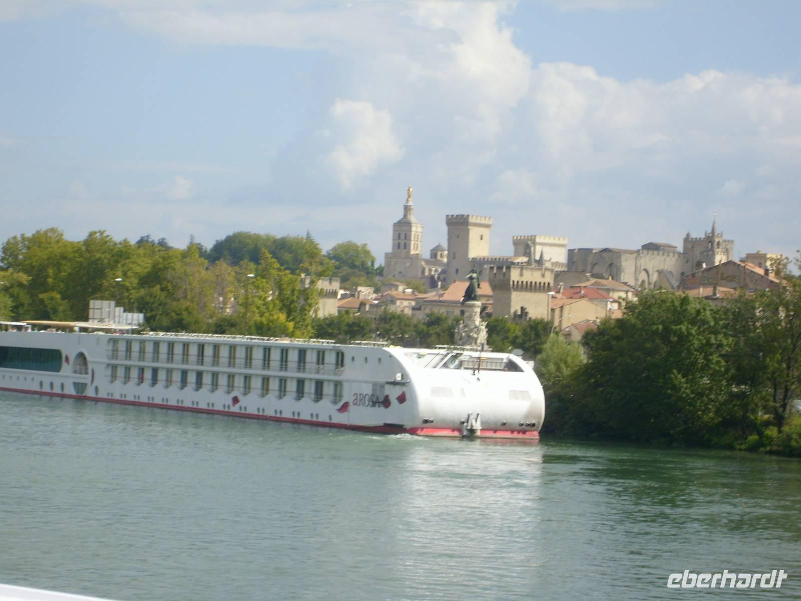 Gäste die den Ausflug zur „schönsten Stadt“ Frankreichs, nach Aix-en-Provence gebucht haben starten 13.00 Uhr mit dem Bus ab Arles. Die A-ROSA Luna legt ab und fährt weiter in Richtung Avignon. Wir kommen gegen 18.30Uhr in Avignon an und bestaunen den mächtigen Papstpalast der das Stadtbild dominiert. Jetzt kommen auch unsere Ausflügler wieder an Bord und berichten von der Stadt der 1000 Brunnen. Diese Stadt ist fast schöner als Paris. Sie hat eben südlichen Charme.