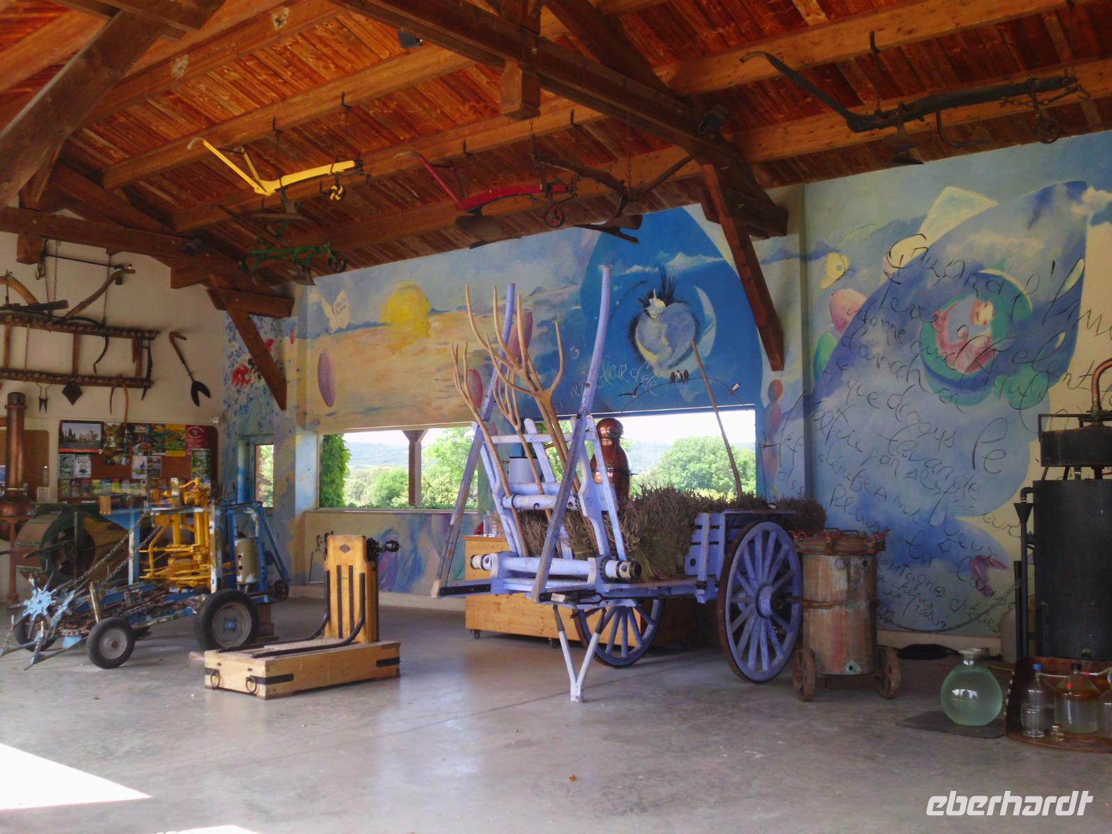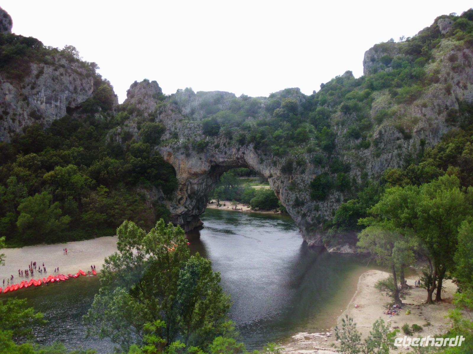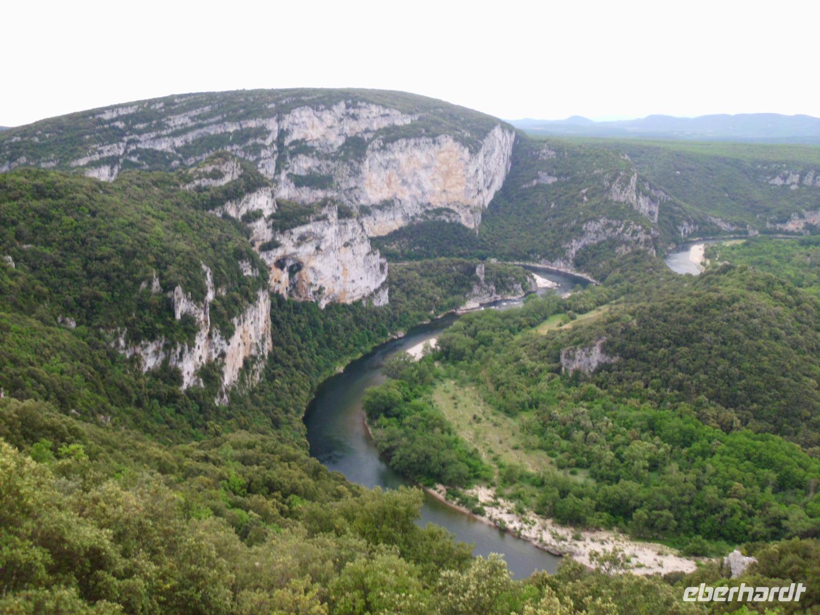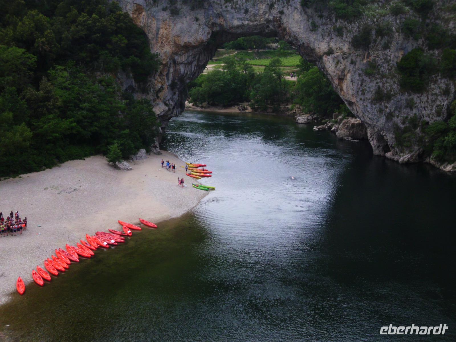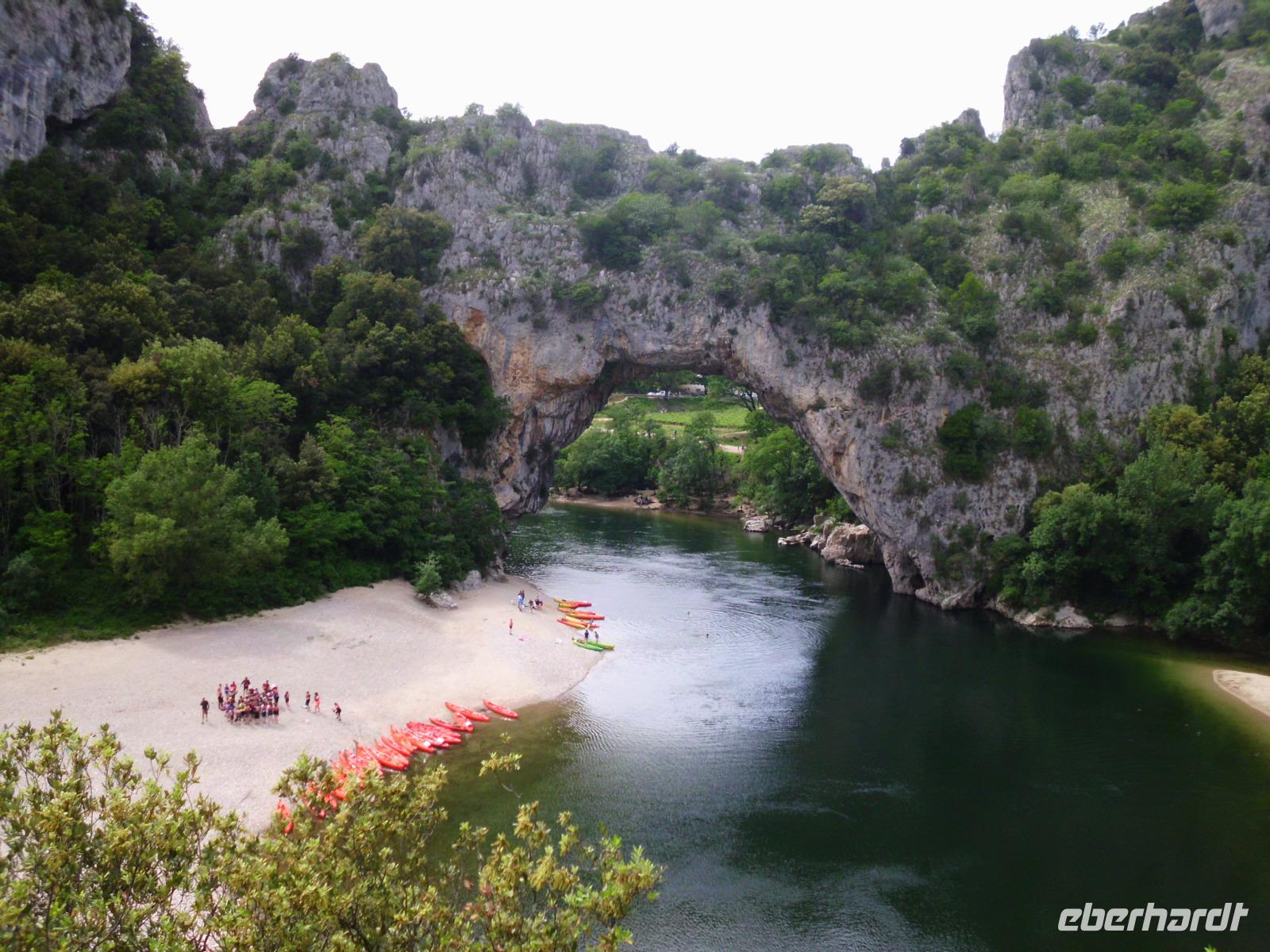 Nach dem Mittagessen beginnt unser Ausflug an die Ardeche, an dem fast die ganze Gruppe teilnimmt und der Tag soll sich zu einem Höhepunkt unserer Reise gestalten. Wir Gäste der Eberhardt-Gruppe bekommen einen eigenen Bus und haben mit Reiseleiter Alan das große Los gezogen. Das hat wirklich Spaß gemacht mit ihm. Dazu auch noch herrliches Wetter für unsere vielen Fotomotive. Alan erklärt uns mit viel Humor im Museum die Lavendelherstellung, die verschiedenen Sorten, Ernte und Verarbeitung. Wir erfahren, dass Lavendel kein Wasser braucht, je trockener desto besser. Bis zur Blüte, deren Pracht wir nur auf Fotos erahnen können, dauert es aber noch bis Mitte Juni. Auf der Panoramastraße fahren wir an der Ardeche entlang, traumhaft sind die Ausblicke und stoppen schließlich am imposanten Felsentor "Pont d`Arc", um Fotos von diesem Naturgebilde zu machen. Die Ardeche ist ein Eldorado für Wassersportler, vor allem Kanu. Am nächsten Halt dürfen wir auch "Napoleon und Bismarck", 2 wilde Ziegen kennen lernen. Den Abschluss unserer Tour bildet der Besuch der Tropfsteinhöhle.