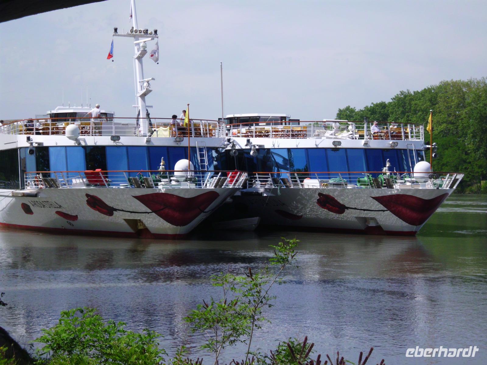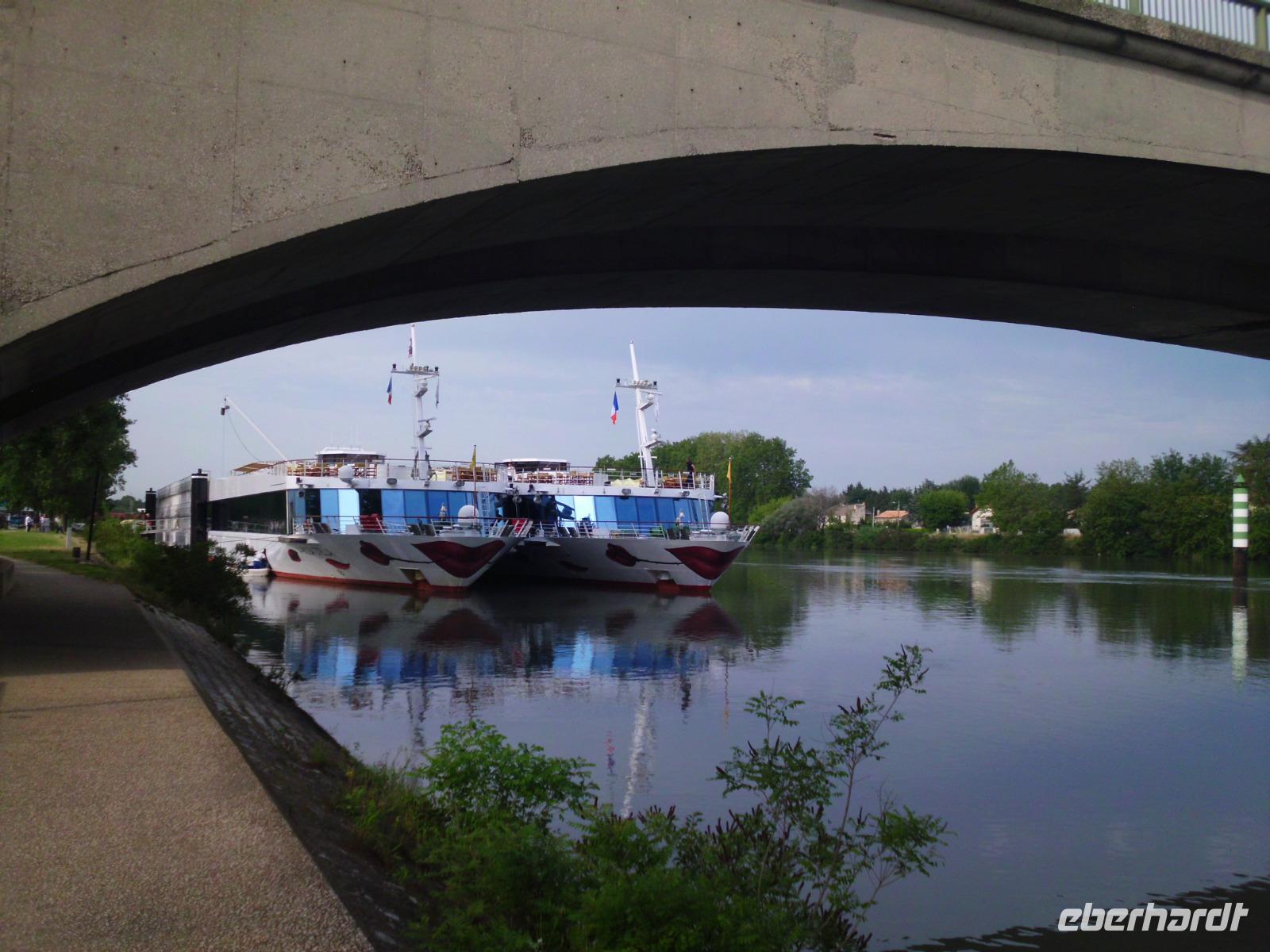unser Schiff hat wieder Lyon passiert und fährt nun weiter südwärts auf der Rhone. Wir bewältigen mehrere Streckenkilometer bis wir mittags gegen 10 Uhr vorzeitig im Städtchen Viviers ankommen. Kurz vorher jedoch haben wir bei Kilometer 164 die zweitgrößte Schleuse unserer Reise, die Ecluse Chateauneuf mit 18m Unterschied passiert, ein beeindruckendes Spektakel.