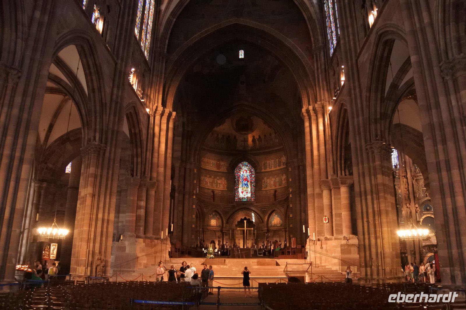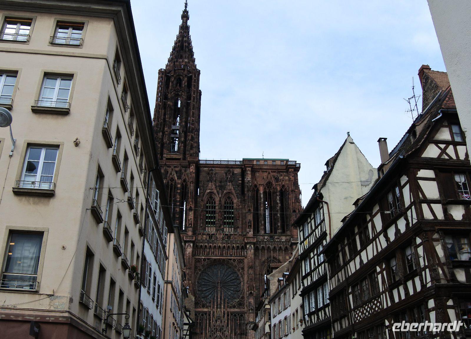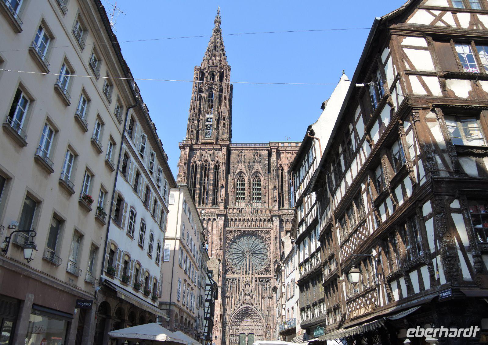 Vom Flughafen Dresden ging um 06:10 Uhr unsere Reise los! Mit einem modernem und bequemen 5 Sterne Bus der Eberhardt TRAVEL Partnerfirma Wies Faszinatour und unserem freundlichem Busfahrer Holger, fuhren wir Richtung Frankreich. Unterwegs stiegen noch weitere Reisegäste in Siebenlehn, Chemnitz und der Raststätte Teufelstal in den Bus. Nachdem alle Reisegäste an Bord waren, fuhren wir zunächst zur unserem Zwischenziel, Straßburg. Während der flotten aber sicheren Fahrt ins Elas, legten wir zwei gemütliche Pausen an den Autobahnraststätten Rimbach und Bergheim/Bergstraße ein und erreichten um 15:30 Uhr unser Hotel in Straßburg. Nachdem wir unsere Zimmer im modernen 4 Sterne Hotel Novotel am Rande der Altstadt bezogen hatten, machte unser Reiseleiter Gerd mit uns um 16:00 Uhr einen Spaziergang zum Straßburger Münster, damit wir vor dessen Schließung um 19:00 Uhr, dieses gewaltige und bedeutende sakrale Bauwerk, dass im Jahre 2015 sein 1000-jähriges Bestehen feierte - von Innen bewundern konnten. Nach diesem ersten eindrucksvollen Erlebnis für den Geist und die Seele, kehrten wir in unser Hotel zurück um ab 19:00 Uhr - bei einem schmackhaften 3-Gänge Menü - auch etwas für unser körperliches Wohl zu tun. Einige von uns machten nach dem Abendessen noch einen abendlichen Bummel durch die herrlich beleuchtete Straßburger Altstadt, mit seinen vielen Kulturdenkmälern und romantischen Fachwerkhäusern.