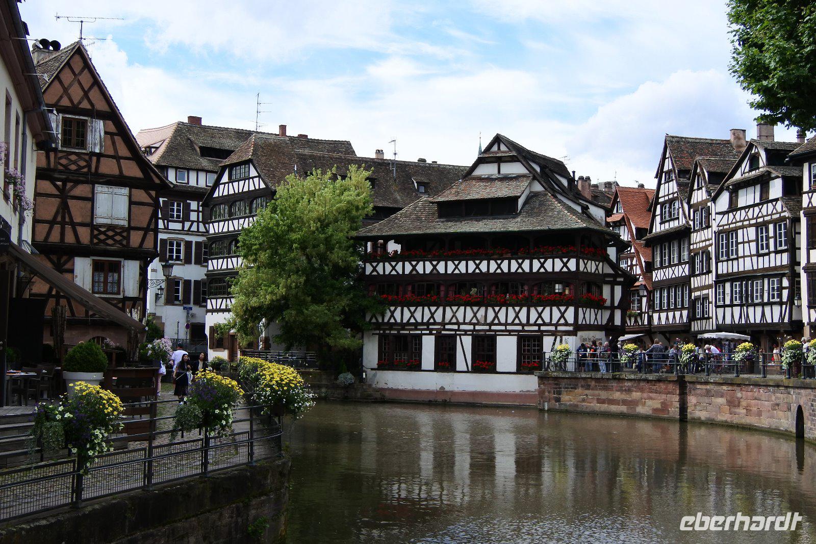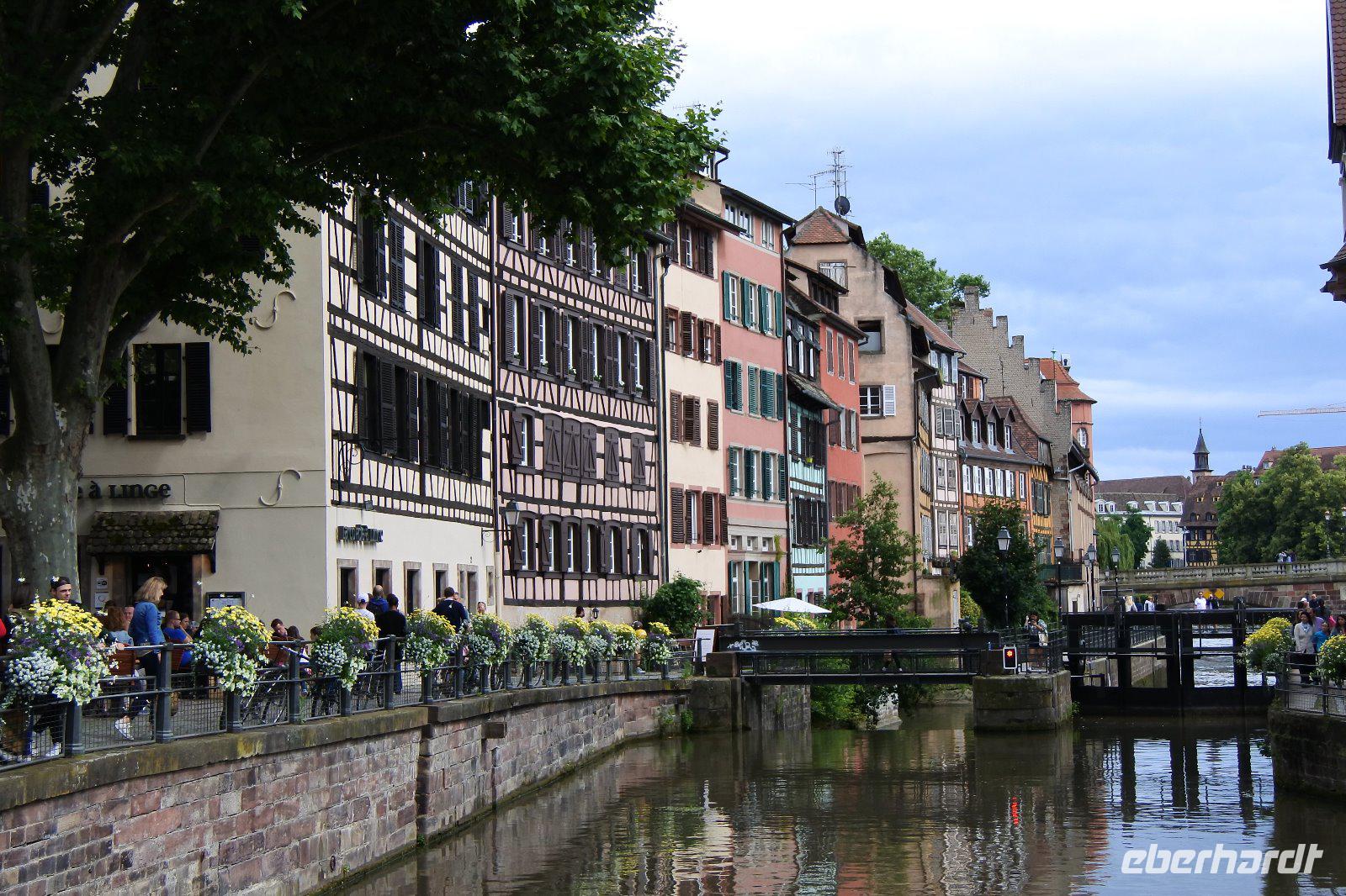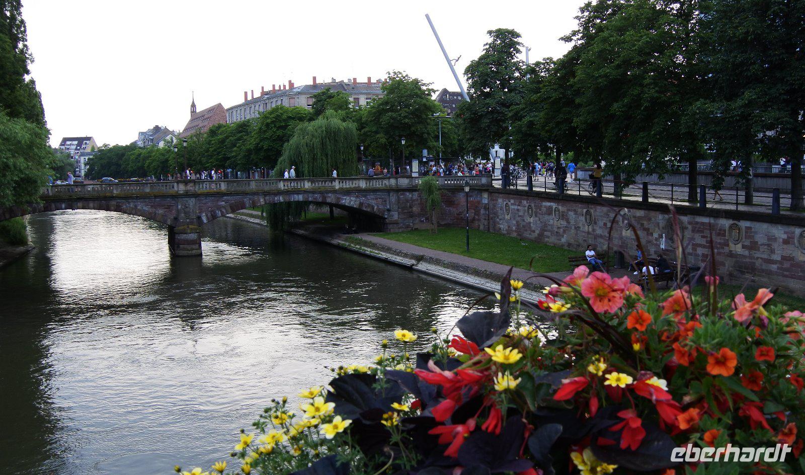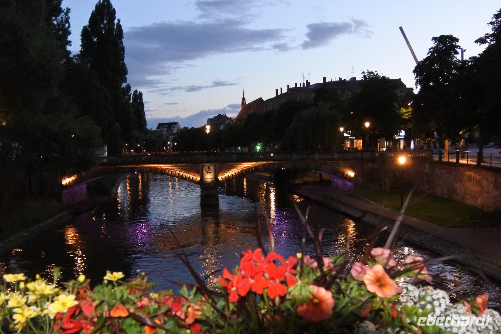 Nachdem wir unsere Koffer vor die Kabinen gestellt haben, gingen wir um 07.00 Uhr zu unserem Abschieds-Frühstück an Bord der A-Rosa Luna. Nach dem Frühstück wurde das Gepäck von der Crew in den Eberhardt TRAVEL Bus gebracht, der pünktlich um 07:45 Uhr an der Pier ankam, um uns abzuholen. Um 08:00 Uhr fuhren wir mit dem Bus nach Straßburg ab. Nach zwei Pausen an Raststätten bei Beaune und Belfort, kamen wir um 14:45 Uhr am Novotel in Straßburg an, wo wir schon bei der Hinfahrt übernachtet haben. Um 16:00 Uhr ginge es dann zur einer Bootsfahrt durch die Kanäle von Straßburg. Auf dem Weg dorthin, machten wir noch einen Abstecher durch Petit France, einem kleinen malerischen Viertel mit seinen typischen Fachwerkhäusern. Von 17:00 - 18:15 Uhr machten wir eine erlebnisreiche und informative Fahrt auf einem Panorama-Boot durch Straßburg und haben die sehenswerte Stadt vom Wasser aus mit einem ganz anderen Blickwinkel bewundern können. Um 19:00 Uhr hatten wir ein gute 3-Gang Menü als Abendessen im Novotel mit einer Preisverleihung an die 5 Sieger des Reise Quiz die Gerd während der Reise durchgeführt hat. Als Preis gab es ein Säckchen Lavendel aus der Provence. Nach dem Abendessen haben einige von uns das Fußballspiels der Europameisterschaft zwischen Deutschland und Italien in der Hotellobby im TV angeschaut. Gerd ging mit einem Gast zur Illumination des Straßburger Münsters um 22:30 Uhr um für uns einige Fotos von dem Ereignis zu machen.