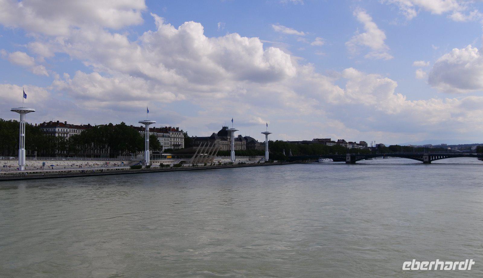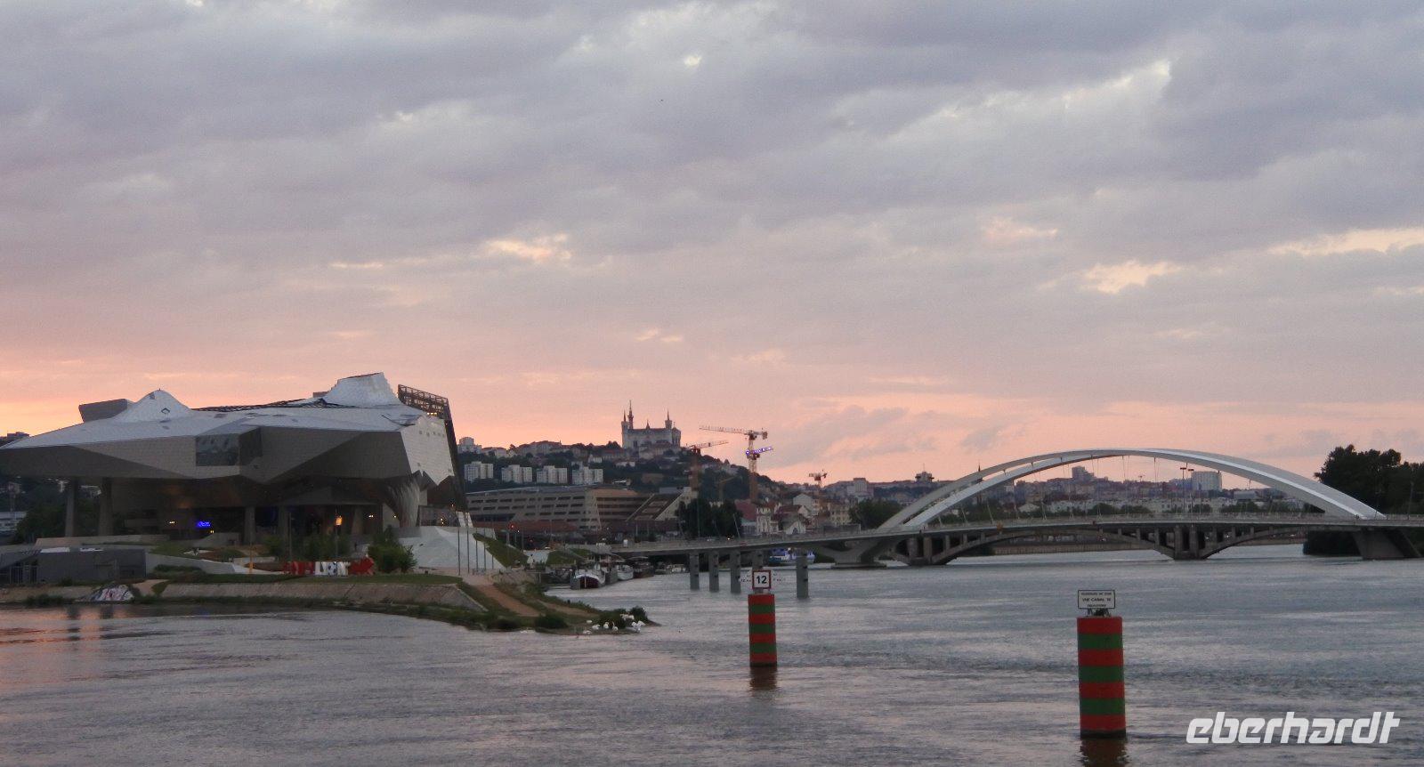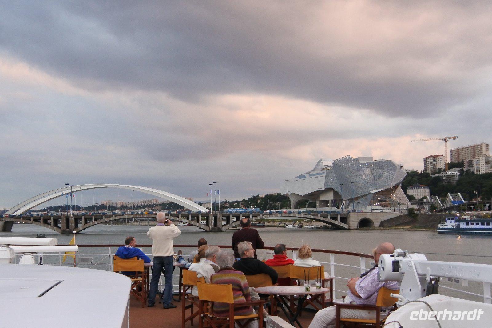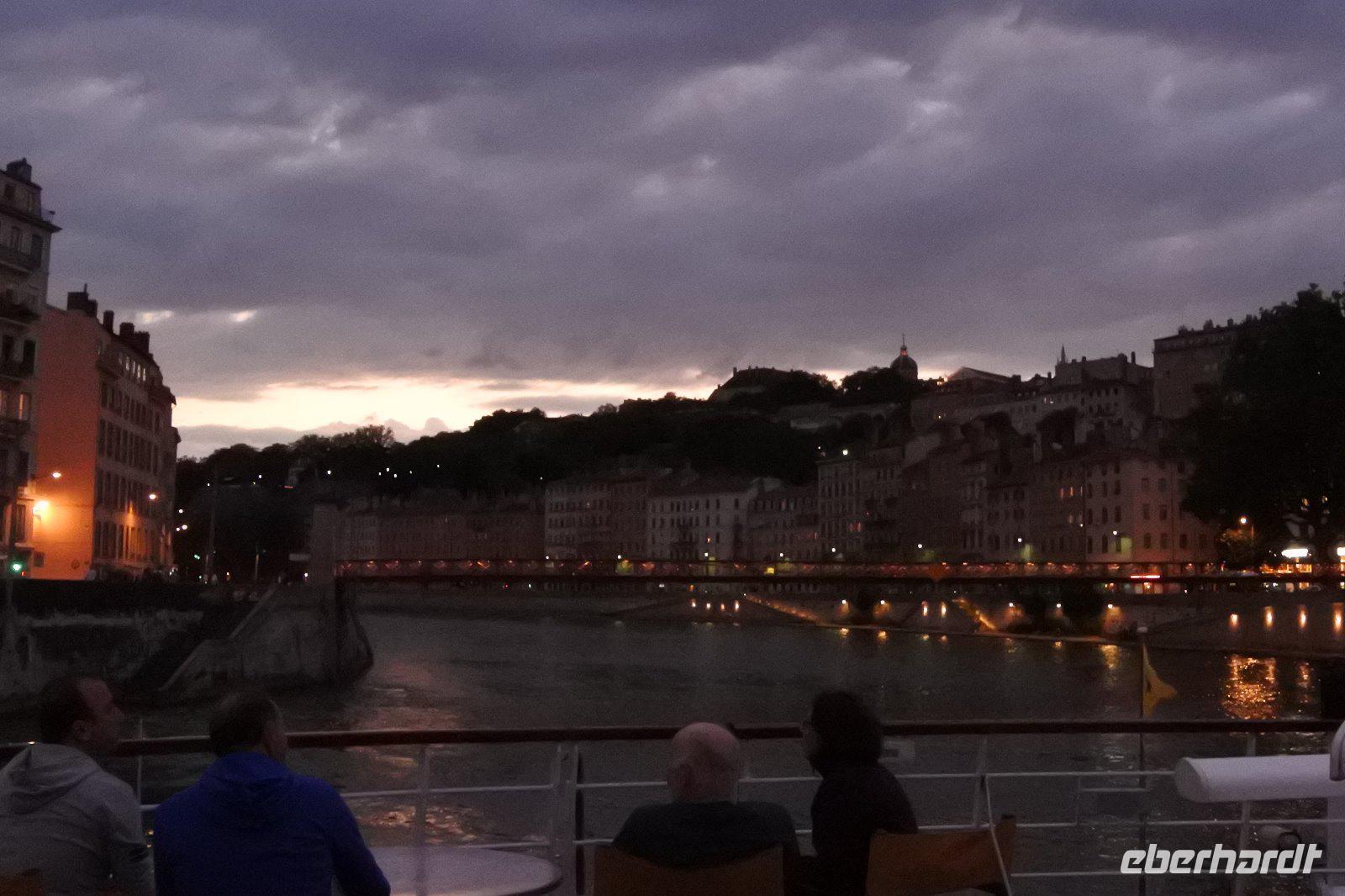 Gegen 08:30 Uhr legte die A-Rosa Luna einen Zwischenstopp in Vienne, einer Stadt 30 Km vor Lyon, ein. Von dort begann um 09:00 Uhr die Stadtrundfahrt durch Lyon mit dem Bus. Die A-Rosa Luna fuhr anschließend mit wenigen Passagieren nach Lyons weiter. Bei der Stadtrundfahrt mit einer örtlichen Stadtführern, haben wir neben der Englise Notre Dame de Fourviere einige historische Hausgänge in der Altstadt, die eindrucksvolle Oper, das Rathaus Auf dem Place des Terreaux und ein Seidensticker-Atelier besichtigt. Gegen 12:30 Uhr kamen wir an der A-Rosa Luna an, die inzwischen an der Pier am Parc de Saone neben einem großen Einkaufszentrum festgemacht hat. Um 15:00 Uhr machte Gerd mit uns eine Fahrt mit der Straßenbahn durch Lyon, zu der Halles Paul Bocuse, einer Markthalle mit fast allen regionalen Spezialitäten. Gerd lud uns zunächst zur einer Camembert Verkstung an einem typischen Käsestand ein und machte dann mit uns einen kleinen Rundgang entlang der vielen Ständen. Nachdem wir die französischen Spezialitäten und Köstlichkeiten nicht nur angeschaut, sondern auch als Mitbringsel für Zuhause gekauft haben kehrten wir um 17:00 Uhr mit der Straßenbahn wieder zu m Schiff zurück. Um 18:30 Uhr gab es einen Abschiedscocktail des Kapitäns und der Schiffsführung in der Lounge. Unser Reiseleiter bedankte sich beim Kapitän und der Crew der A-Rosa Luna im Namen der Eberhart TRAVEL Gäste für die schöne Flusskreuzfahrt. Danach gab es das letzte Abendessen auf dem Schiff und den letzten Cocktail in der Lounge.