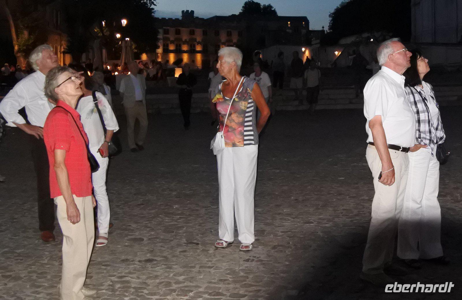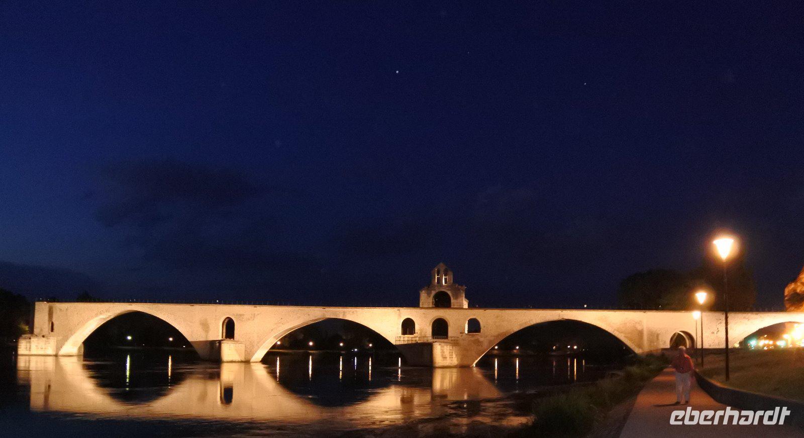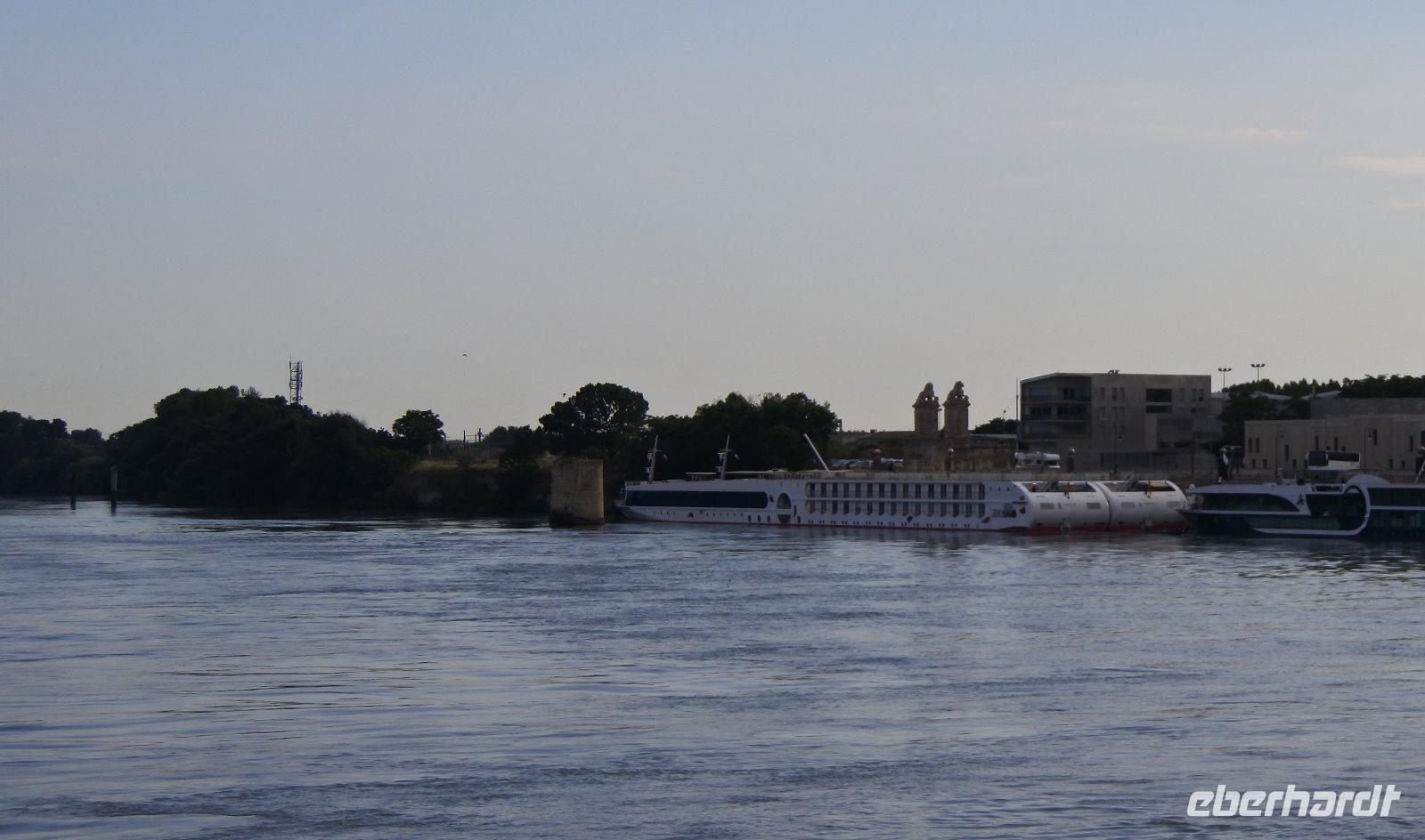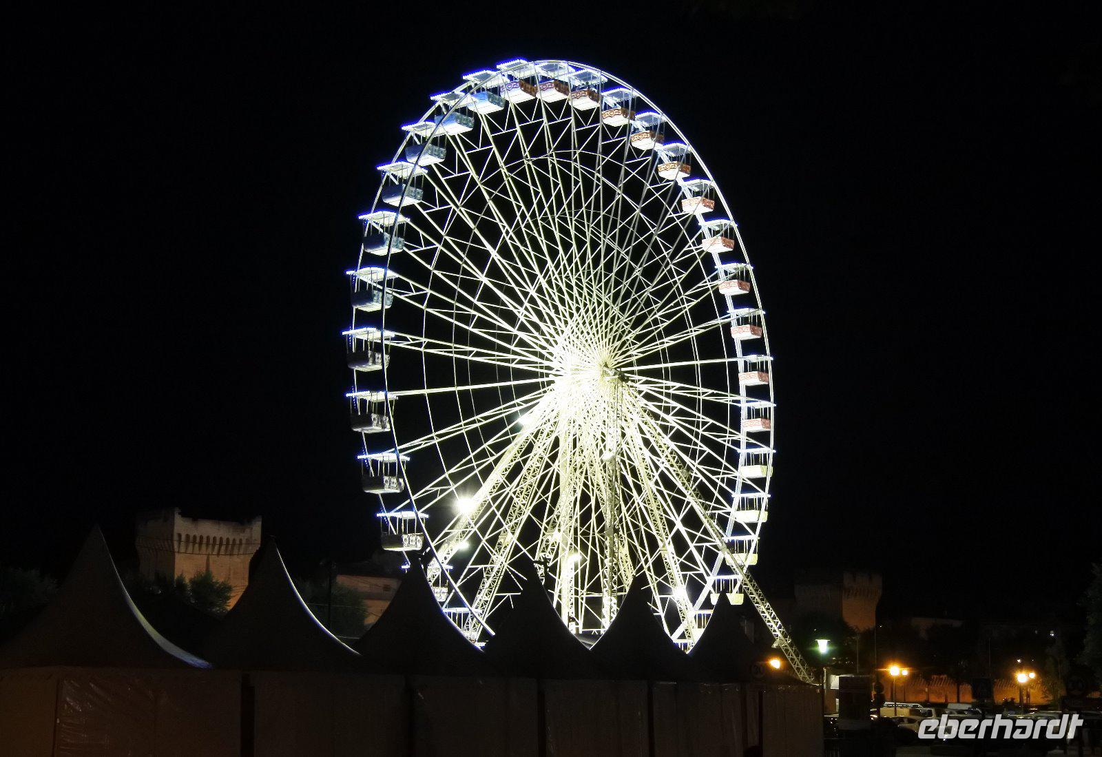 Gegen 05:00 Uhr kam das in Arles an, unserem südlichsten Reiseziel auf der Rohne. Da einige von uns den Ausflug um 09:00 Uhr in die Camargue gebucht haben, machte Gerd mit diesen Gästen nach dem Frühstück von 07:45 - 08:45 Uhr einen Rundgang durch die unweit gelegene Altstadt, damit nicht nur die Camargue erleben, sondern auch die bedeutenden römischen und romanischen Kulturdenkmäler von Arles besichtigen konnten. Von 09:00 - 11:30 Uhr machte Gerd mit den übrigen Gästen einen ausgiebigeren Rundgang durch Arles, und zeigte uns neben der römischen Arena, dem römischen Theater, der kleinen romanischen Kirche Noter Dame, den Place de Republic mit seiner wunderschönen Kathedrale, dem ehemaligen Benediktiner Kloster und dem historischen Rathaus. Auf dem Place de Forum mit dem „Van Gogh Café", hatten wir noch Zeit zur freien Verfügung und gingen durch die engen romantischen Gassen an den Constantin Therme vorbei zur Rohne, wo wir schon von weitem die A-Rosa Luna liegen sahen. Nach dem Mittagessen um 12:30 Uhr unternahmen einige von uns einen Ausflug in einer der schönsten Städte Frankreichs, Aix-en-Provence und stiegen wieder in Avignon auf das Schiff. Das Schiff legte um 14:00 Uhr die Rohne hoch Richtung Avignon ab. Die meisten von uns hatten wieder einen schönen sonnigen Nachmittag auf der A-Rosa Luna und jeder entspannte auf seine Weise. Um 17:30 Uhr leget das Schiffes in Avignon, nahe der Altstadt an. Nach einem Grillbuffet auf dem Sonnendeck machte unser Reiseleiter Gerd von 21:00 - 22:30 Uhr mit uns einen Rundgang durch die romantisch beleuchte Papststadt. Dazu hatte er zwei lustige Überraschungen für uns vorbereitet. Kurz nachdem wir das Schiff verlassen haben, lud er uns im Namen von Eberhardt TRAVEL auf eine erlebnisreiche Fahrt mit dem hohen Riesenrat ein, das direkt neben dem Rohne Ufer stand. Vom Riesenrad aus hatten wir einen einmaligen Blick auf das abendliche Avignon. Dann ging es durch die eindrucksvolle Stadtmauer zur Hauptstraße, wo wir das Rathaus aus dem 17 Jh. und das prachtvolle Theater bewunderten konnten. Beim Rathaus gab es die zweite Überraschung; eine Fahrt auf einem wunderschönen nostalgischen Karussell. Wir fühlten uns dabei in unsere Kindheit zurückversetzt. Nach der Karussellfahrt wartete ein High Light auf uns, der gewaltige Papstpalast auf dem Place du Palais, Europas größtes gotisches Bauwerk auf dem. Den Palst konnten wir in einer herrlichen Beleuchtung von einer Anhöhe am der Kathedrale de Avignon bewundern. Durch engen Gassen gingen wir anschließen zur berühmten Avignon Brück, die wir ebenfalls in einer schönen Beleuchtung bestaunen konnten. Am Ufer der Rohne entlang kehrten wir zum Schiff zurück