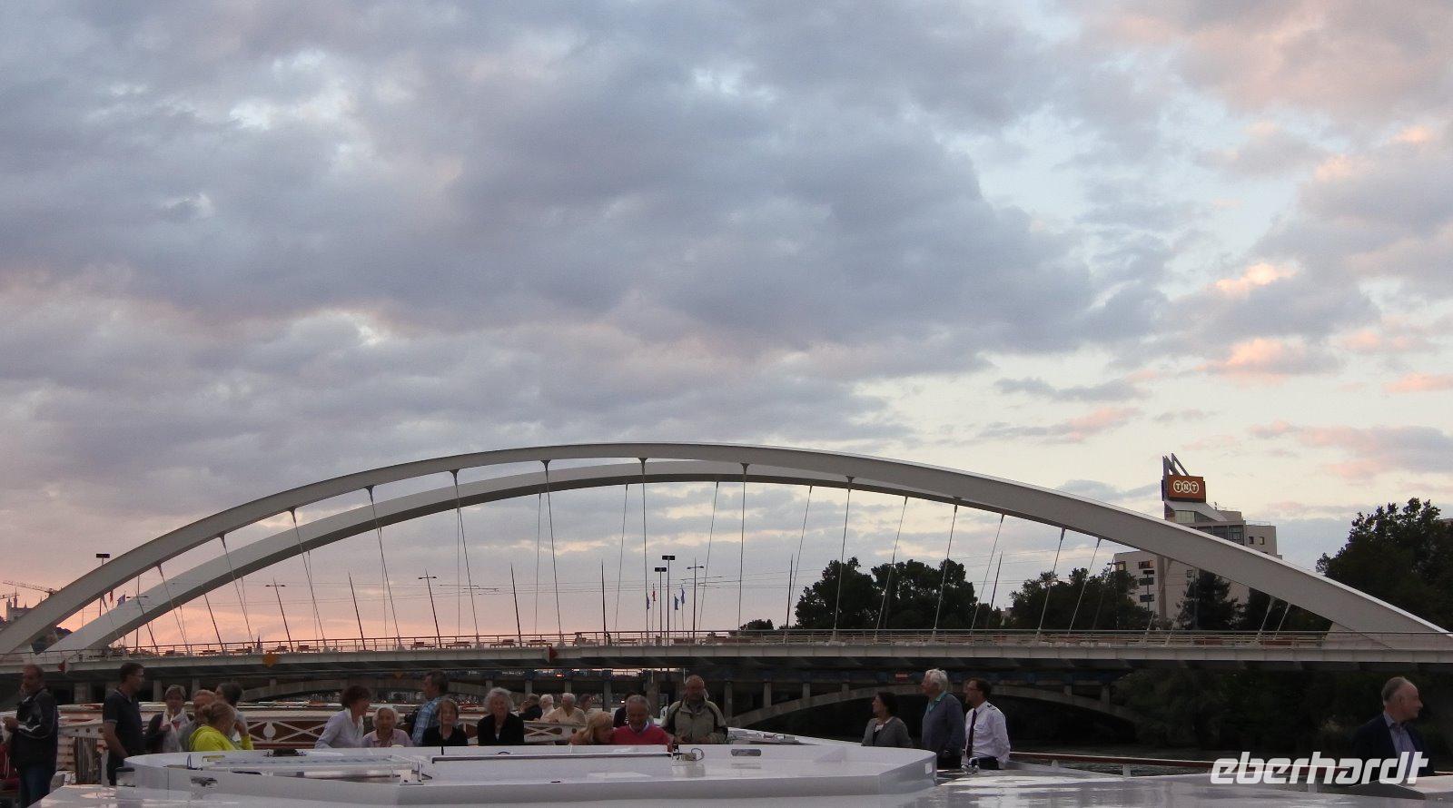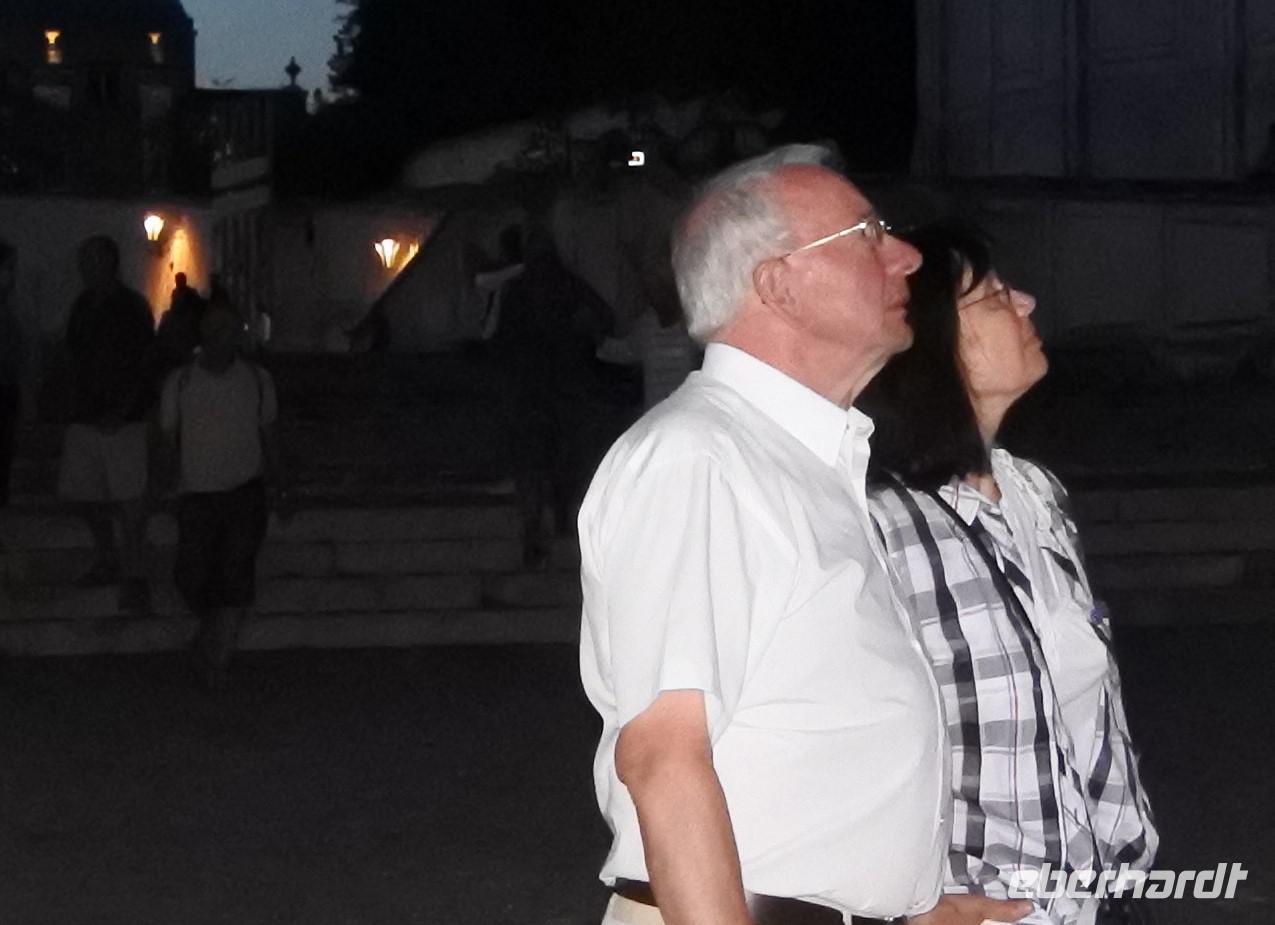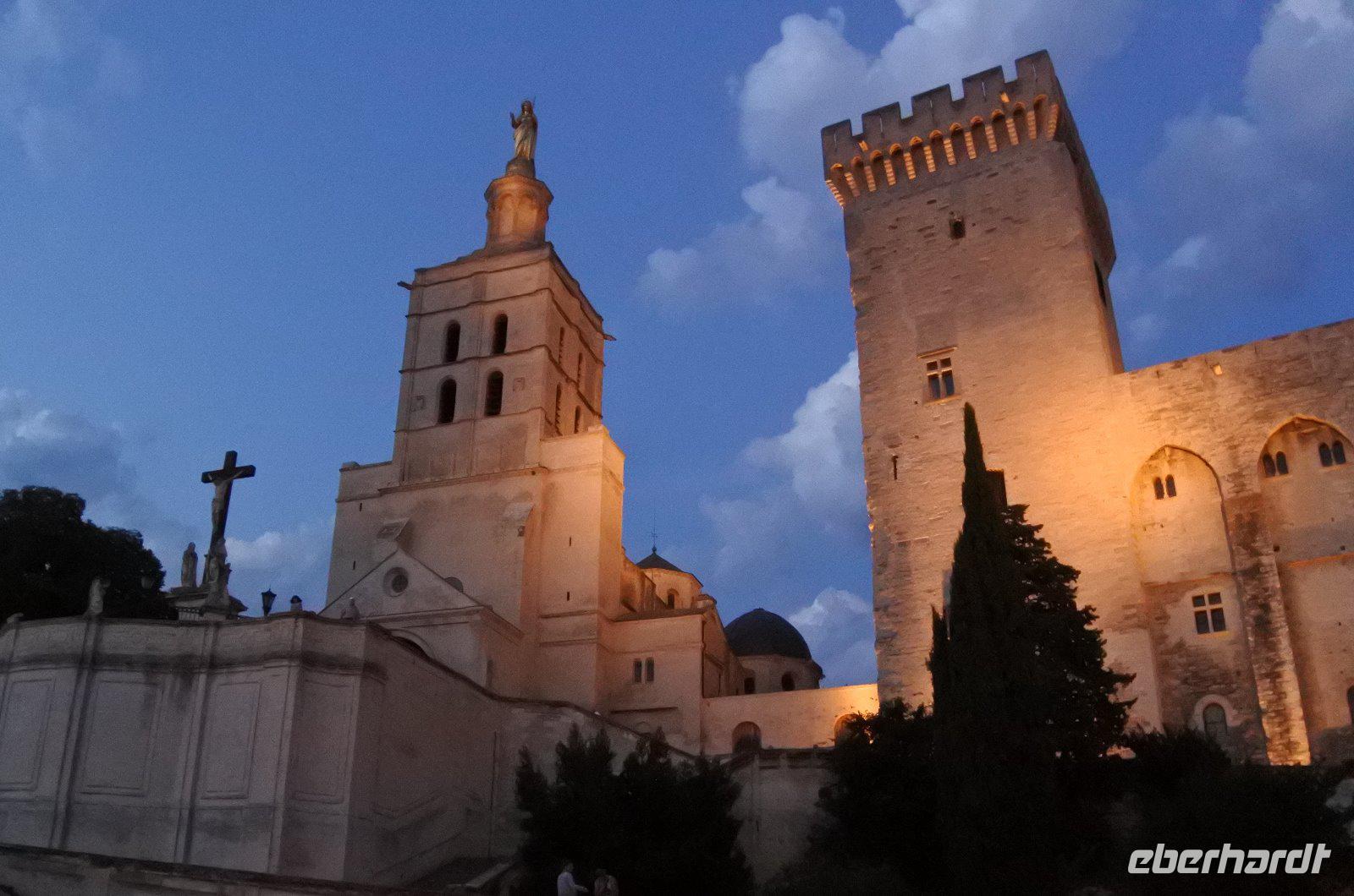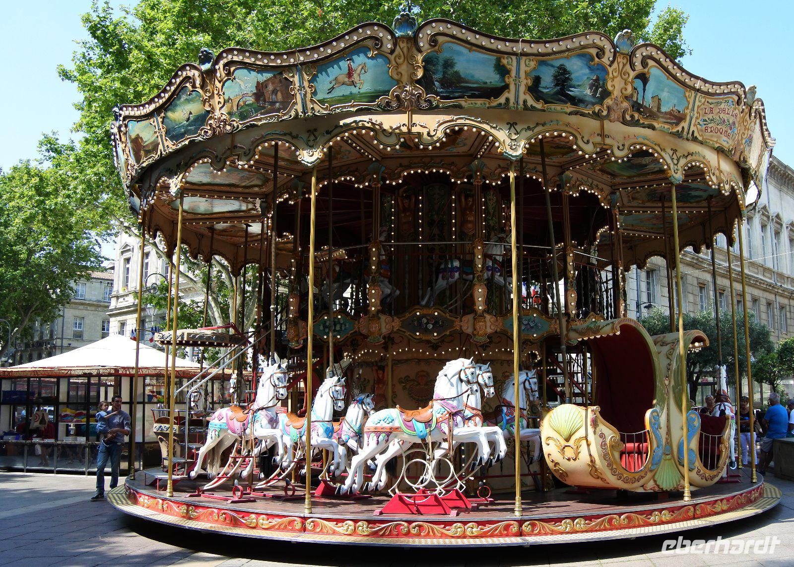 Gegen 05:00 Uhr kam das in Arles an, unserem südlichsten Reiseziel auf der Rohne. Da einige von uns den Ausflug um 09:00 Uhr in die Camargue gebucht haben, machte Gerd mit diesen Gästen nach dem Frühstück von 07:45 - 08:45 Uhr einen Rundgang durch die unweit gelegene Altstadt, damit nicht nur die Camargue erleben, sondern auch die bedeutenden römischen und romanischen Kulturdenkmäler von Arles besichtigen konnten. Von 09:00 - 11:30 Uhr machte Gerd mit den übrigen Gästen einen ausgiebigeren Rundgang durch Arles, und zeigte uns neben der römischen Arena, dem römischen Theater, der kleinen romanischen Kirche Noter Dame, den Place de Republic mit seiner wunderschönen Kathedrale, dem ehemaligen Benediktiner Kloster und dem historischen Rathaus. Auf dem Place de Forum mit dem „Van Gogh Café", hatten wir noch Zeit zur freien Verfügung und gingen durch die engen romantischen Gassen an den Constantin Therme vorbei zur Rohne, wo wir schon von weitem die A-Rosa Luna liegen sahen. Nach dem Mittagessen um 12:30 Uhr unternahmen einige von uns einen Ausflug in einer der schönsten Städte Frankreichs, Aix-en-Provence und stiegen wieder in Avignon auf das Schiff. Das Schiff legte um 14:00 Uhr die Rohne hoch Richtung Avignon ab. Die meisten von uns hatten wieder einen schönen sonnigen Nachmittag auf der A-Rosa Luna und jeder entspannte auf seine Weise. Um 17:30 Uhr leget das Schiffes in Avignon, nahe der Altstadt an. Nach einem Grillbuffet auf dem Sonnendeck machte unser Reiseleiter Gerd von 21:00 - 22:30 Uhr mit uns einen Rundgang durch die romantisch beleuchte Papststadt. Dazu hatte er zwei lustige Überraschungen für uns vorbereitet. Kurz nachdem wir das Schiff verlassen haben, lud er uns im Namen von Eberhardt TRAVEL auf eine erlebnisreiche Fahrt mit dem hohen Riesenrat ein, das direkt neben dem Rohne Ufer stand. Vom Riesenrad aus hatten wir einen einmaligen Blick auf das abendliche Avignon. Dann ging es durch die eindrucksvolle Stadtmauer zur Hauptstraße, wo wir das Rathaus aus dem 17 Jh. und das prachtvolle Theater bewunderten konnten. Beim Rathaus gab es die zweite Überraschung; eine Fahrt auf einem wunderschönen nostalgischen Karussell. Wir fühlten uns dabei in unsere Kindheit zurückversetzt. Nach der Karussellfahrt wartete ein High Light auf uns, der gewaltige Papstpalast auf dem Place du Palais, Europas größtes gotisches Bauwerk auf dem. Den Palst konnten wir in einer herrlichen Beleuchtung von einer Anhöhe am der Kathedrale de Avignon bewundern. Durch engen Gassen gingen wir anschließen zur berühmten Avignon Brück, die wir ebenfalls in einer schönen Beleuchtung bestaunen konnten. Am Ufer der Rohne entlang kehrten wir zum Schiff zurück