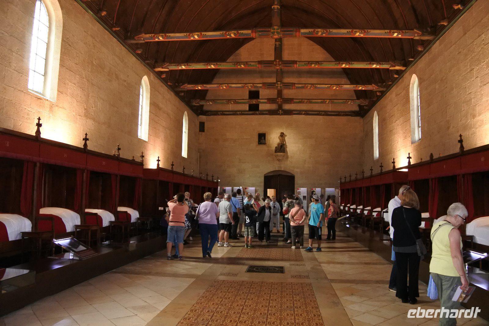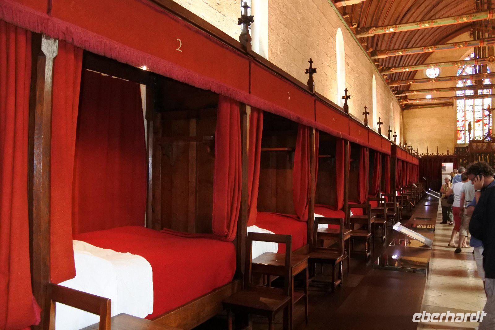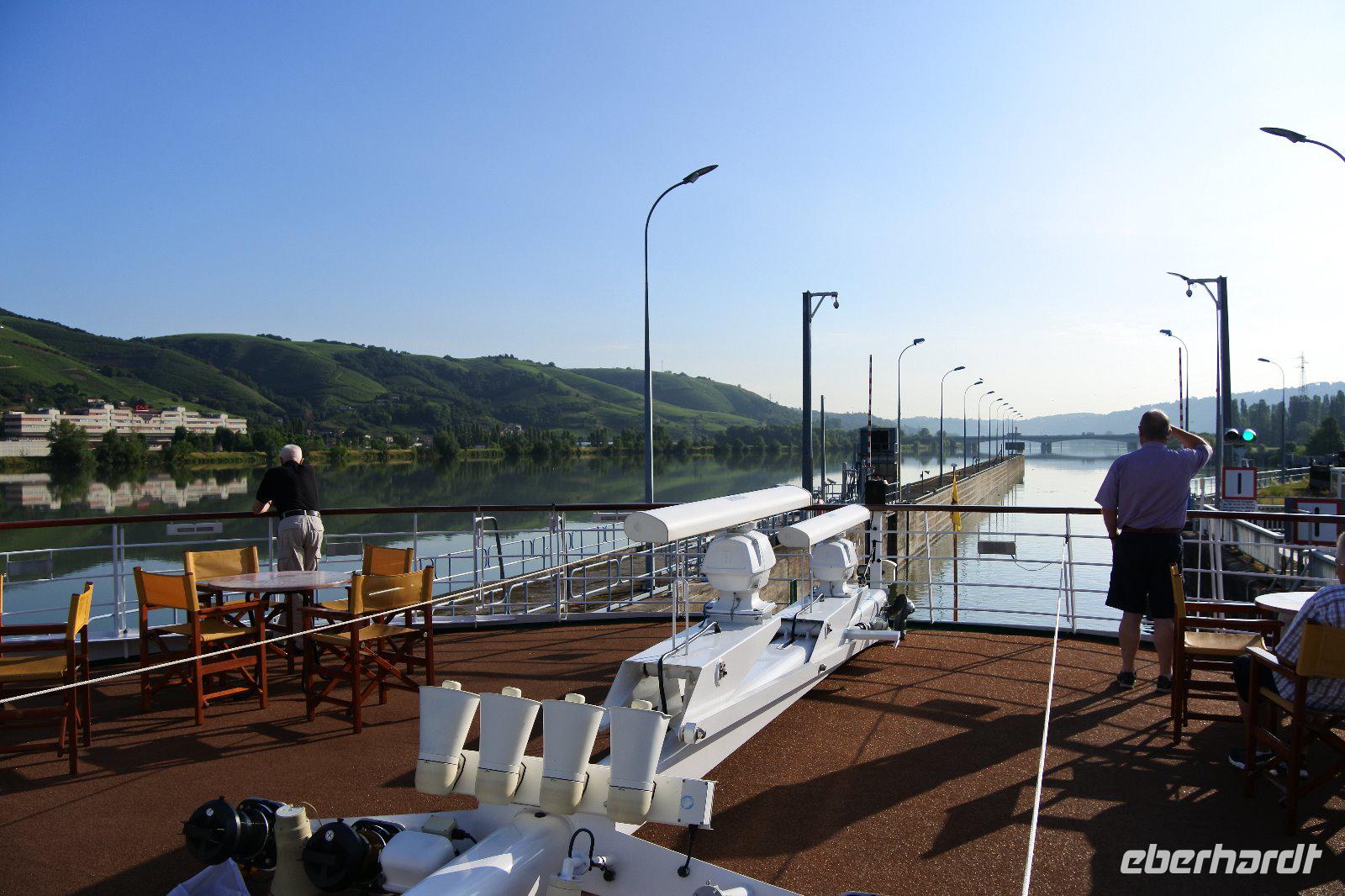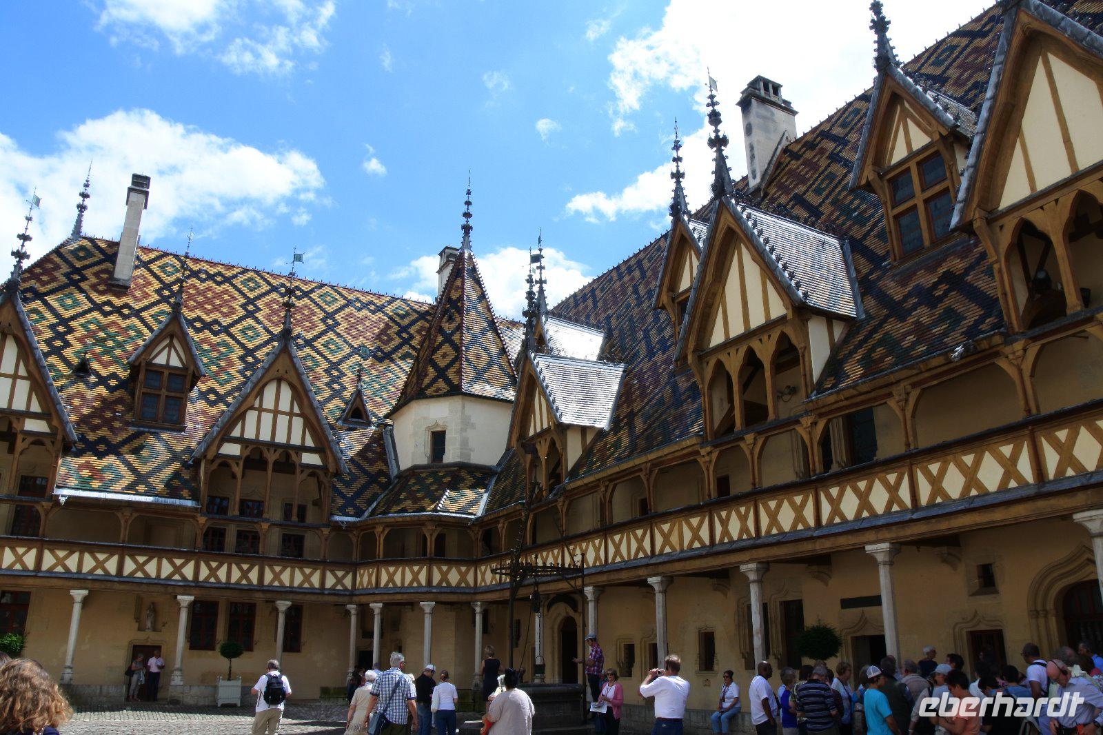 Nach einer geruhsamen Nacht genossen wir unser erstes Frühstücksbuffet an Bord, dass keine Wünsche offenließen. Da der Wasserstand auf der Saone an diesem Tag überdurchschnittlich hoch war, legte die A-Rosa Luna bereits um ca. 04:00 Uhr in Macon an. Die geplante Fahrt nach Tournus und Chalon sur Saone war wegen dem Wasserstand nicht möglich, da die A-Rosa Luna nicht unter den Brücken durchfahren konnten. Wir nutzten die Zeit um mit unserem Reiseleiter einen erlebnisvollen Stadtbummel durch das kleine charmante Weinstadt an diesen Sonntagvormittag zu unternehmen. Dort besichtigten wir die sehenswerte Kirche St. Pierre, eine Ausstellung von außergewöhnlichen Hut-Kreationen und genossen die Sonne in den Terrassen-Cafes dieses romantischen Weinortes. Von 12:30 bis 14:00 Uhr hatten wir jeden Tag zwischen den Ausflügen ein schmackhaftes Buffet als Mittagessen an Bord der A-Rosa Luna. Um 13:30 Uhr war Abfahrt mit dem Bus zu unserem ersten Ausflug, der berühmten Weinstraße Cote d'Or nach Beaune. Wir besuchten zuerst das bedeutende Hotel Dieu, ein ehemaliges mittelalterliches Krankenhaus aus dem 15. Jh., und in dieser sehr gut erhaltenen Form wohl einzigartig in der Welt ist. Durch Audioguide die wir für alle Ausflüge zur Verfügung hatten, konnten wir den fundierten Erläuterungen der örtlichen Stadtführerin zur Geschichte des Kulturdenkmals sehr gut folgen. Nach der Besichtigung des Hotel Dieu machte unser Reiseleiter Gerd noch einen Stadtrundgang durch Beaun mit uns. Dabei besichtigten wir die Stiftskirche Copllegial Notre-Dame wo Gerd im Kreuzgang das Ave-Maria von Schubert aus seinem Lautsprechersystem für uns vorspielte. Durch das Weinmuseum die engen Gassen entlang, kehrten wir über die malerische Fußgängerzone zum Bus zurück. Wegen des immer höheren werdenden Wasserstands musste die A-Rosa Luna die Saone früher als geplant verlassen und fuhr bereits gegen 14:00 Uhr nach Lyon auf die Rohne zurück. Wir fuhren deshalb nach dem Ausflug nach Beaune nicht nach Macon zurück, sondern nach Lyon, wo unser Schiff bereits lag und bis zum Abend des nächsten Tages auch dort liegen blieb. Nach dem Abendessen um 19:30 Uhr war um 21:00 Uhr Kapitänsempfang mit Vorstellung der Mannschaft in der Lounge. Danach ließen wir den Tag bei einem Drink und netten Gesprächen in der Lounge oder auf dem Sonnendeck nochmals Revue passieren.