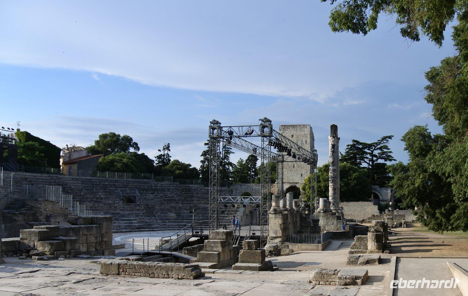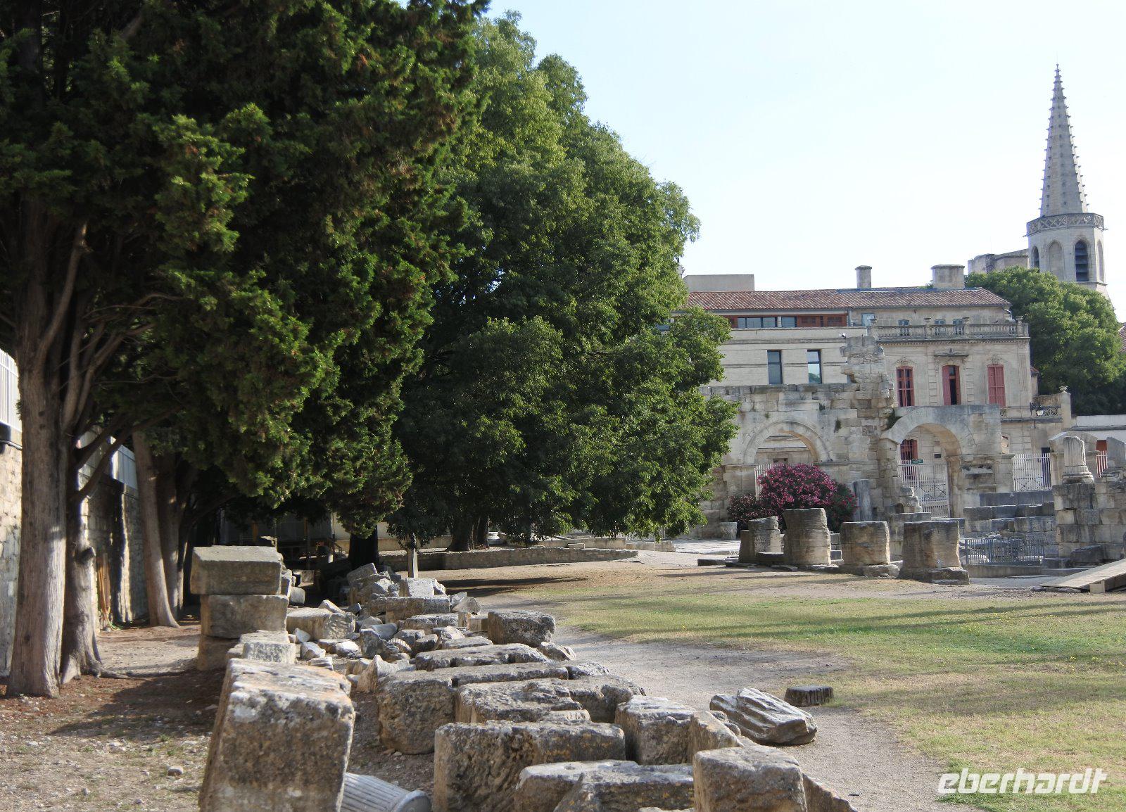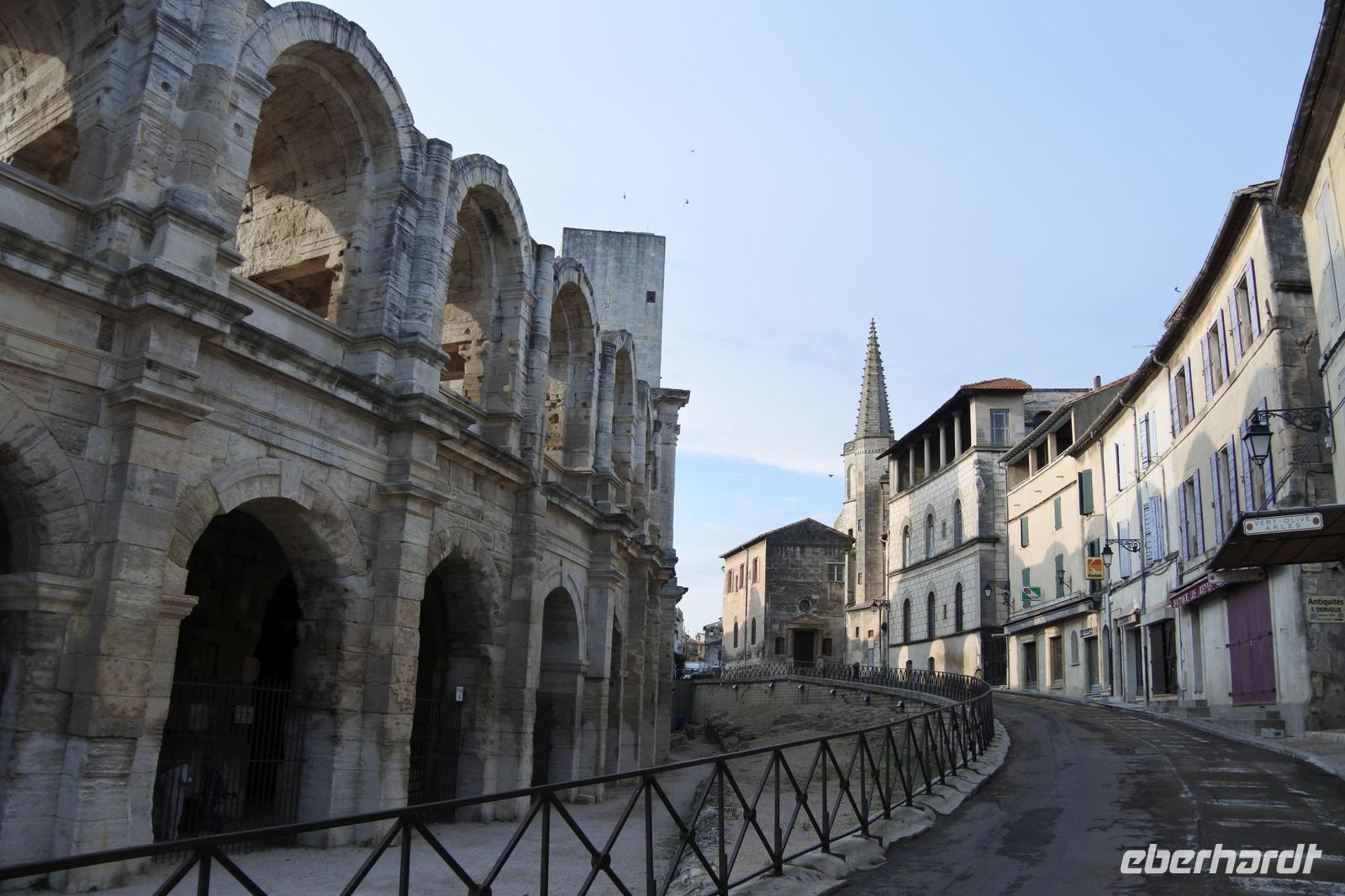 Das Schiff machte bereits gegen 06:00 Uhr in Vivier fest. Durch die frühere Ankunft machte deshalb unser Reiseleiter Gerd um 09:30 Uhr einen ausgiebigen Rundgang durch die einzigartige mittelalterliche Altstadt von Viviers. Durch die engen Gassen gingen wir am Maison de Cgevaliers aus dem 16. Jh. vorbei, den Berg hoch in die unversehrte mittelalterliche Oberstadt wo die Kathedrale St. Vincent aus dem 12. Jh. mit seinen herrlichen großen Wandteppichen und einer mystischen Atmosphäre lag. In der Kirche spielet uns Gerd das Orgelstück Toccata und Fuge von J.S. Bach über sein Lautspreche System. Danach gingen wir auf eine Aussichtsterrasse mit einem unvergesslichen Panorama-Blick auf die Altstadt und die schöne Landschaft mit der Rohne. Auf dem Rückweg lud uns Gerd im Namen von Eberhardt TRAVEL zur einer Salami Verkostung mit frisch gebackenem Baguette bei einem kleinen, typischen Metzger in der Altstadt ein. Nach einer Zeit zur freien Verfügung in Vivier hatten wir um 12:30 Uhr unser Mittagessen auf dem Schiff. Um 14:00 Uhr legte die A-Rosa Luna Richtung unsers nächsten Reiseziels, des bedeutenden geschichtsträchtigen Arles ab. Auf dem Weg dorthin genossen wir den ganzen Nachmittag auf dem Schiff, um auf dem Sonnendeck oder in den gemütlichen Schiffräumen zu entspannen oder für Nachmittagsschläfchen in der Kabine. Sichtlich ausgeruht hatten wir von 19:30 - 21:00 Uhr das Abendessen im gepflegtem Schiffsrestaurant, wo uns nicht nur die Schiffköche, sondern auch die aufmerksamen und freundlichen Kellner täglich verwöhnten.