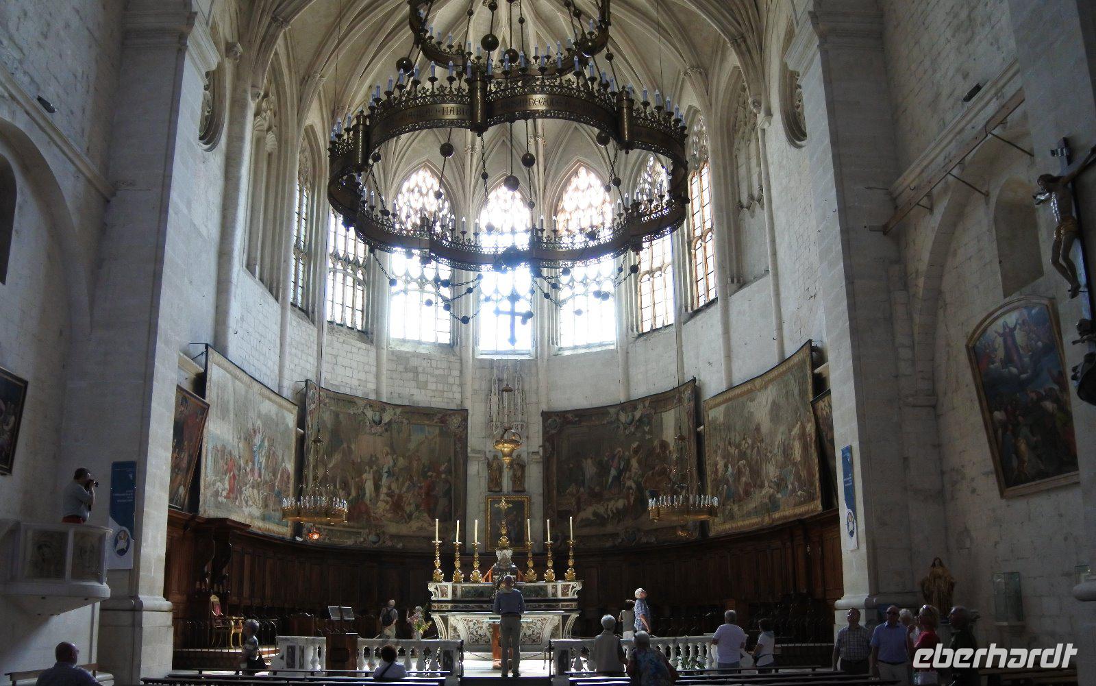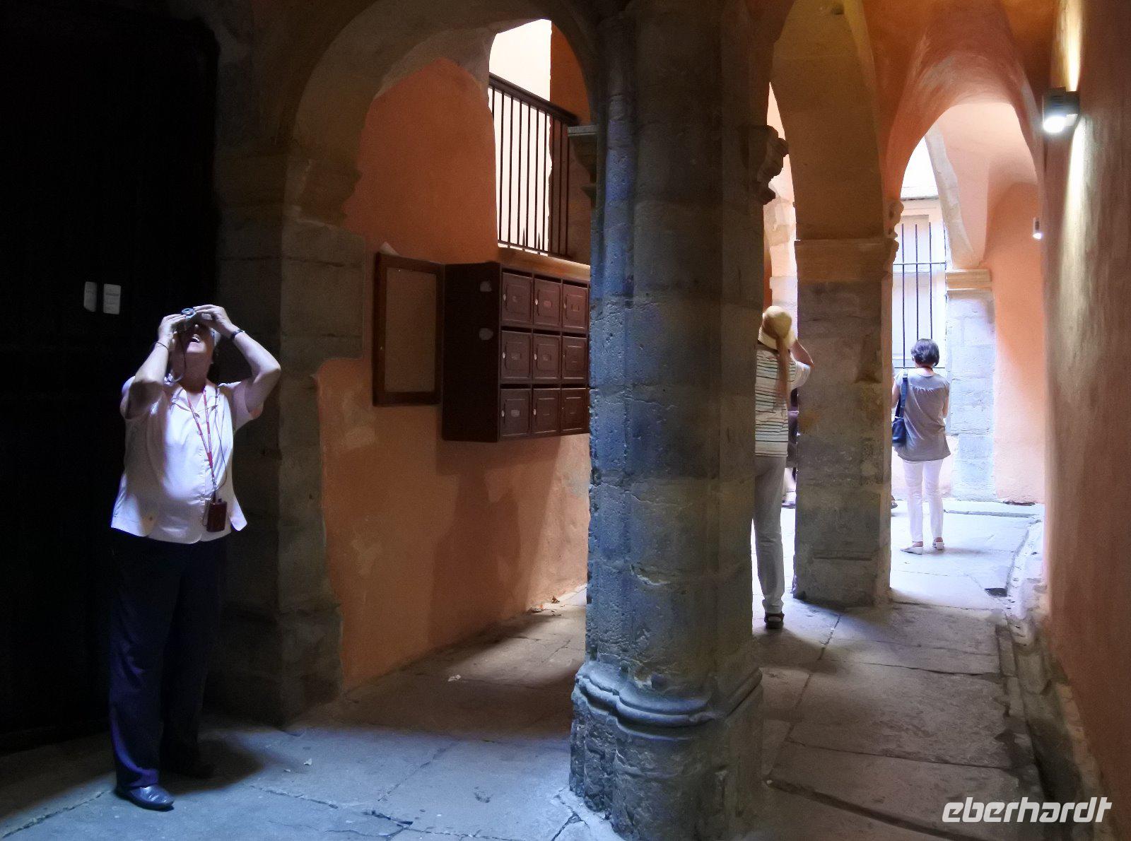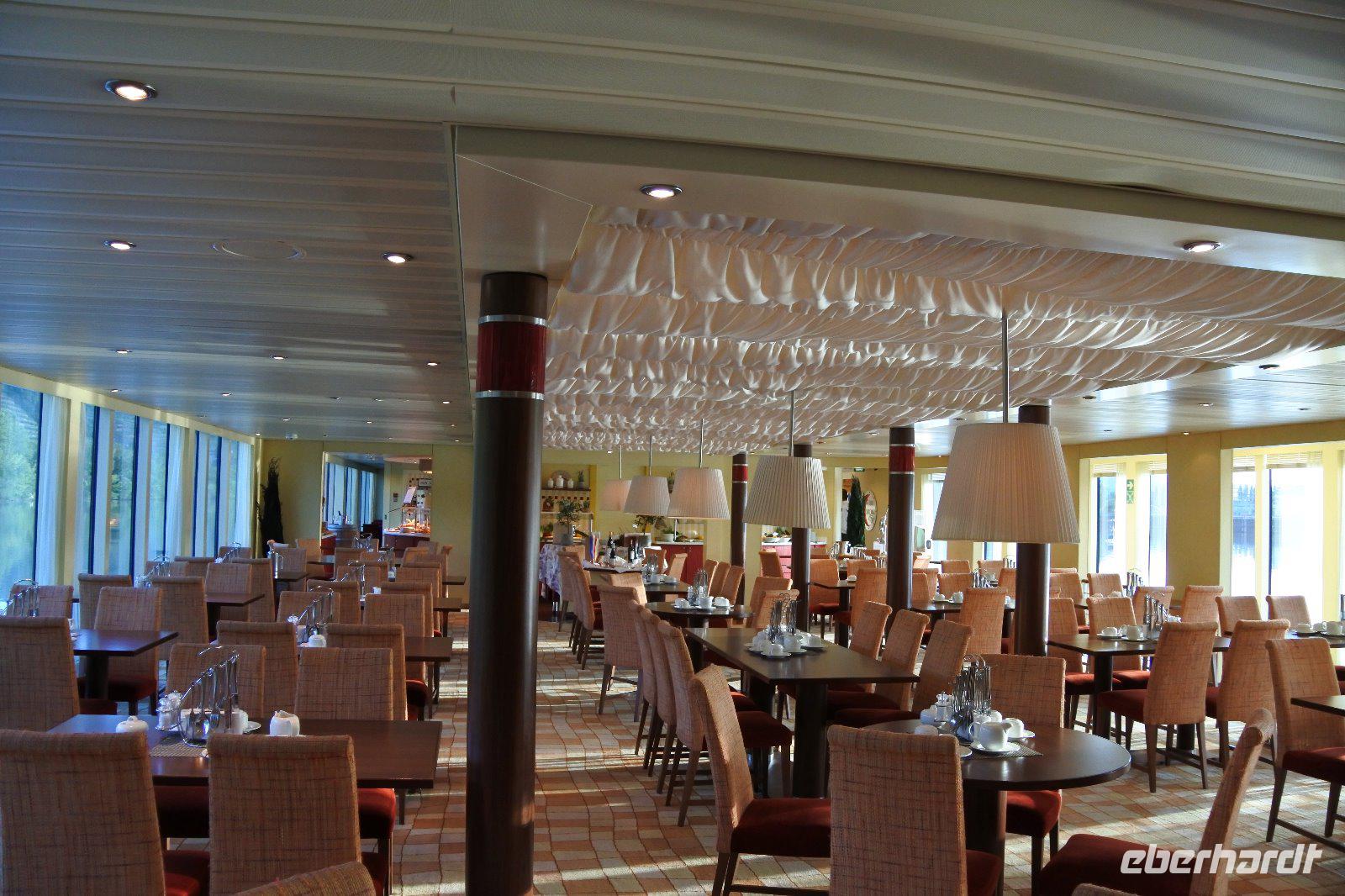Das Schiff machte bereits gegen 06:00 Uhr in Vivier fest. Durch die frühere Ankunft machte deshalb unser Reiseleiter Gerd um 09:30 Uhr einen ausgiebigen Rundgang durch die einzigartige mittelalterliche Altstadt von Viviers. Durch die engen Gassen gingen wir am Maison de Cgevaliers aus dem 16. Jh. vorbei, den Berg hoch in die unversehrte mittelalterliche Oberstadt wo die Kathedrale St. Vincent aus dem 12. Jh. mit seinen herrlichen großen Wandteppichen und einer mystischen Atmosphäre lag. In der Kirche spielet uns Gerd das Orgelstück Toccata und Fuge von J.S. Bach über sein Lautspreche System. Danach gingen wir auf eine Aussichtsterrasse mit einem unvergesslichen Panorama-Blick auf die Altstadt und die schöne Landschaft mit der Rohne. Auf dem Rückweg lud uns Gerd im Namen von Eberhardt TRAVEL zur einer Salami Verkostung mit frisch gebackenem Baguette bei einem kleinen, typischen Metzger in der Altstadt ein. Nach einer Zeit zur freien Verfügung in Vivier hatten wir um 12:30 Uhr unser Mittagessen auf dem Schiff. Um 14:00 Uhr legte die A-Rosa Luna Richtung unsers nächsten Reiseziels, des bedeutenden geschichtsträchtigen Arles ab. Auf dem Weg dorthin genossen wir den ganzen Nachmittag auf dem Schiff, um auf dem Sonnendeck oder in den gemütlichen Schiffräumen zu entspannen oder für Nachmittagsschläfchen in der Kabine. Sichtlich ausgeruht hatten wir von 19:30 - 21:00 Uhr das Abendessen im gepflegtem Schiffsrestaurant, wo uns nicht nur die Schiffköche, sondern auch die aufmerksamen und freundlichen Kellner täglich verwöhnten.