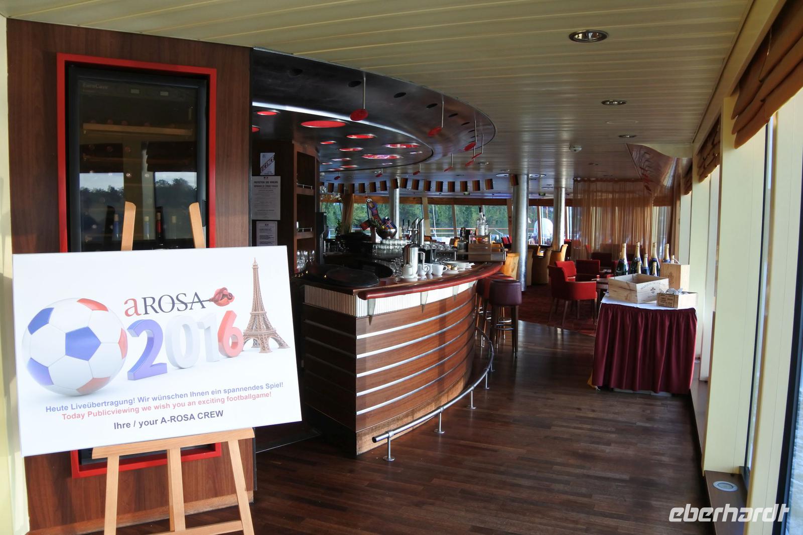 Nach einem guten und reichhaltigem Frühstücks Büfett im Novotel, luden wir unsere Koffer in den Bus und fuhren um 08:00 Uhr nach Lyon ab, wo unser Flussschiff, die A-Rosa Luna, schon auf uns wartete. Nach zwei Pause an einer Raststätte bei Belfort und einer Raststätte 120 Km vor Lyon, kamen wir gegen 14:15 Uhr in Lyon an und fuhren direkt zur Rohne, wo die A-Rosa Luna am Quai Claude Bernard lag. Durch eine schmale Einfahrt, die unser Busfahrer Holger gekonnt meisterte, konnten wir mit dem Bus direkt neben das Schiff fahren. Da wir bereits früher als geplant am Schiff waren, konnten wir als erste Gäste an Bord. Die Damen wurden vom Zahlmeister mit einer schönen roten Rosen an der Gangway begrüßt und wir erhielten an der Rezeption sofort unsere Kabinenkarten. Nachdem wir unsere Kabinen bezogen haben wurde uns unser Gepäck durch die Crew vom Bus direkt in unsere Kabine gebracht. Im Restaurant stand für uns ein Sandwich und Kuchenbuffet bereit, das wir nach einer ersten Erkundungsrunde durch das Schiff, in der Lounge genossen haben. Da wir bis zur Sicherheitsanweisung um 18:00 Uhr noch Zeit hatten, machte unser Reiseleiter von 16:00 - 17:30 Uhr mit uns einen Rundgang durch die Innenstadt von Lyon, die zwischen der Rhone und Saone liegt. Von der Rohen gingen wir zunächst auf die andere Seite der Halbinsel zu Saone, wo wir oben auf dem Berg die Kirche Notre Dame de Fourviere und den Lyoner Eiffelturm bewundern konnten. Danach gingen wir zum Place Bellecour, wo auf dem größten Platz Frankreichs wegen der Fußball-Europameisterschaft eine große Fan Meile aufgebt war. Durch strenge Sicherheitskontrollen konnten wir den Platz betreten und das große Denkmal von Ludwig XIV. neben einer riesigen Leinwand neben dem Denkmal bestaunen. Um 18:00 Uhr wurden wir in alle Sicherheitsvorkehrungen des Schiffes eingewiesen und die Cruise Managerin stellte uns die Ausflüge der Flusskreuzfahrt in der Lounge für die ersten beiden Tage vor. Ab 19:30 bis 21:00 hatten wir unser erstes Abendessen an Bord, mit einem abwechslungsreichen und guten Buffet. Es gab freier Tischwahl und die meisten Getränke waren in unserem Reisepreis inclusive. Nach dem Abendessen hieß es dann gegen 21:30 Uhr „Leinen los" und die A-Rosa Luna fuhr zur einer sehr erlebnisreichen Lichterfahrt auf der Rhone und der Saone durch Lyon bei einer wunderschönen Abendstimmung ab. Einige von uns bewunderten das nächtliche Lyon von der Lounge aus und andere waren ober auf dem Sonnendeck live dabei, wenn wir unter den Brücken hindurchfuhren und man dabei die Köpfe einziehen musste. Danach ging es die Saone hinauf Richtung unserem ersten Kreuzfahrtziel, der Chalon sur Saone. Den ersten Abend auf der A-Rosa Luna verbrachten die meisten in der Lounge bei einem gepflegten Getränk und stimmungsvoller Unterhaltungsmusik vom DJ. Die erste Nacht war in den komfortablen Kaninen und leichten Bewegungen des Schiffes auf dem Fluss angenehm.