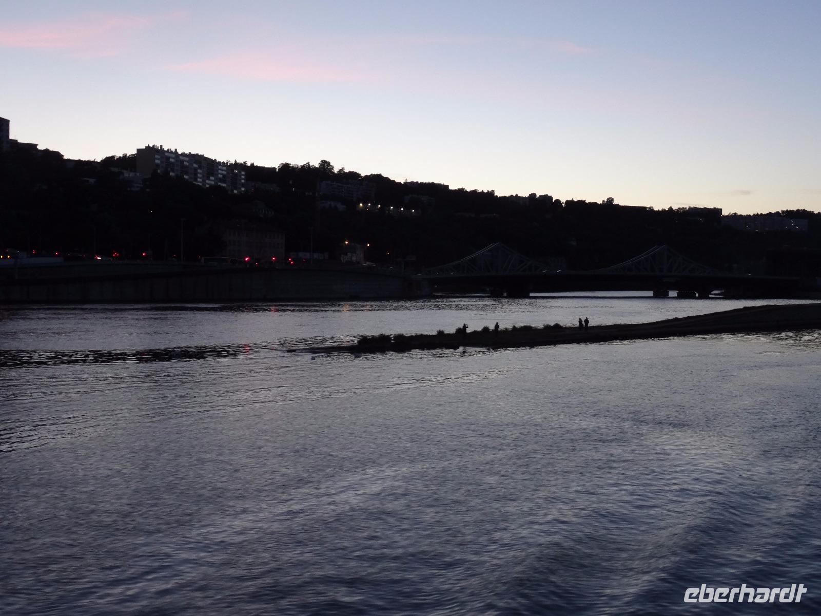 Endlich hieß es "Leinen los", zum ersten Mal erklang "Folowing my heart" und mit einem Gläschen Cocktail in der Hand tauchten wir in die abendliche Lichterwelt Lyons ein.