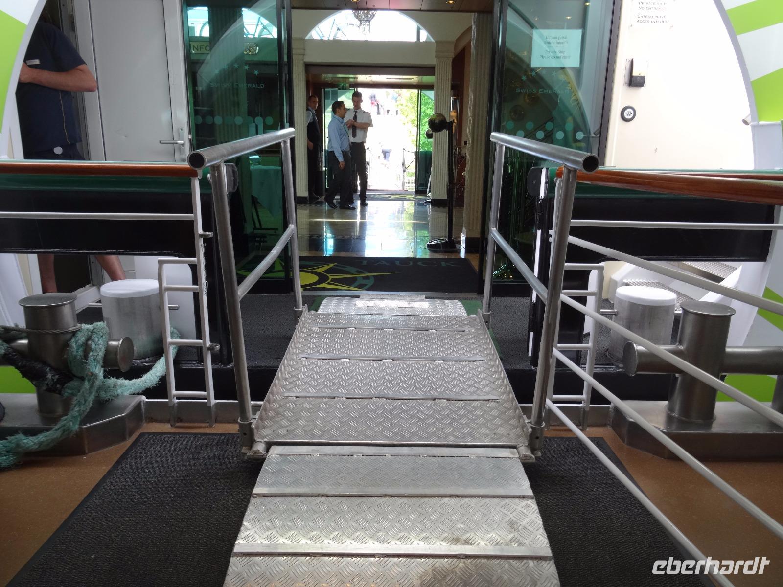 Einige Gäste nutzten drei Aufgüsse in der Sauna. Das ist besonders reizvoll, da man aus dem großem Fenster die vorbeiziehende Landschaft sehen kann. Auch der Spa - Bereich wurde besucht, um sich "verschönern" zu lassen. Nicht weniger begehrt war ein Platz auf dem Sonnendeck, wo man von den Strahlen der Sonne im Gesicht gekitzelt, einem Drink in der Hand entspannt eine der vielen Schleusengänge live verfolgen konnte.