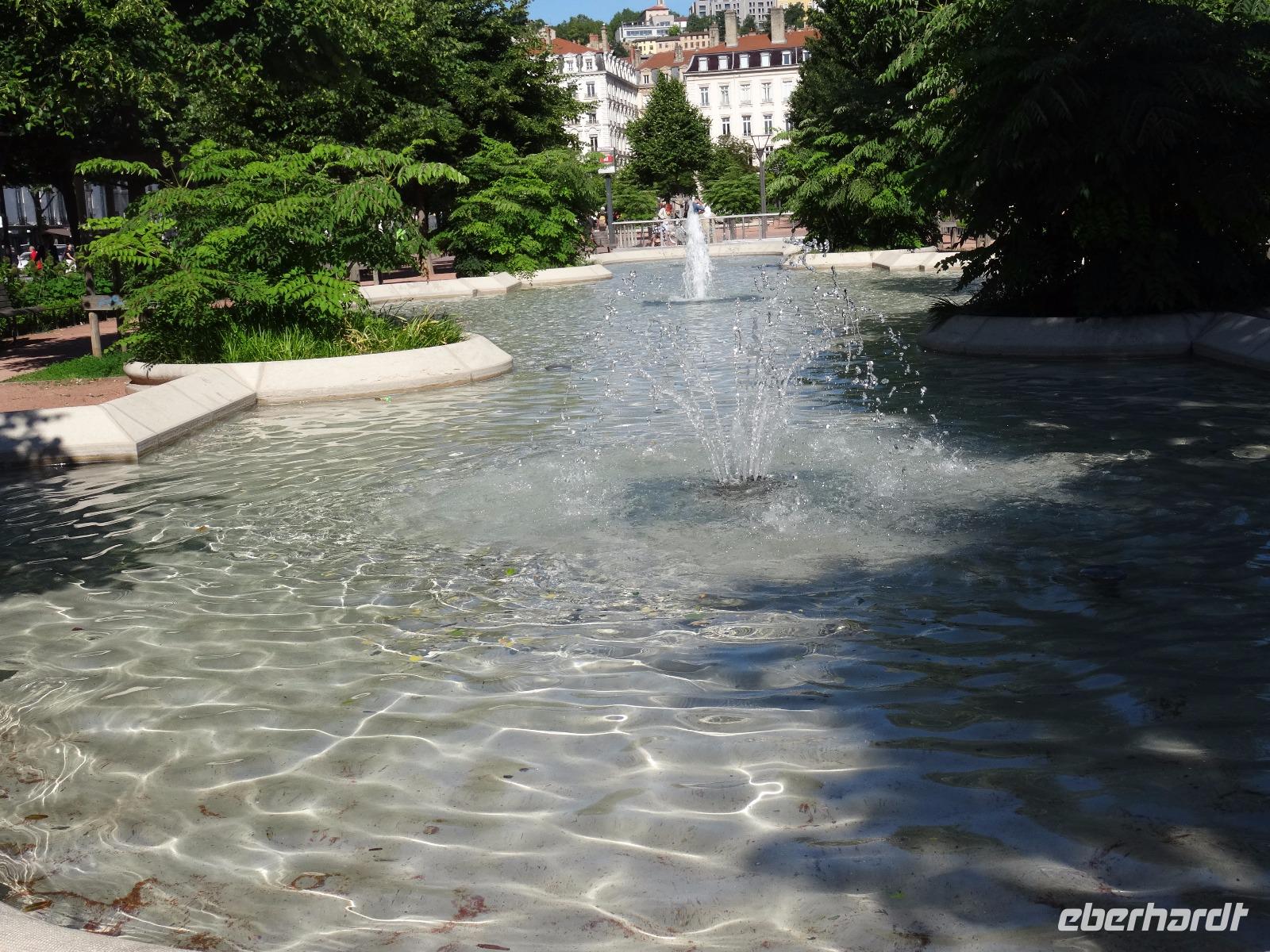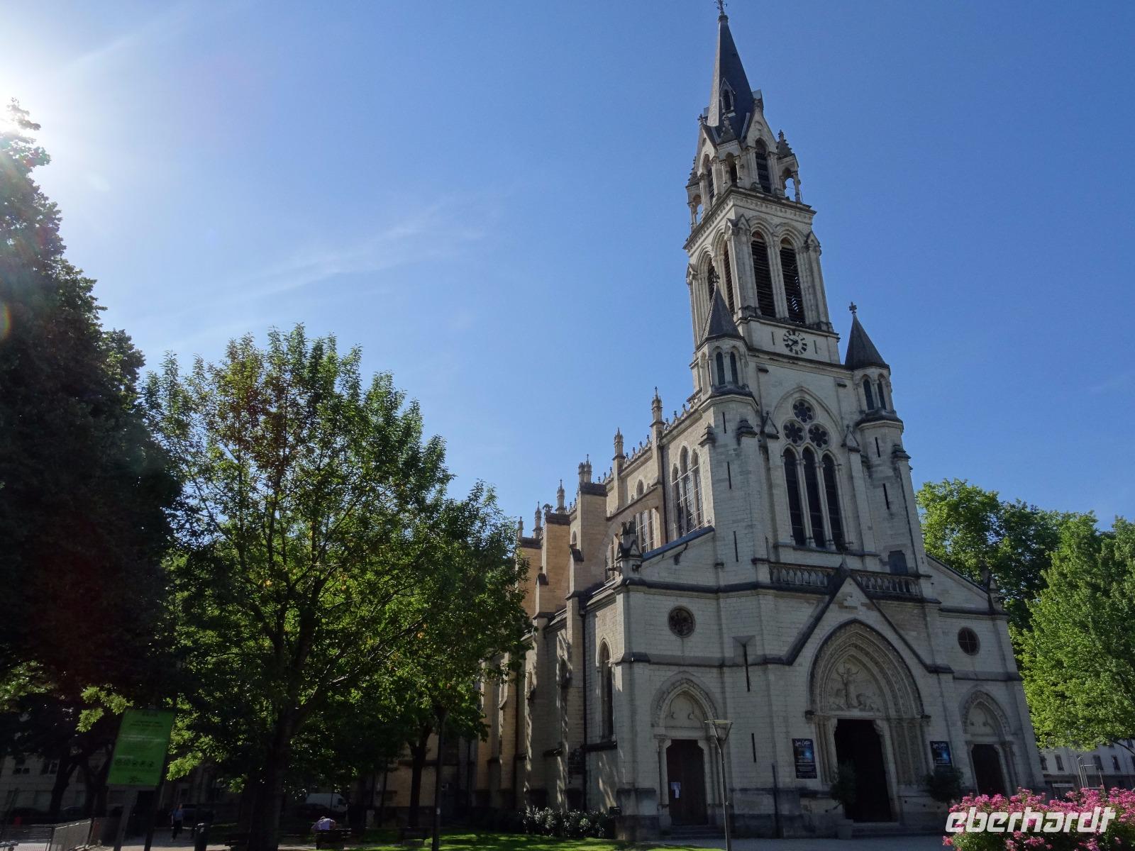 Von hier bot sich ein faszinierender Blick auf die Stadt an den zwei Flüsse Rhone und Saone. Lyon von oben ist eine grüne Stadt. die Rhone ist durch eine Baumallee markiert. Den Fluss selbst sieht man nicht.