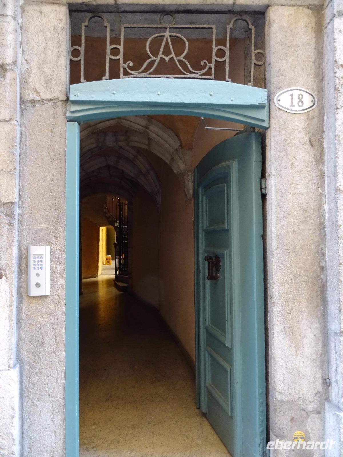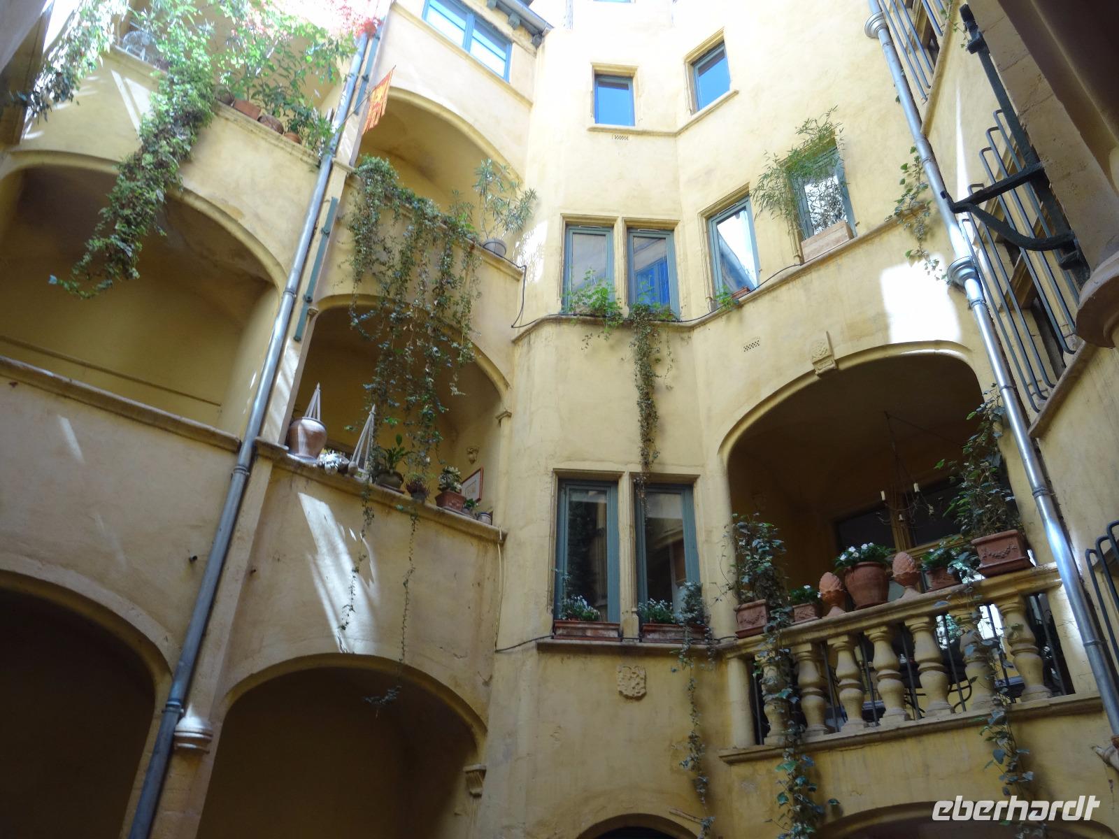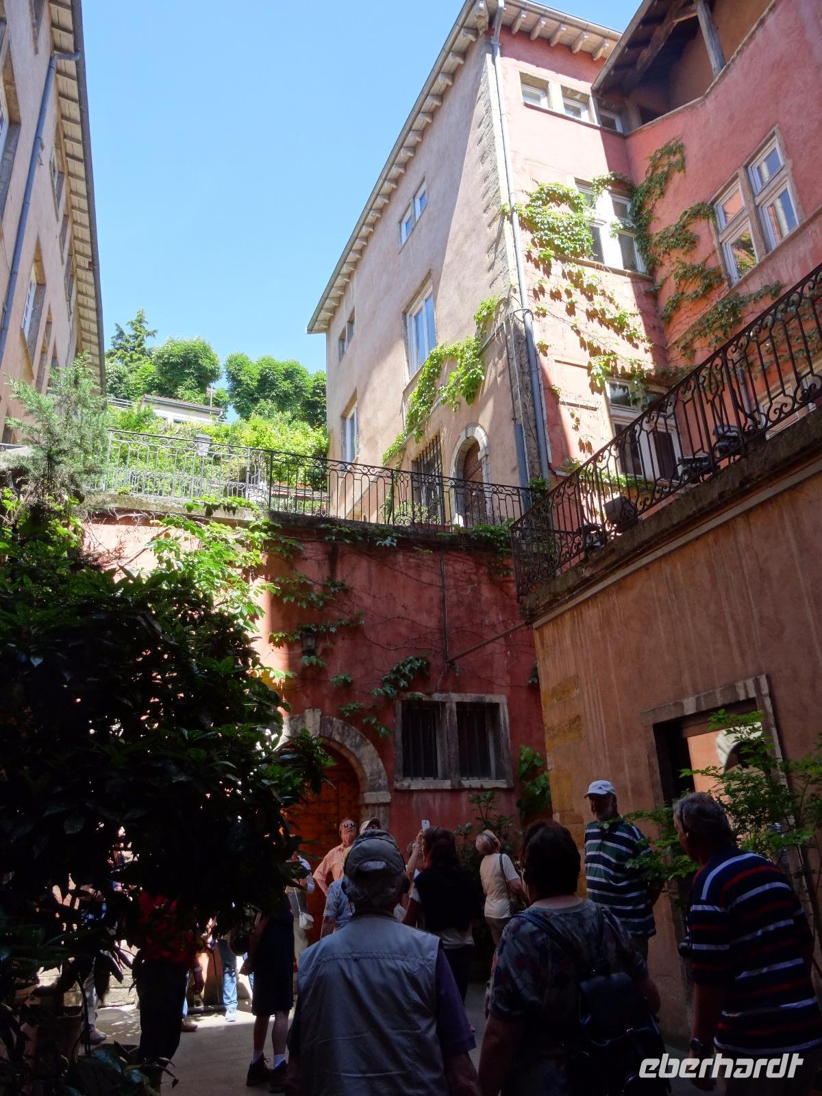 Im weiteren Verlauf gelangten wir zur Altstadt "Vieux-Lyon". Ein Gang durch die "Traboules" ist dabei ein "Muss". Diese Mischung des heutigen Alltages und die jahrhundertalte Architektur machen den Reiz dieser "Hausflure" aus. Sie verbinden gegenüberliegende Straßenzüge miteinander analog den Passagen in Deutschland. Man bewegt sich in einer Welt, die alt und zugleich modern ist.
