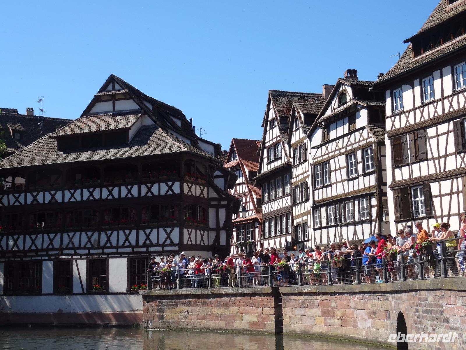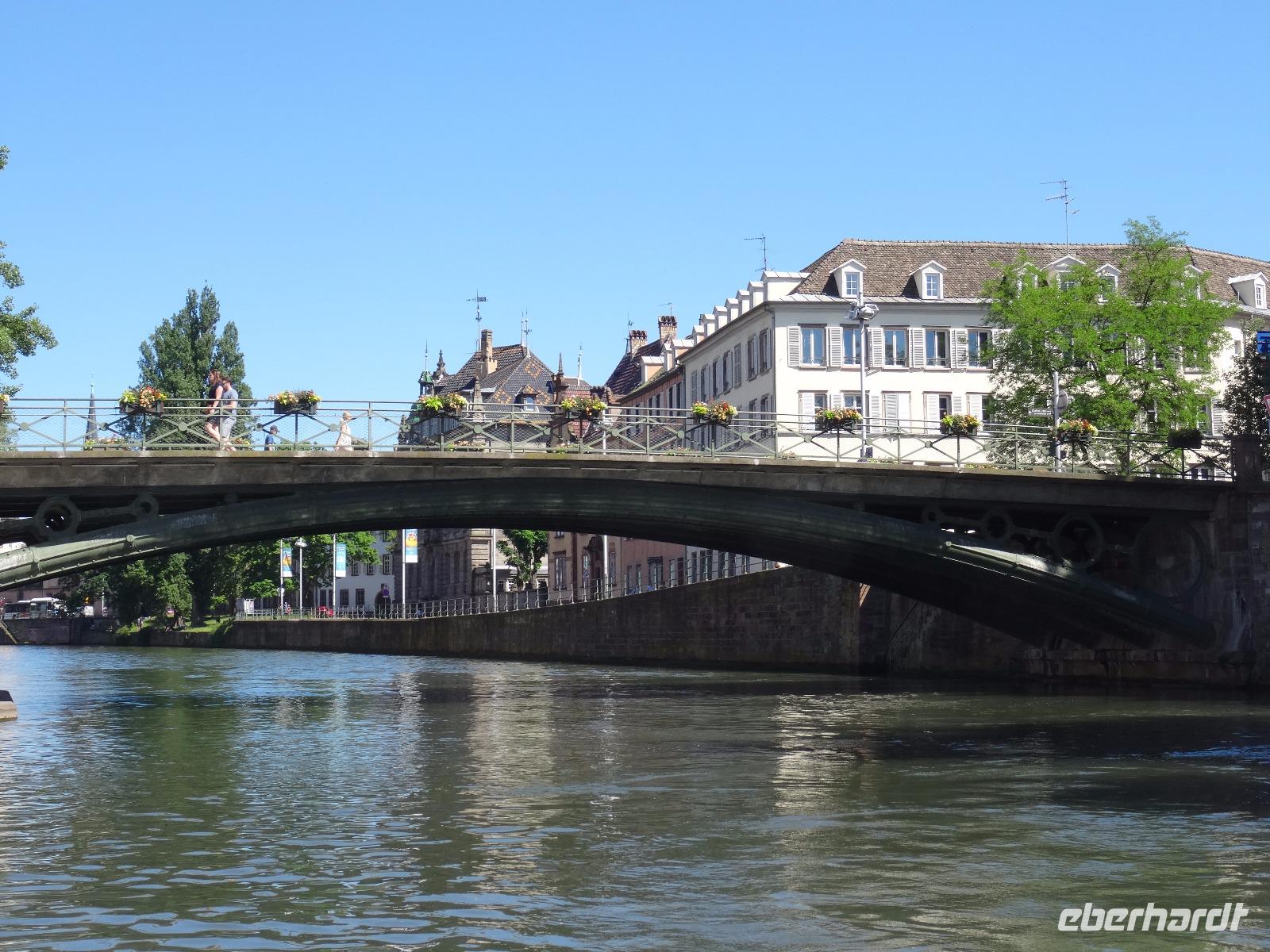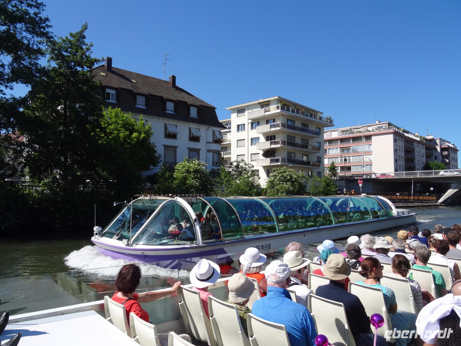 Angekommen wartete bereits ein "kleines Boot" auf uns und wir hofften auf ein etwas frischen Wind während der 75 minütigen Fahrt entlang der Ill mit ihren Armen. Wir hörten gespannt die wechselvolle Geschichte der Stadt über die Kopfhörer. Beeindruckend "Klein Frankreich" und die "EU Glaspaläste" der neuen Zeit.