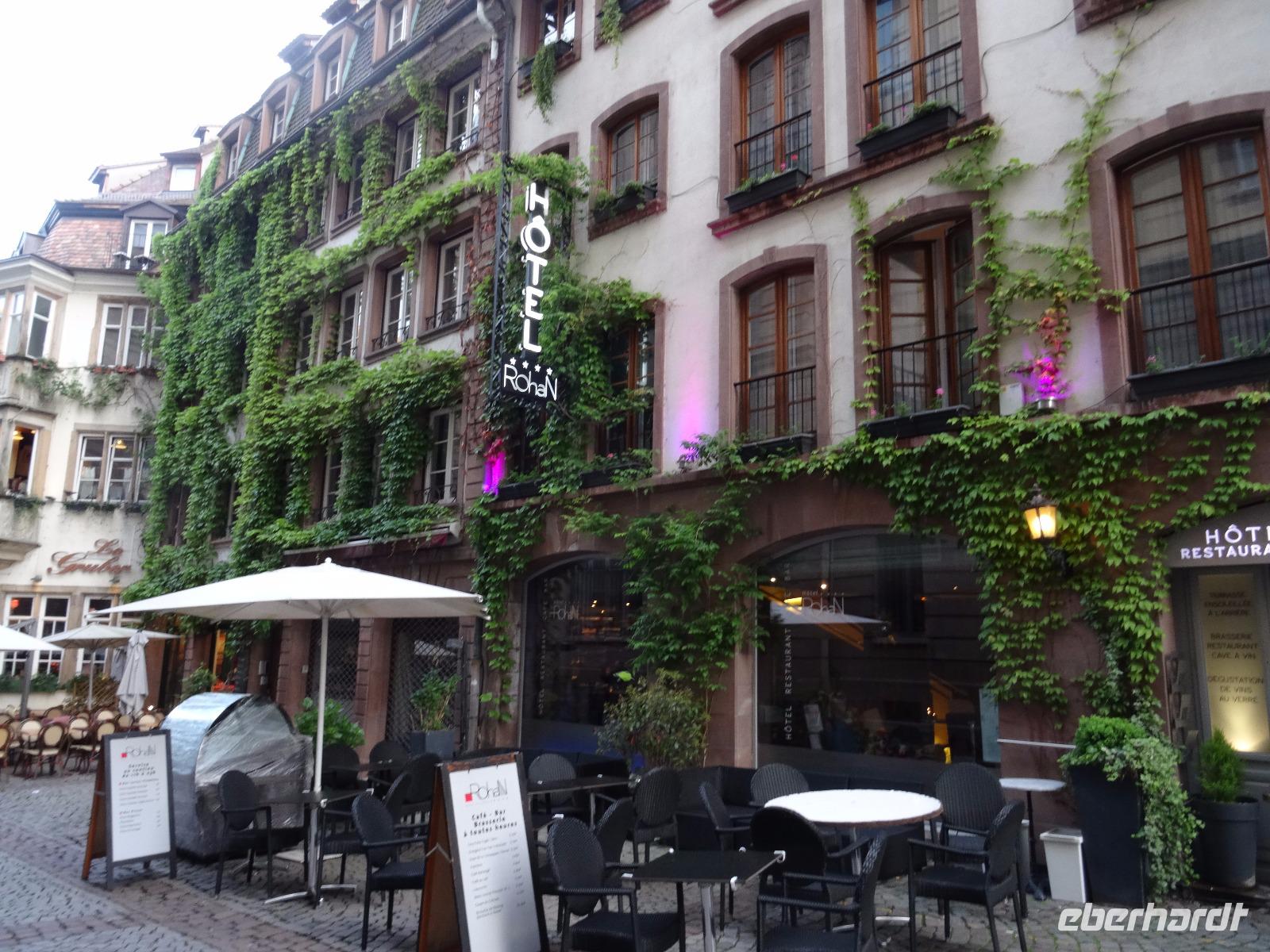 Unser Hotel lag nicht weit entfernt vom weltberühmten Münster. Mit einem freundlichen Bonjour wurden wir im Hotel Novotel begrüßt. Nachdem wir uns auf den Zimmern frisch gemacht hatten, erwartete uns ein leckeres 3-Gänge-Menü im moderen Restaurant des Hotels. Anschließend spazierten wir über den zentralen Kleberplatz, vorbei am bürgerlichen Haus Kammerzell -heute ein Restaurant- mit seiner verzückenden Schnitzkunst hin zum Münster. Wir bestaunten dieses gigantische und filigrane Wunderwerk. Auf dem Münsterplatz erblickten wir auch "Mini-Versailles" = Palais Rohan und ließen uns von reizenden Fachwerkhäusern verzaubern.