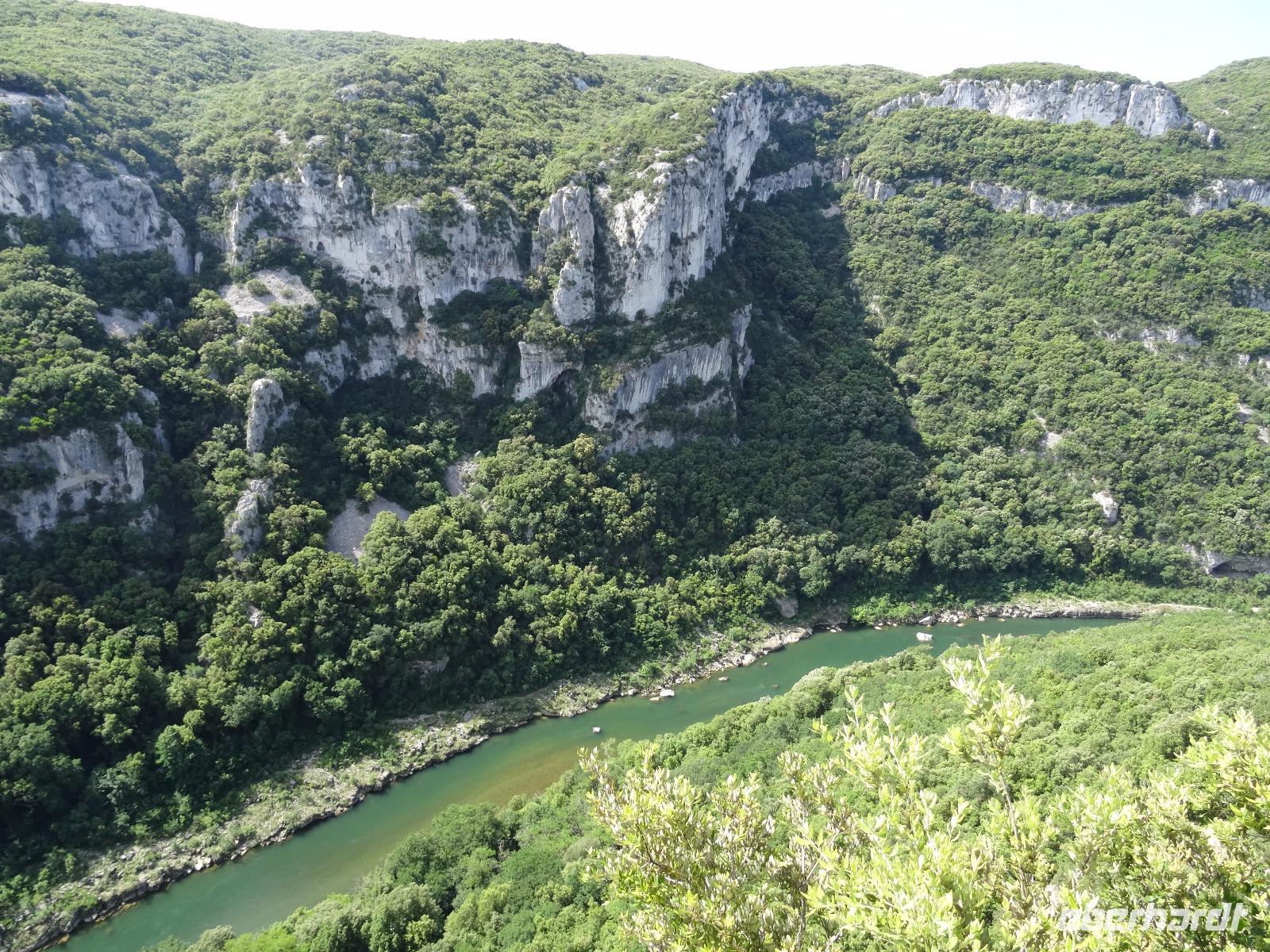 Der Fluss Ardeche, genannt nach der hier vorherrschenden Landschaft -kalksteinhaltige Schluchten-, ist ein rechter Nebenfluss der Rhone.