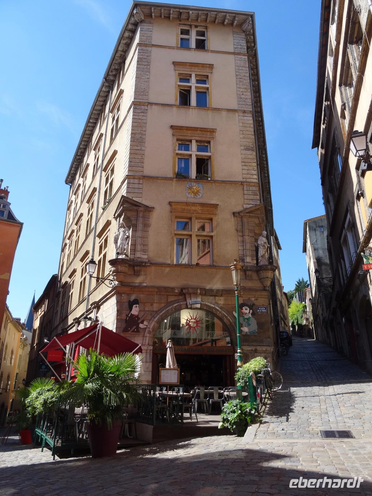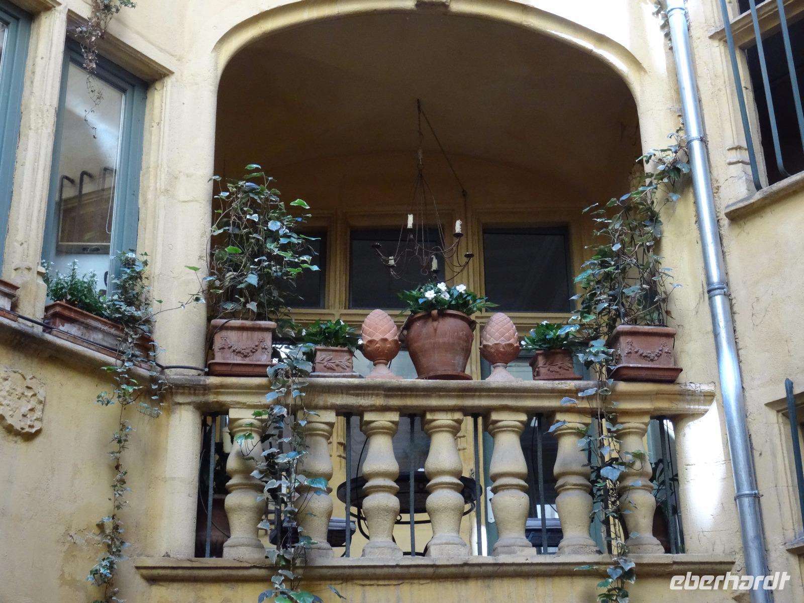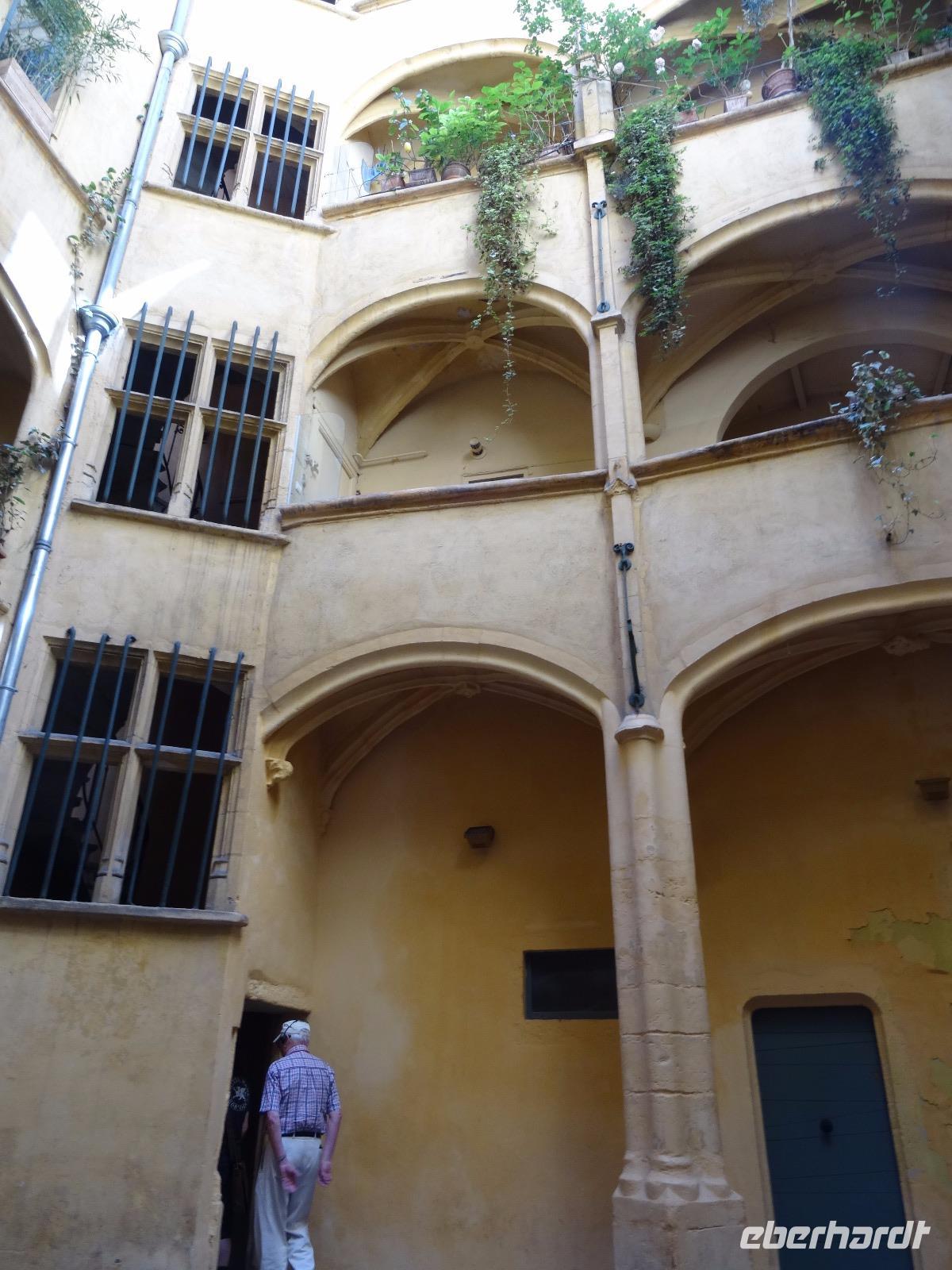Im weiteren Verlauf gelangten wir zur Altstadt " Vieux-Lyon". Ein Gang durch die "Traboules" ist dabei ein "Muss". Diese Mischung des heutigen Alltages und die jahrhundertalte Architektur machen den Reiz dieser "Hausflure" aus. Sie verbinden gegenüberliegende Straßenzüge miteinander analog den Passagen in Deutschland. Man bewegt sich in einer Welt, die alt und modern zugleich ist.