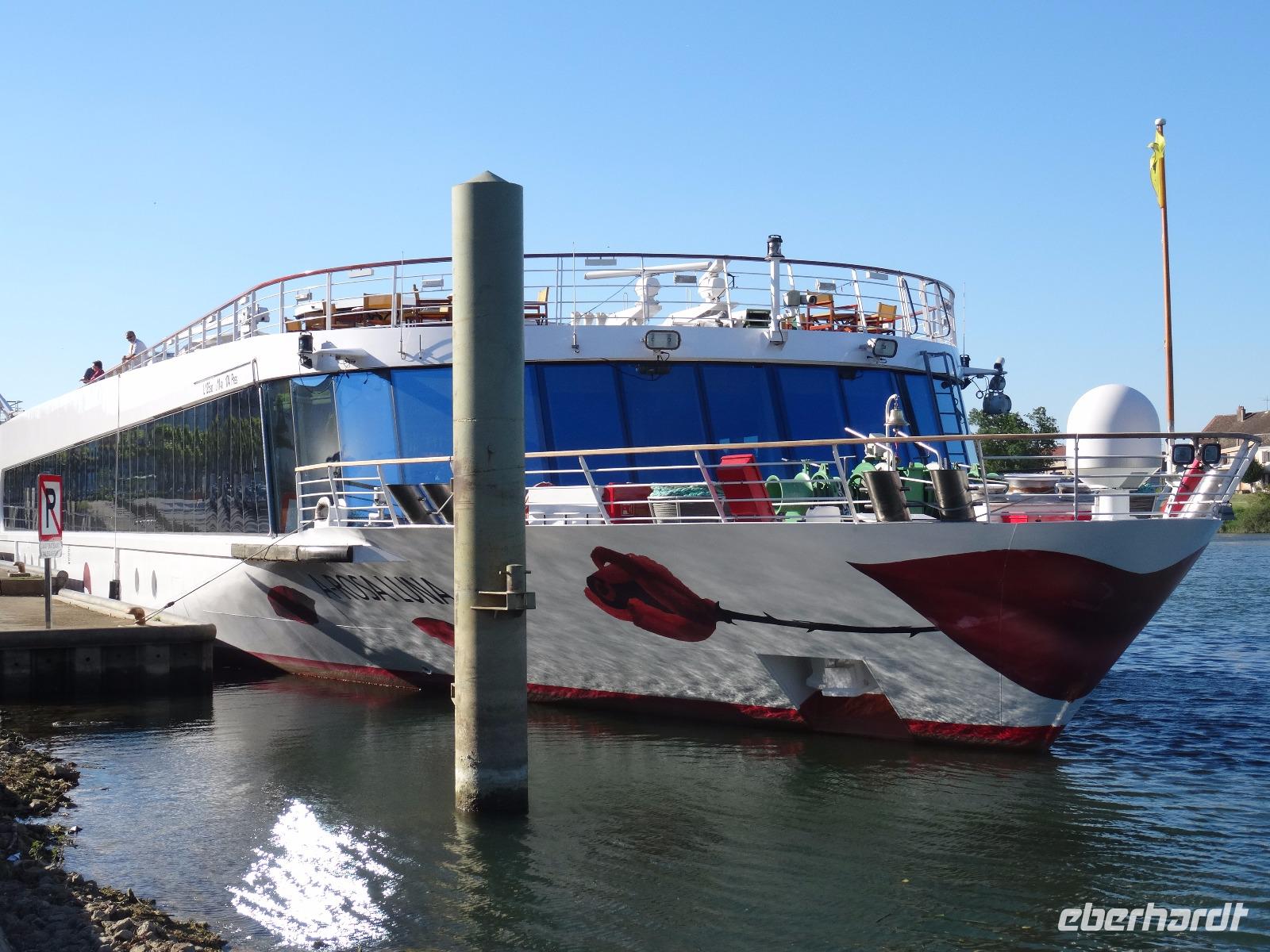 "Erreicht"... gab es gleich unser Abendessen. Es war ein elsässisches Menü, ganz anders als auf der A-ROSA LUNA...