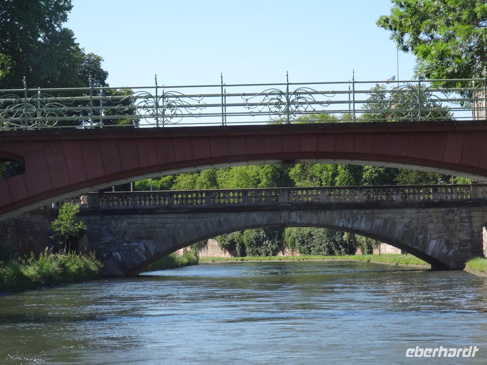 Die Koffer auf die Zimmer gebracht, kurz frisch gemacht, liefen wir bei hochsommerlichen Temperaturen gemeinsam zur Bootsanlegestelle an der Ill.