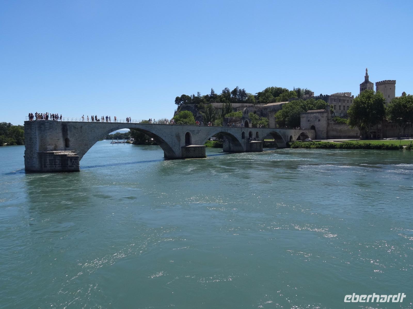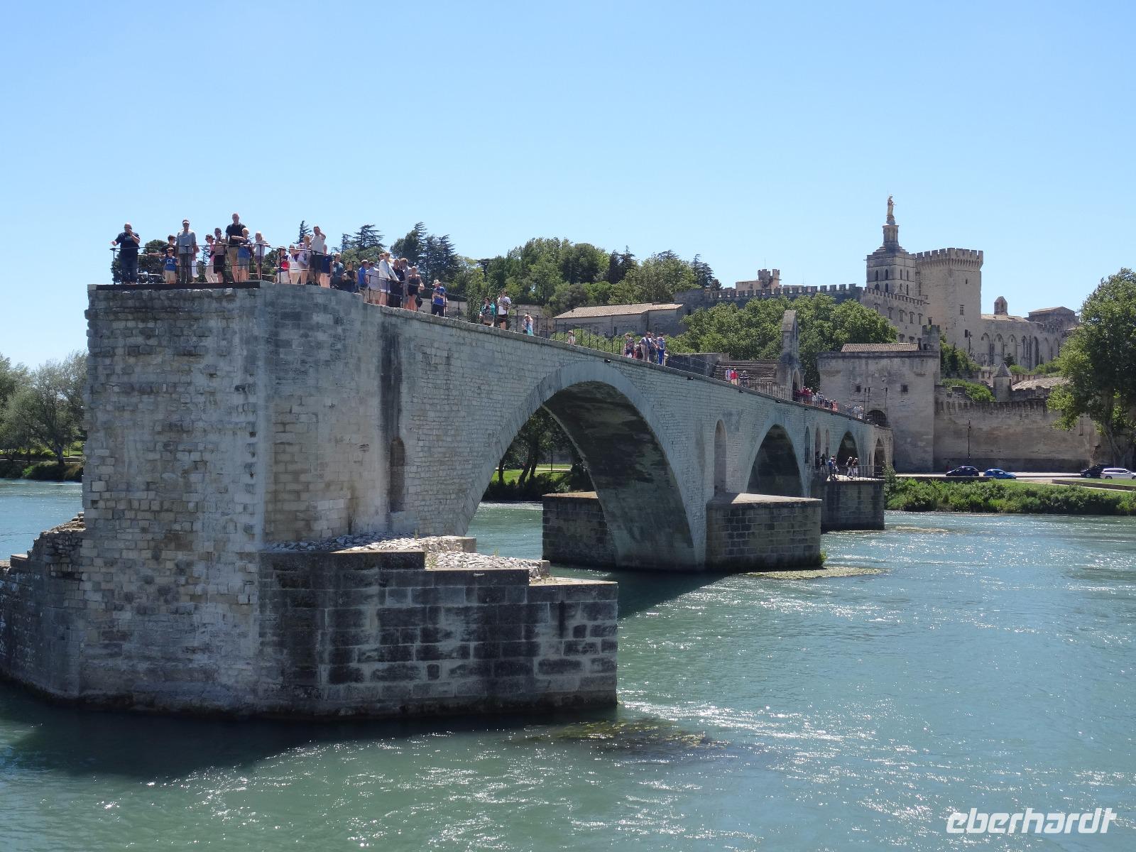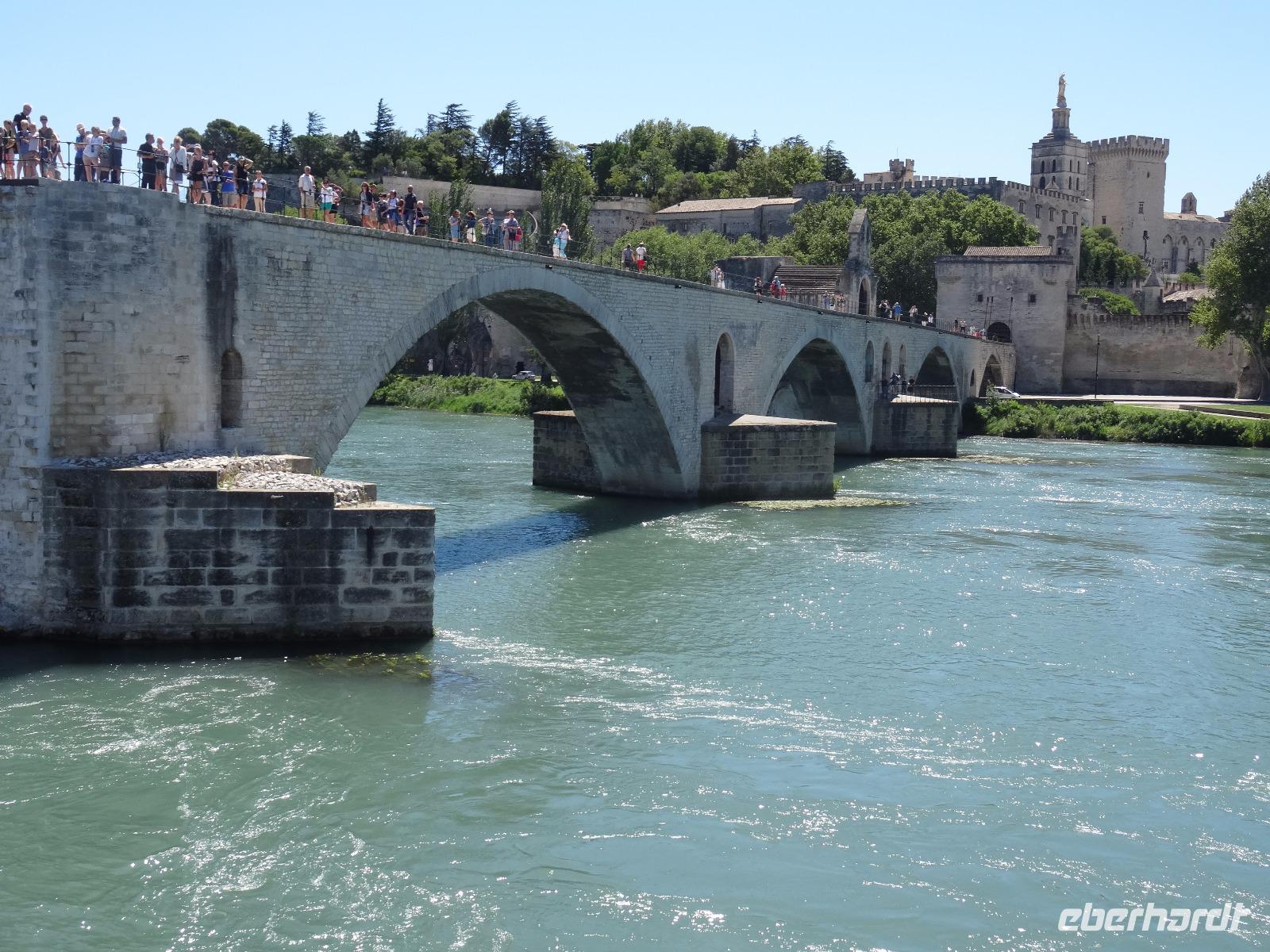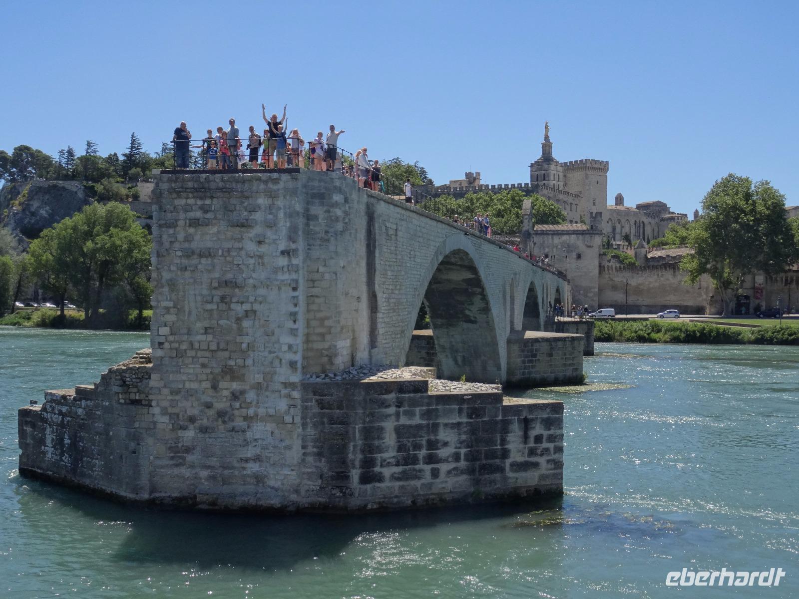 Zuerst liefen wir zur berühmte Brücke -Saint Benzet- aus dem Lied "Sur le pont d' Avignon". Leider gibt es heute nur noch einen Teil zu bewundern, denn Krieg und Hochwasser reduzierten die einst aus 22 Schwüngen bestehende Brücke auf vier Bögen.