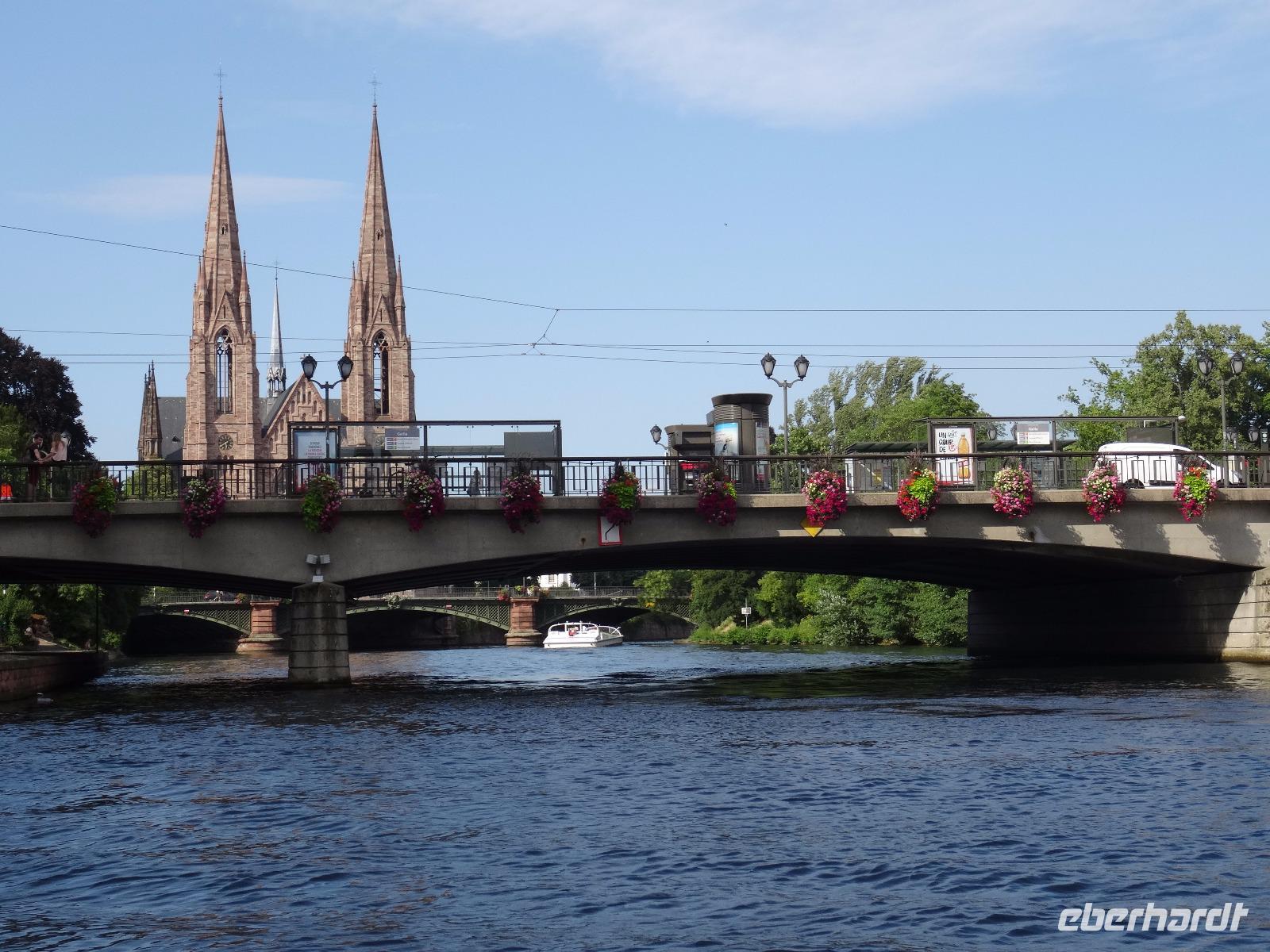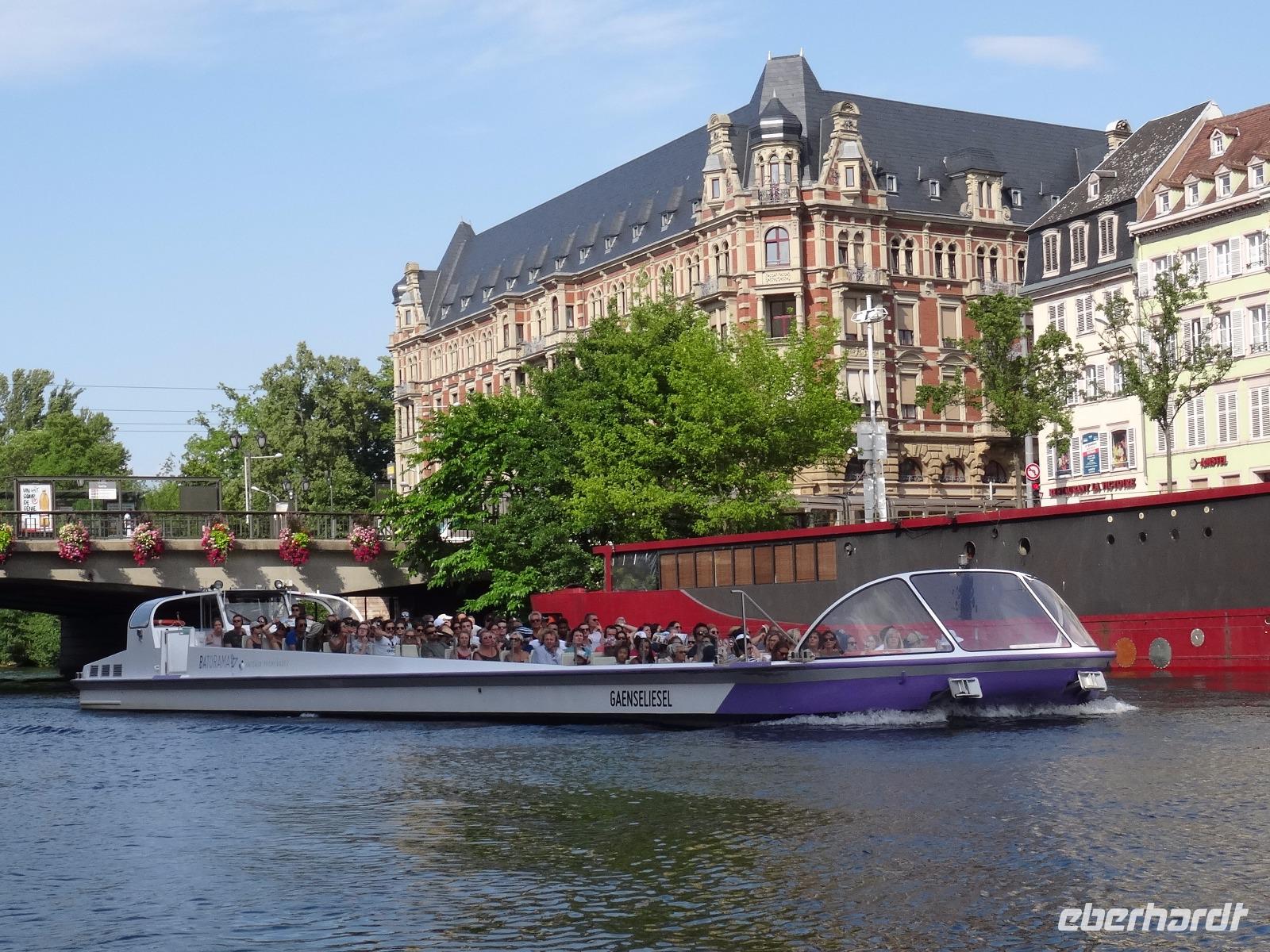 Angekommen wartete bereits ein "kleines Boot" auf uns, wo wir auf ein wenig frischen Wind während der 75-minütigen Fahrt entlang der Ill mit ihren Armen hofften. Wir hörten gespannt die wechselhafte Geschichte der Stadt über die Kopfhörer.