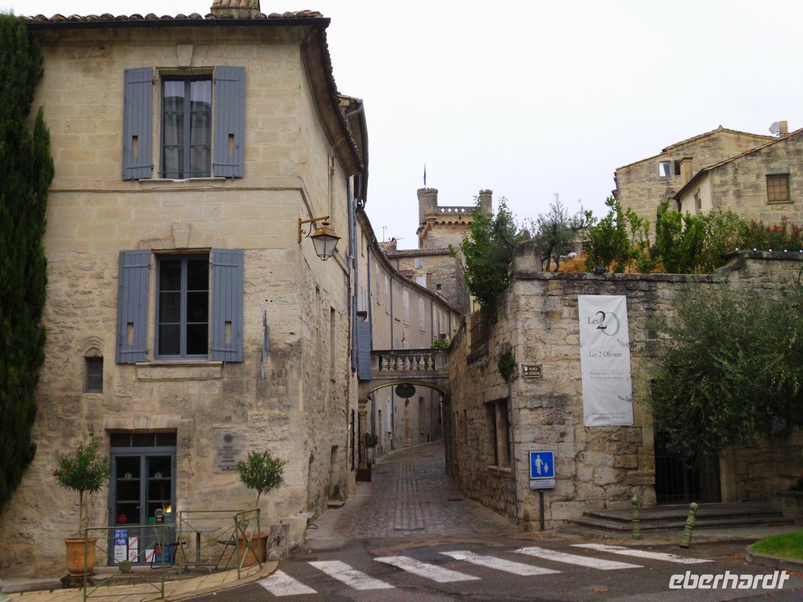 Ein weiterer Ausflug führ durch die Provence in das kleine Örtchen Uzes und zur Pont du Gard. Hier erfahren wir viel über die typische Landschaft in der Provence, die vielen Zypressen und Platanen. Napoleon war es, der die ersten Platanen pflanzte, damit seine Soldaten im Schatten marschieren konnten. Uzes, die kleine mittelalterliche Stadt mit ihren großzügigen Plätzen und den vielen Platanen begeistert uns alle. Später erfahren wir zu Pont du Gard, ein Aquädukt, vor über 2000 Jahren von den Römern gebaut, um Wasser in die weiten Landstriche zu transportieren.
