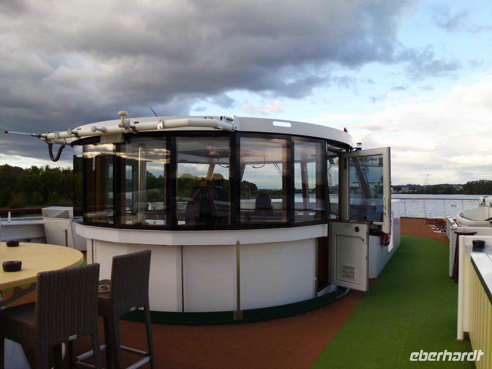 Am Nachmittag machen wir uns mit dem Schiff vertraut, es folgt eine kurze Sicherheitsschulung in der Bar Lounge und später präsentiert Monika das Ausflugsprogramm für den südlichen Teil unserer Tour. Sail away heißt es 21 Uhr, wir verlassen Lyon und lassen den Abend in der Bar Lounge ausklingen.