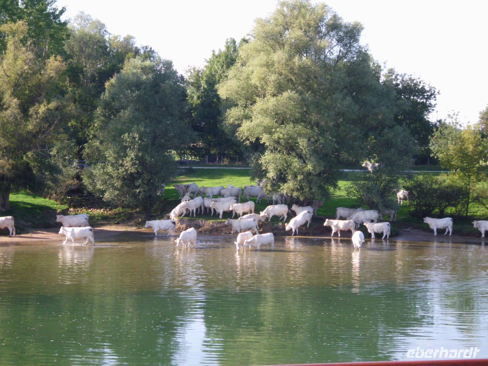 Pünktlich zurück zum Mittagessen legt auch das Schiff in Avignon ab und die beeindruckende Stadt gibt noch einmal schöne Fotomotive frei. Am Nachmittag legen wir in Arles an. Wir haben nun den südlichsten Hafen unserer Reise erreicht. Die etwas aktiveren Gäste erkunden die Camargue per Jeep und eine große Gruppe nimmt am Busausflug in die Camargue teil. Ein tolles Erlebnis. Wir fahren durch die spiegelglatte Landschaft der Camargue, vorbei an den Bauernhöfen und haben auch die Möglichkeit Camargue Stiere und Pferde zu fotografieren, ebenso die Flamingos, die sich in dem Feuchtgebiet hier wohlfühlen. Die Stiere werden eigens für die Stierkämpfe gezüchtet, aber die Latte für die Auswahl ist hoch angesetzt, nur einer von 100 schafft es in die engere Auswahl.