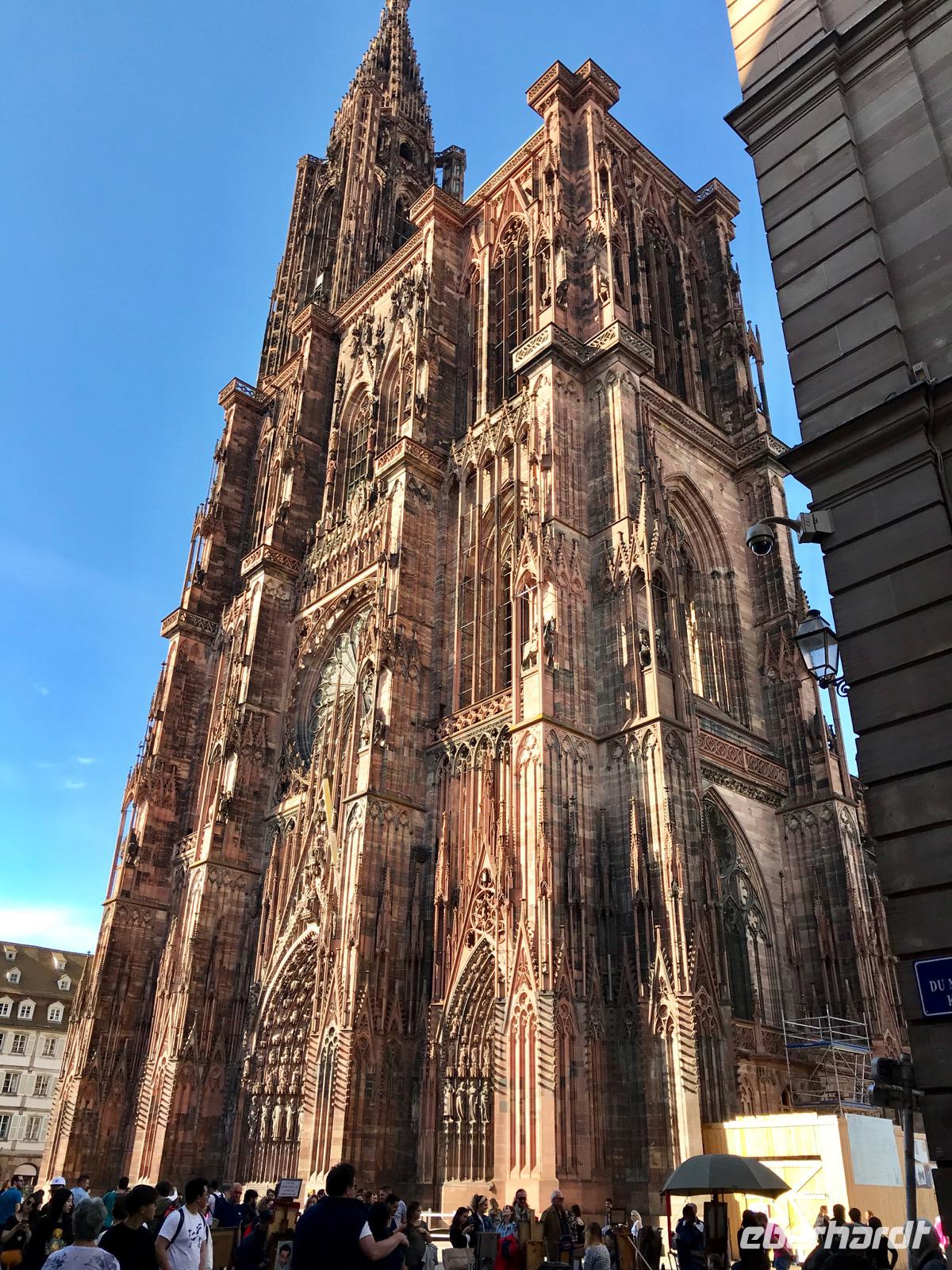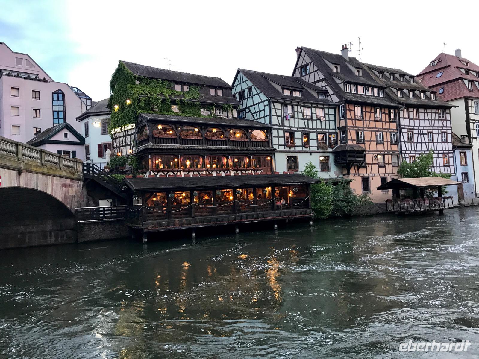 Heute geht es früh aus den Federn. Koffer packen, Kofferanhänger anbringen, Koffer vor die Tür, frühstücken. Der Bus aus Dresden mit Maik Richter von Satra Eberhardt steht pünktlich 7:45 Uhr vor der Tür. Wir sind recht zügig in Straßburg, vorbei am Juragebirge, durch die Burgundische Pforte und entlang der Vogesen in den Elsass. Manchmal regnet es, aber in Straßburg ist Sommer. Nach der Ankunft und einer sehr kurzen Pause machen wir uns auf den Weg zur Anlegestelle des Panoramaschiffes Batorama. Wir durchqueren recht zügig das Münsterviertel, betrachten sehr schnell das Münster, staunen über die handwerkliche Kunst der Steinmetze und eilen schon weiter. Schade, hier hätte man noch Zeit gebraucht, aber das Münster schließt 18 Uhr und die Aussichtsplattform wird renoviert bis zum Juli. Also sind wir nicht zur richtigen Zeit da. Der Ausflug auf dem kleinen Boot ist wirklich sehr gut. In unserer Muttersprache sind die Erklärungen und wir erleben die unterschiedlichen Bauepochen vom Mittelalter, über den Klassizismus und Historismus bis zur Neuzeit. Auch die Gebäude der Europastadt sind zu sehen. Insgesamt sind wir froh, das Eberhardt Travel dieses Nachprogramm organisiert hat. Das Abendessen nehmen wir dann im „Le Gruber", einer urigen Gasstätte im Münsterviertel. So geht auch dieser erlebnisreiche Tag zu Ende und manch einer lässt ihn bei einem Glas Wein ausklingen.