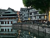 Am frühen Morgen fahren wir in Dresden mit dem Bus los und halten an einigen Stationen entlang der Bundesautobahn A4, um noch weitere Gäste auf unserer Reise nach Frankreich mitzunehmen. In Jena ist unsere Reisegruppe mit 32 Gästen, dem Busfahrer Peter Fentrohs von Auerbachs Reisen und unserer Reiseleiterin komplett. Unsere Reise ist lang, aber wir haben viel zu besprechen - was gibt es auf unserer Reise zu sehen, welche Ausflüge muss man unbedingt wahrnehmen. Die Reise führt uns über Erfurt, Eisenach, Frankfurt und Karlsruhe an die Landesgrenze. Dann ist es gar nicht mehr weit bis zu unserem Übernachtungsort in Straßburg. Wir übernachten im Hotel Novotel Strasbourg Centre Halles, einem 4-Sterne-Hotel ganz in der Nähe zur Grande Ile, wo wir gegen 17 Uhr ankommen. Das Hotel ist recht modern eingerichtet, die Zimmer sind annehmbar und so vergessen wir recht schnell, dass der Zugang zum Hotel sehr belastend ist und im Foyer Baumaßnahmen stattfinden. Der Tag endet mit einem französischen 3-Gänge- Menü. Und wir staunen erstmalig über die Preise für Wein und Bier. Nach dem Abendessen im Hotel begeben wir uns auf einen kleinen Spaziergang in die Altstadt, immer entlang am Ufer des kleinen Flusses Ill kommen wir recht bald in das Viertel Petite France, sehen die überdachten Brücken und bewundern die alten Häuser im Gerberviertel. Es ist ein laues Abendlüftchen, das uns begleitet. Der Abend ist doch recht angenehm, manchmal kommt auch die Sonne noch hervor, bevor die Altstadt vom Abendlicht beleuchtet ist. Die Franzosen verbringen den Abend in den vielen alten Straßenrestaurants und wir erfahren ein wenig vom Leben der französischen Nachbarn und von savoir vivre, dem Genießen des Lebens. Ein schöner erster Urlaubstag geht zu Ende und wir sind gespannt auf das, was es in diesem Land zu erfahren und zu sehen gibt.
