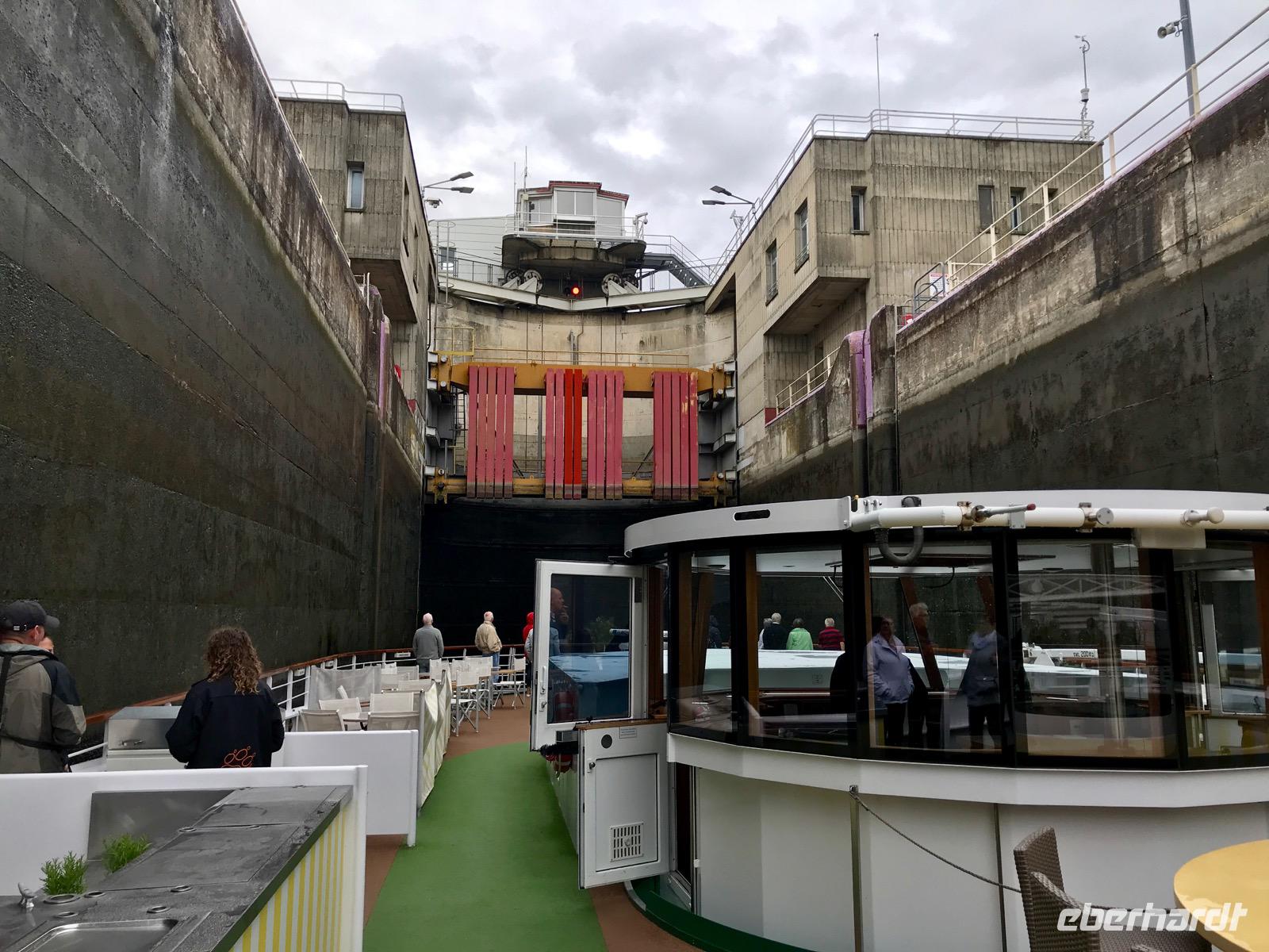 Wir erreichen Avignon am Nachmittag. Es war eine erlebnisreiche Nacht, denn man musste erst die Schiffsgeräusche verstehen lernen, und eine lange Fahrt. Die Fahrt wird uns von der Schiffsbesatzung kurzweilig gestaltet. Monika, die Ausflugsmanagerin, stellt uns die zweite Serie der Ausflüge detailliert vor. Leider muss man sich auch heute recht kurzfristig entscheiden. Danach werden uns die Möglichkeiten im SPA-Bereich vorgestellt und die neuen E-Bikes präsentiert, die man auch für Ausflüge nutzen kann. Nicht zuletzt erfahren wir etwas über die Orte, die das Schiff anläuft und es gibt Informationen zum Hafen. Am Nachmittag werden uns dann offiziell der Kapitän, der Hotelmanager und einig andere wichtige Offiziere vorgestellt. Und es gibt einen Willkommensdrink. Im Verlaufe der Fahrt auf dem breiten Fluss haben wir auch genügend Zeit das Prozedere an den Schleusen mitzuerleben. Wir werden in den nächsten Tagen von Lyon aus auf der Rhone zweimal (hin- und zurück) 282 km zurücklegen und dabei zweimal 12 Schleusen überwinden. Auf der Saone sind es nur zweimal 139 km und zweimal 3 Schleusen.