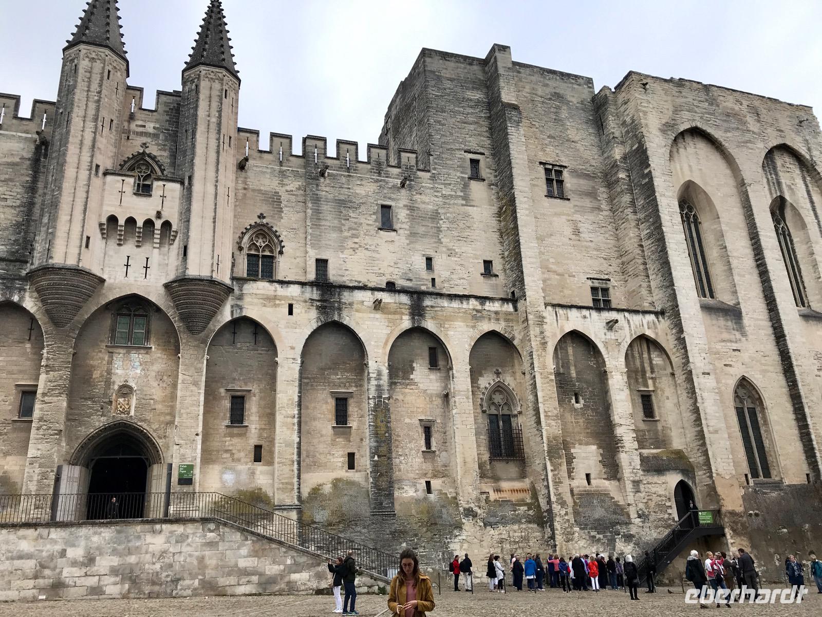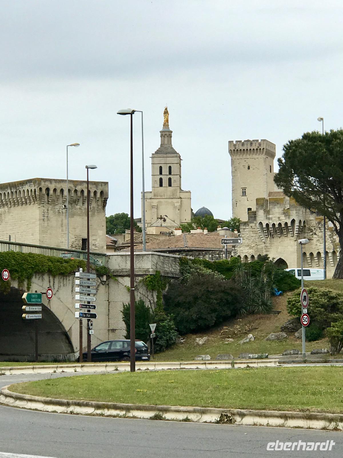 Avignon begrüßt uns aus der Ferne mit seinem imposanten Papstpalast und der gewaltigen Stadtmauer. Avignon ist eine der wenigen Städte, deren mittelalterliches Zentrum bis heute von einer Stadtmauer umgeben ist. Wir haben heute einen verregneten Tag, aber trotzdem finden sich einige wagemutige Reisende, bewaffnet mit dem Schirm, die den Ausflug am Abend wahrnehmen, um Avignon zu besichtigen. Es hat sich gelohnt, erfahren wir am nächsten Tag.