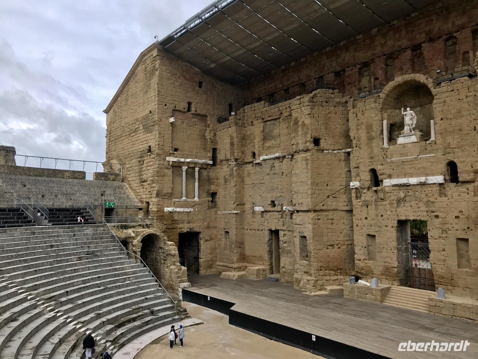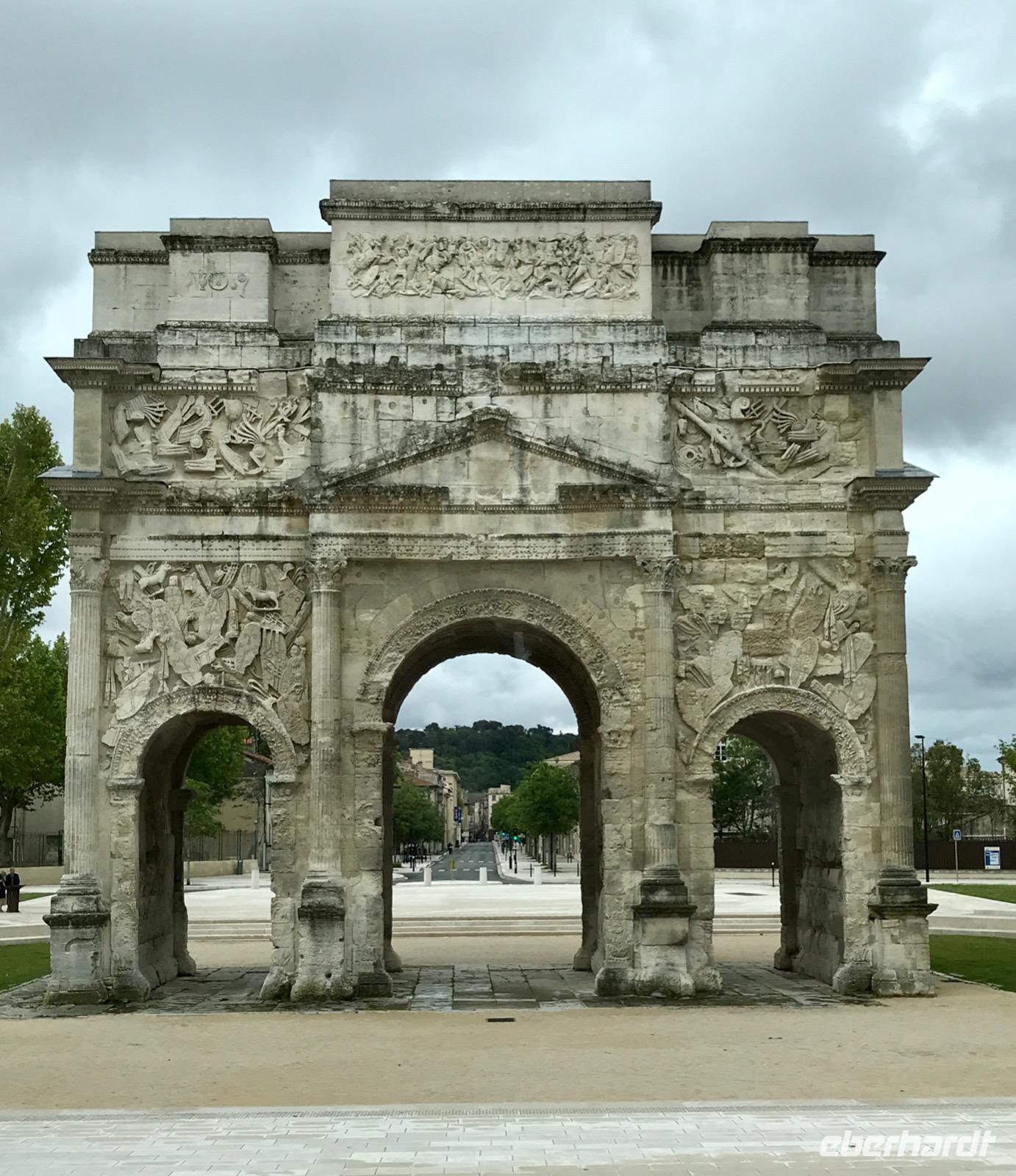 Um 15:30 Uhr erreicht das Schiff Chateauneuf-du-Pape. Ab dem 14. Jahrhundert hatten die Päpste und Erzbischöfe von Avignon ihre Sommerresidenz in diesem Ort. Es gibt einen kurzen Halt und schon beginnt der erste Ausflug nach Orange, zum Tor zur Provence. Die Stadt Orange ist bekannt für eine Reihe römischer Bauwerke. Ansehenswert ist der Stadtgründungsbogen, dessen Bau während der Herrschaft von Kaiser August begonnen worden ist und der sich an der Via Agrippa, der Verbindungsstrasse von Arles nach Lyon befindet. In der Innenstadt besuchen wir das Römische Theater aus dem 1. Jahrhundert n. Chr. Die Wand hinter der Bühne (103 m lang und 38 m hoch) wurde von Louis XIV. als schönste Wand des Landes betitelt. Im Mittelalter wurde dieser Bau als Steinbruch verwendet und bis in die Neuzeit entstand hier ein reguläres Wohnviertel mitten im Theater. Erst 1824 begannen Erneuerungsarbeiten, so dass man heute ein gewaltiges Theater vorfindet, in dem Theateraufführungen und Konzerte stattfinden. Nach einer kurzen Stadtbesichtigung geht es zurück nach Avignon.