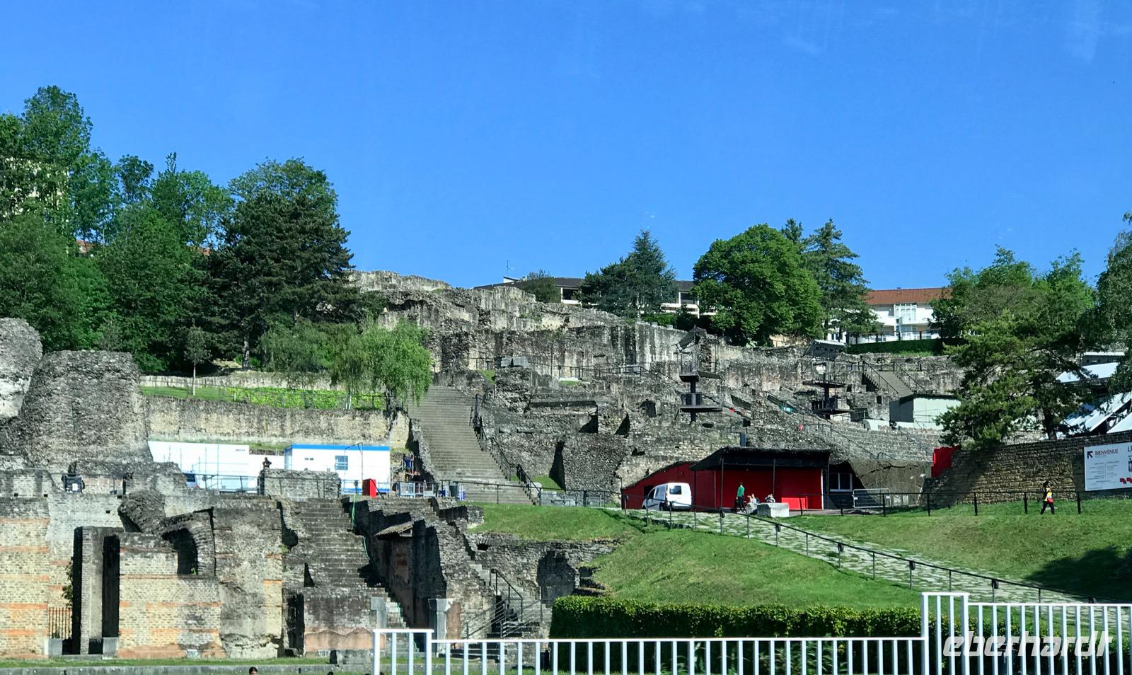 Am frühen Morgen legt das Schiff wieder in Lyon an. Lyon ist gewissermaßen der Knotenpunkt, von dem aus es nach Süden auf der Rhone und nunmehr nach Norden auf der Saone geht. Wir haben diesmal einen Liegeplatz am Quai Fillon, anders als bei der Einschiffung. Die Stadt sehen wir nur aus der Ferne. Wenn man individuell unterwegs ist, sollte man das Taxi nehmen, denn es ist nicht zu erlaufen. Lyon wurde 43 v. Chr. nach Übernahme durch die Römer zum Verwaltungszentrum Galliens ausgebaut. Die Stadt erhielt den aus dem Keltischen stammenden Namen Lugdunum. Im Laufe der Zeit hat sich der Name der Stadt zum heutigen „Lyon" entwickelt.