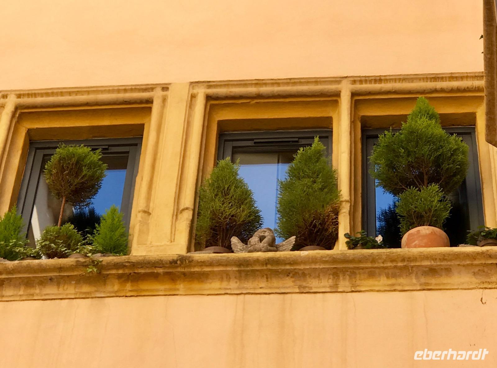 Am späten Nachmittag erreichen wir Lyon. Hier liegt die A-Rosa Luna, unser Kreuzfahrtschiff, am Quai Claude Bernard. Leider ist uns die Zufahrt zur Anlegestelle versperrt und die Polizei lässt auch gar nicht mit sich verhandeln. Es demonstrieren die Gelbwesten, die seit Monaten in Frankreich aktiv sind und nicht aufhören, ihre Forderungen gegenüber der Regierung lautstark vorzubringen. Da es im Zentrum von Lyon zu vielen Zerstörungen an den Gebäuden und Geschäften gekommen ist, finden die Demonstrationen jetzt an der Uferpromenade der Rhone statt. Wir können also ein besonderes Schauspiel aus nächster Nähe beobachten, eine Auseinandersetzung zwischen Polizei und Demonstranten. Es gelingt uns dann auf Umwegen doch das Schiff zu erreichen und einzuschiffen (was für ein merkwürdiges Wort). Die Damen erhalten zur Begrüßung eine rote Rosa, ein bisschen Entschädigung auch für die Aufregung, und wir kommen gerade zur Sicherheitseinweisung zurecht. Anschließend werden wir über das Ausflugsprogramm der nächsten drei Tage informiert. Wenn wir auch auf der Busfahrt schon viel über die Ausflüge erfahren haben, so ist in dieser zusammengefassten Form doch noch einiges neu für uns. Leider muss man sich noch am selbigen Abend entscheiden, was man zwischen den Fahrten auf dem Fluss erleben möchte. Dann endlich die Zimmer beziehen und zum Abendessen. Die Vielfalt der Speisen am Buffet ist umwerfend, so wird es auch die nächsten Tage sein. Das Personal ist freundlich und immer zuvorkommend, manchmal auch erheiternd, wie Josef aus Ungarn. Nach dem Abendessen heißt es Sail away. Wir verfolgen das Ablegen des Schiffes vom Sonnendeck aus. Die Sonne scheint leider nicht und schon bald wird es regnen. Aber wir lassen uns nicht entmutigen - schließlich geht es gen Süden zum Licht und zur Sonne.