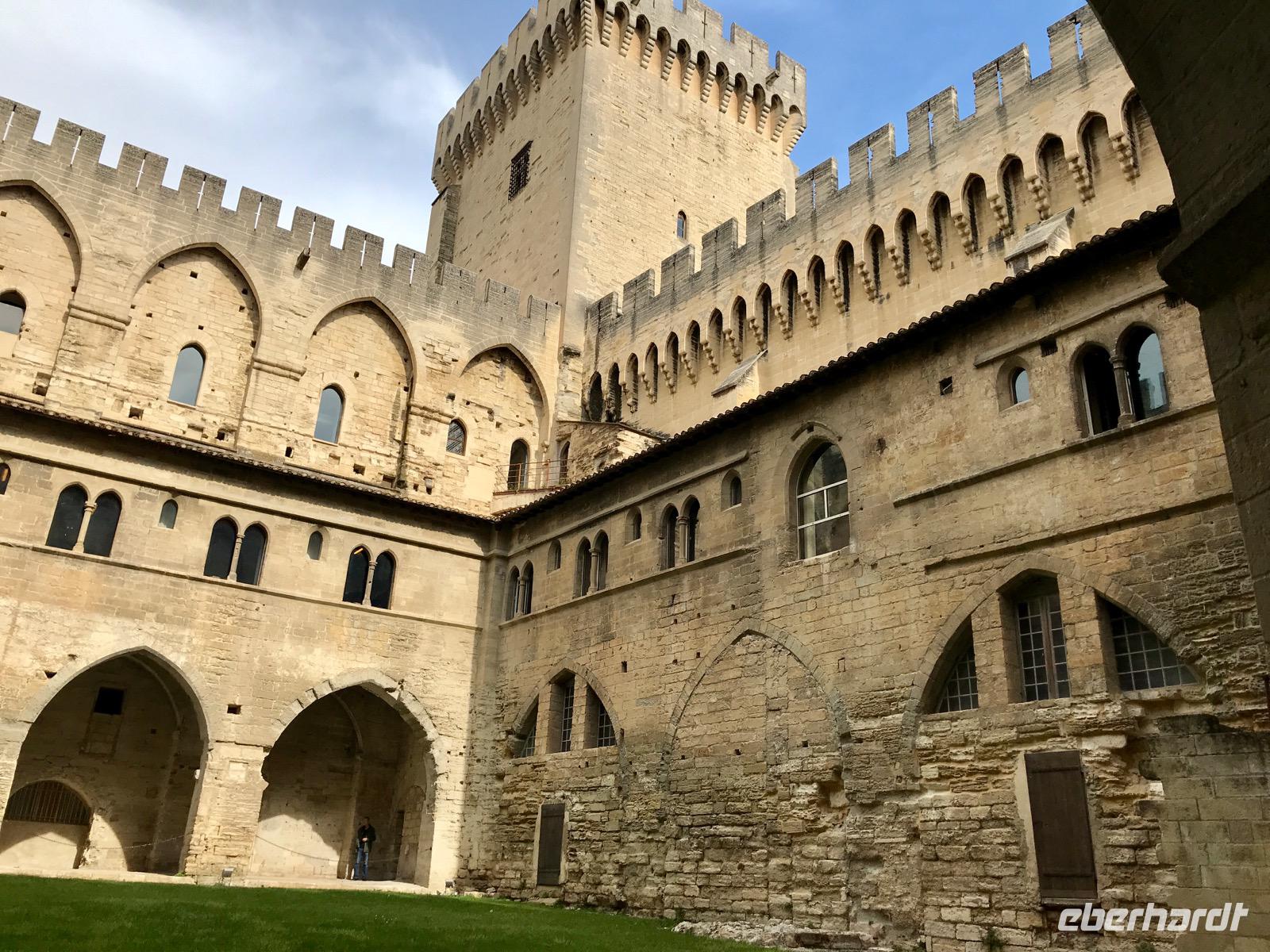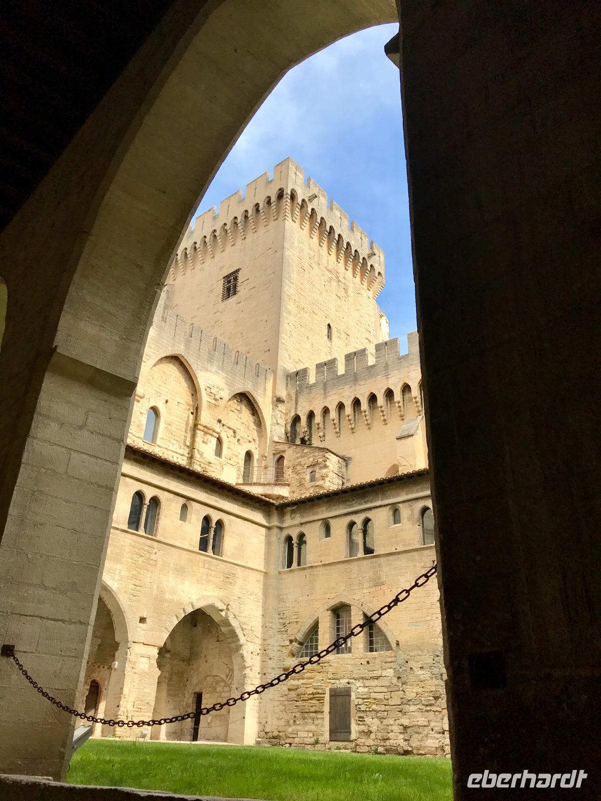 Der Morgen in Avignon gehört uns. Ziel unseres Ausflugs ist der Papstpalast. Durch verwinkelte Gassen, entlang von herrschaftlichen Palästen, vorbei an Kirchen und Kapellen - alle Wege führen zum Papstpalast. Anfang des 14. Jahrhunderts siedelte hier Papst Clemens V. und es folgten sieben weitere Päpste, nach dem Kirchenschisma kamen dann noch zwei Gegenpäpste dazu. Der festungsartige Palast wurde jeweils erweitert und verschönert. Unser Weg führt durch Prunksäle, Kapellen, Privatgemächer des Papstes, über Terrassen mit wunderbaren Ausblicken auf die Stadt und die Rhone. Wir erfahren viel über die Päpste und warum Avignon zur Papststadt wurde. Der Rückweg geht durch die Altstadt vorbei an der Kirche St. Agricol. Schade, es war so wenig Zeit, Avignon näher zu erkunden. Als es Mittag legt das Schiff ab. Zunächst fährt das Schiff in Richtung Pont d'Avigon, eigentlich Pont Saint-Benezet, zur Brücke im Fluss. Von den 22 Brückenbögen, die im 14. Jahrhundert über beide Arme der Rhone gebaut worden waren, stehen heute noch vier, so dass die Brücke im Fluss endet. Monika, die Ausflugsmanagerin erzählt uns die Geschichte der Brücke über den Lautsprecher, wir stehen auf dem Sonnendeck und lauschen den Worten und der Musik, die vom Tanz auf der Brücke erzählt - Sur le Pont d'Avignon. Es ist ergreifend. Dann wendet unser Schiff und wir fahren weiter nach Süden.
