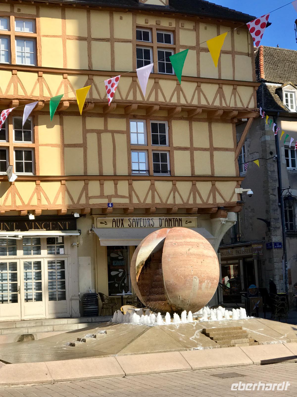 Die Sonne scheint, was will man mehr. Die Uferstraße ist direkt an der Anlegestelle und in erster Reihe stehen die kleinen malerischen Häuser. Wir fallen förmlich vom Schiff in die Stadt. Ein Teil unserer Reisegäste nimmt heute am Vormittag an einem Ausflug nach Dijon, in die Stadt der burgundischen Herzöge teil. Auf der „Route des Grands Crus" fahren wir durch sanft geschwungene Weinberge nach Dijon, die historische und heutige Hauptstadt des Burgunds. Der Stadtrundgang führt uns zum imposanten Palast der Herzöge, die bereits im Mittelalter ein gewaltiges Reich regierten. Die Stadt Dijon ist berühmt für den Senf und ein wichtiger Handelsplatz für Burgunderweine.