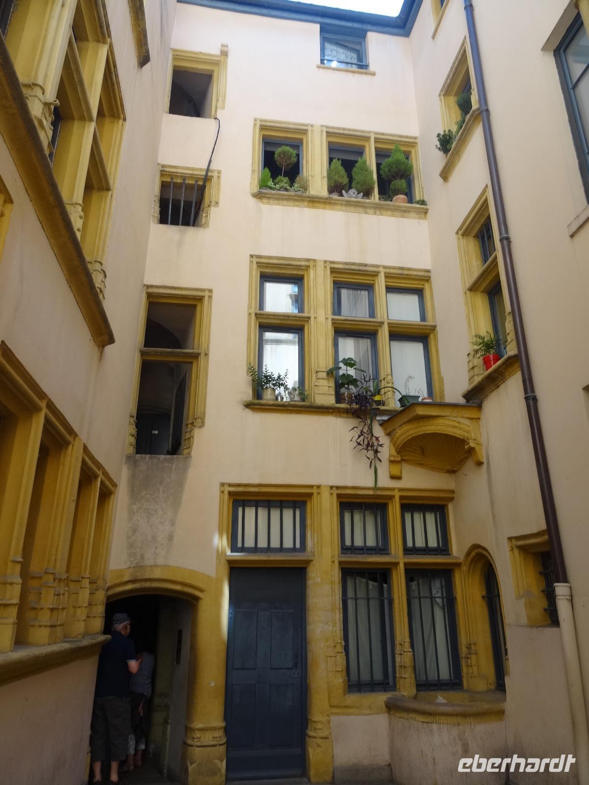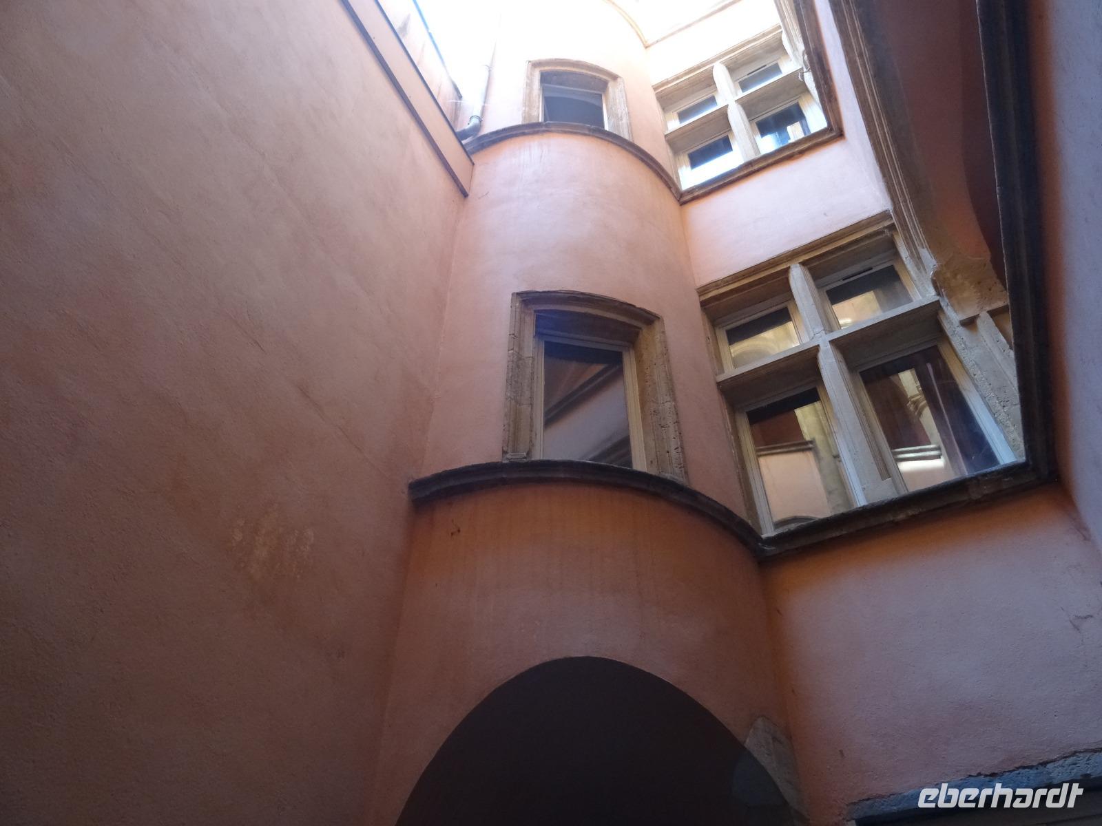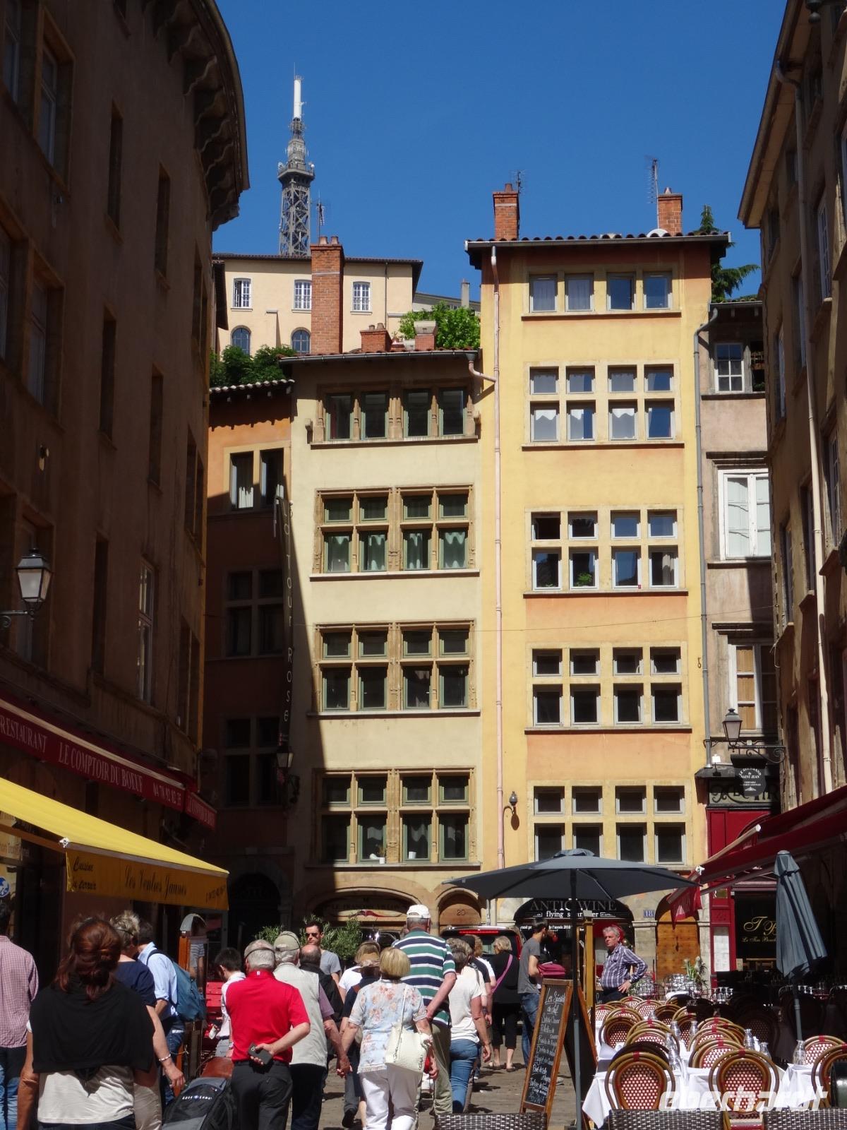 Im weiteren Verlauf gelangten wir zur Altstadt "Vieux Lyon", wo ein Gang durch die "Traboules" ein Muss war. Den Reiz dieser "Hausflure" macht die Mischung aus Alltag und jahrhundertalte Architektur aus. Sie verbinden die gegenüberliegenden Straßenzüge und dienten früher dem trockenen Transport der Seide.