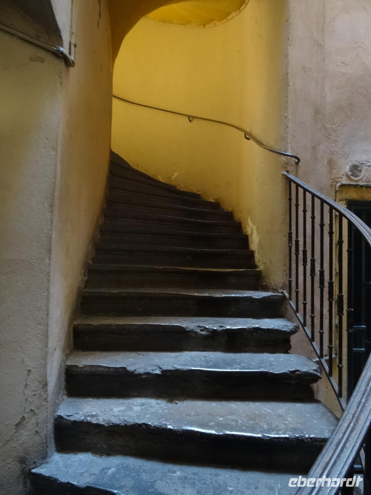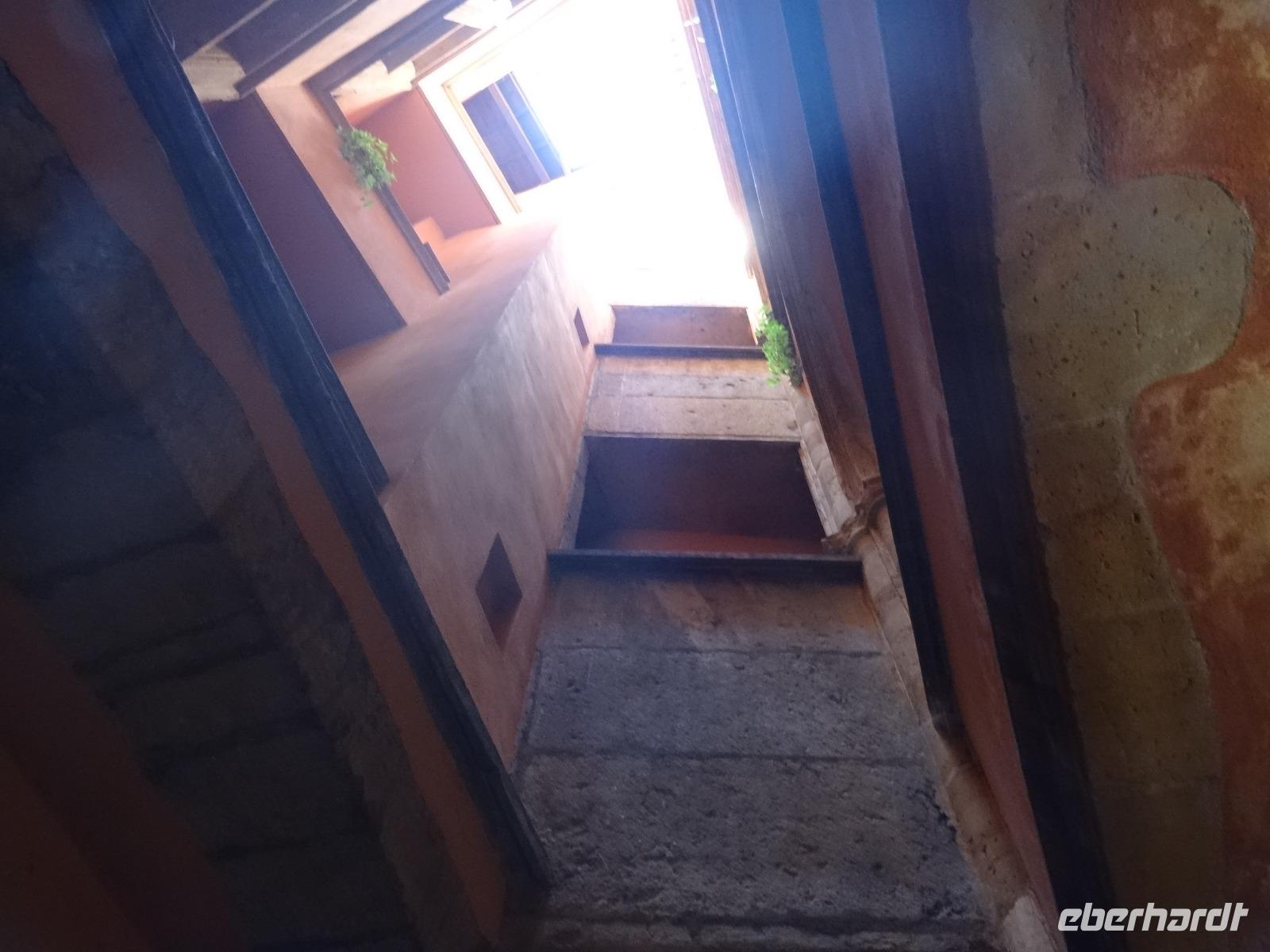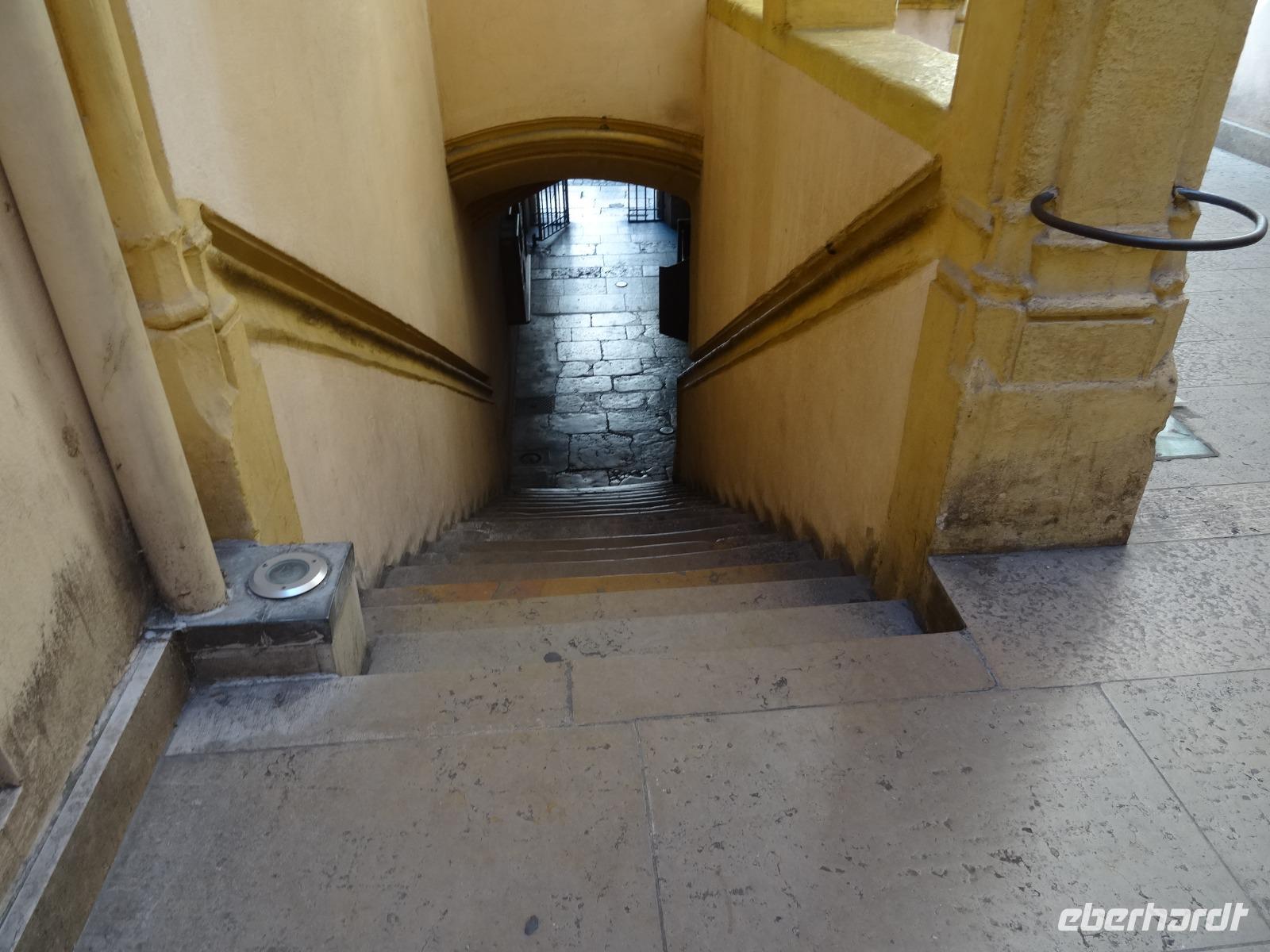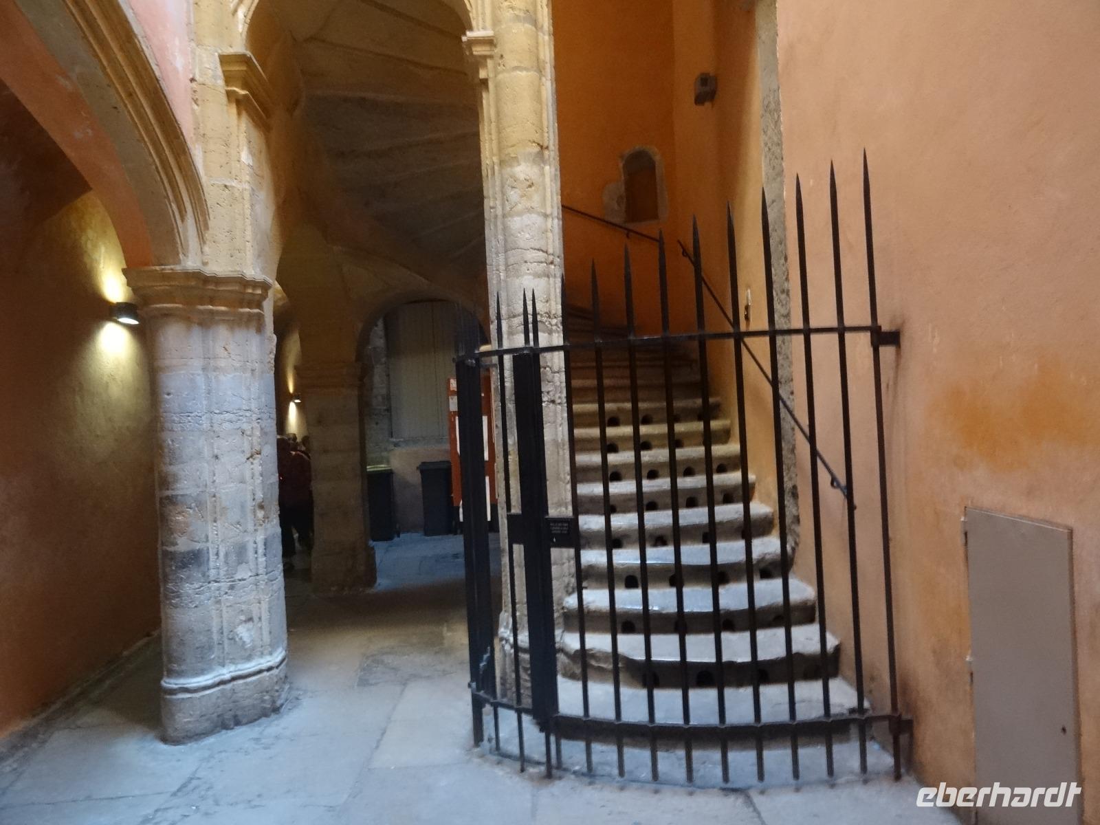 Im weiteren Verlauf gelangten wir zur Altstadt "Vieux Lyon", wo ein Gang durch die "Traboules" ein Muss war. Den Reiz dieser "Hausflure" macht die Mischung aus Alltag und jahrhundertalte Architektur aus. Sie verbinden die gegenüberliegenden Straßenzüge und dienten früher dem trockenen Transport der Seide.