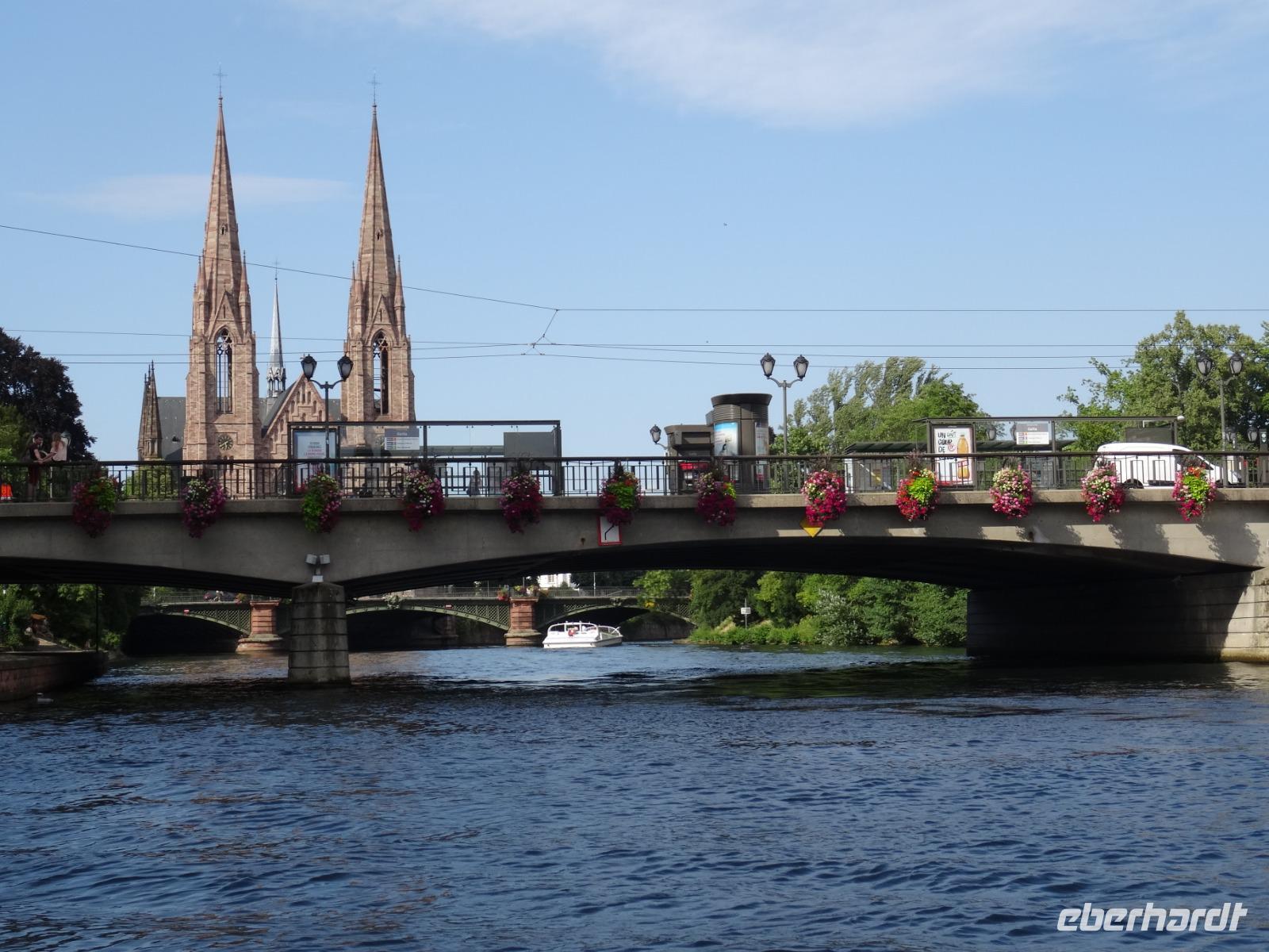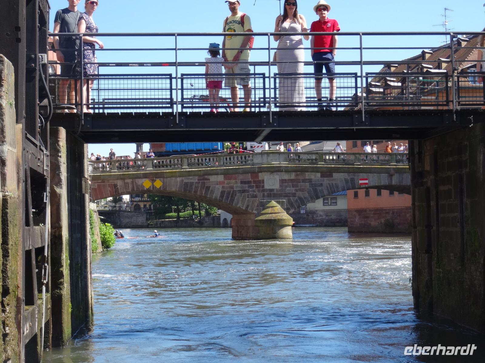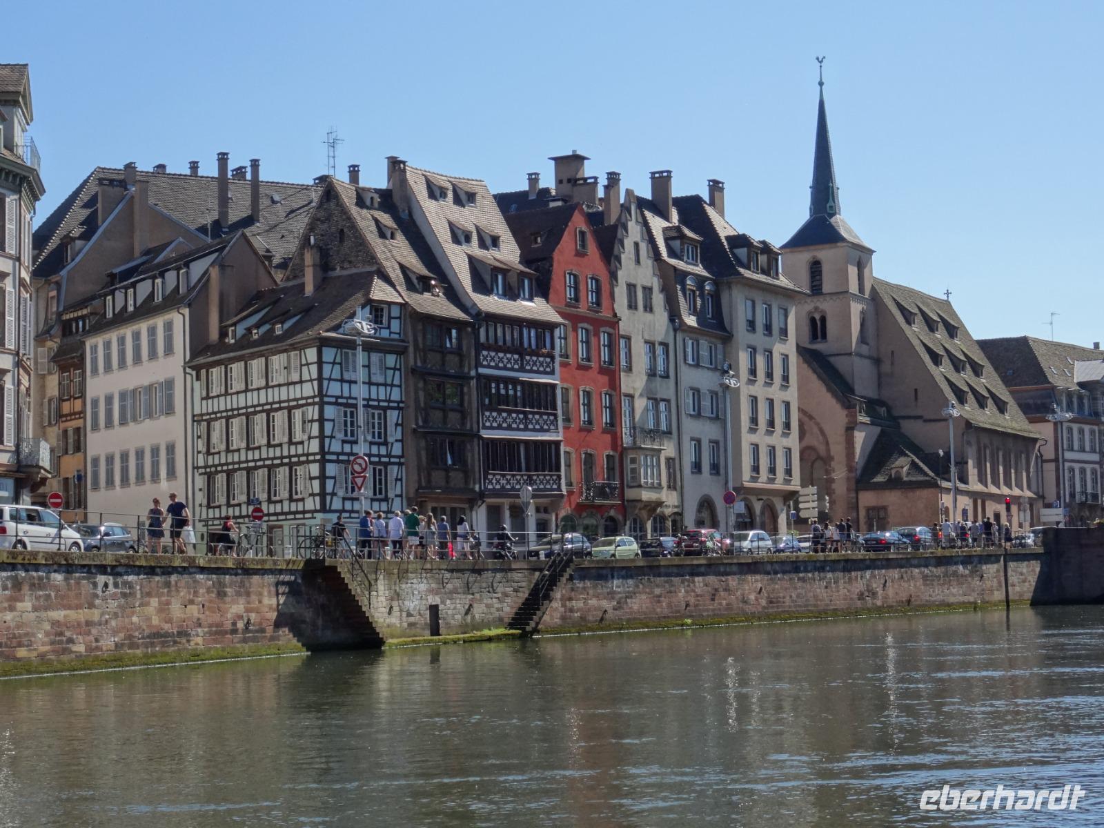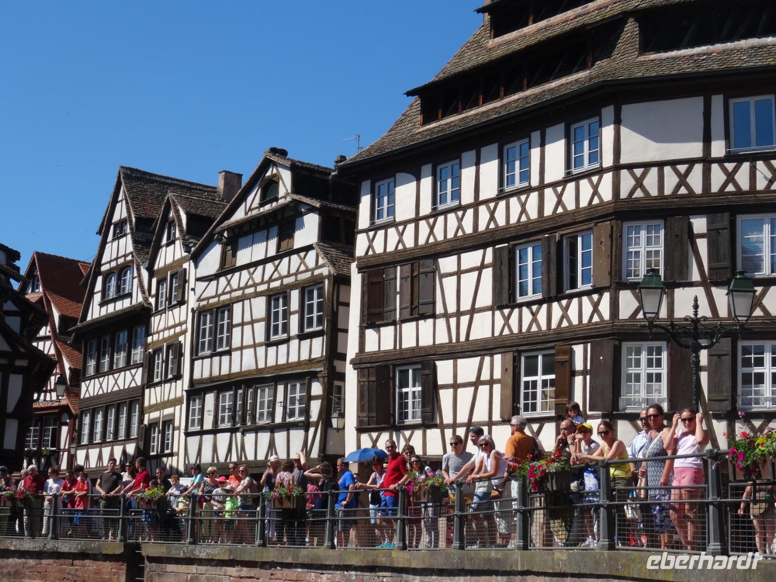 Die Koffer auf die Zimmer gebracht und kurz erfrischt, liefen wir dann zur Bootsanlegestelle an der Ill. Bei den warmen Temperaturen sowie Menschenmassen in der Stadt war dies für viele Reisegäste schon eine große Herausforderung.