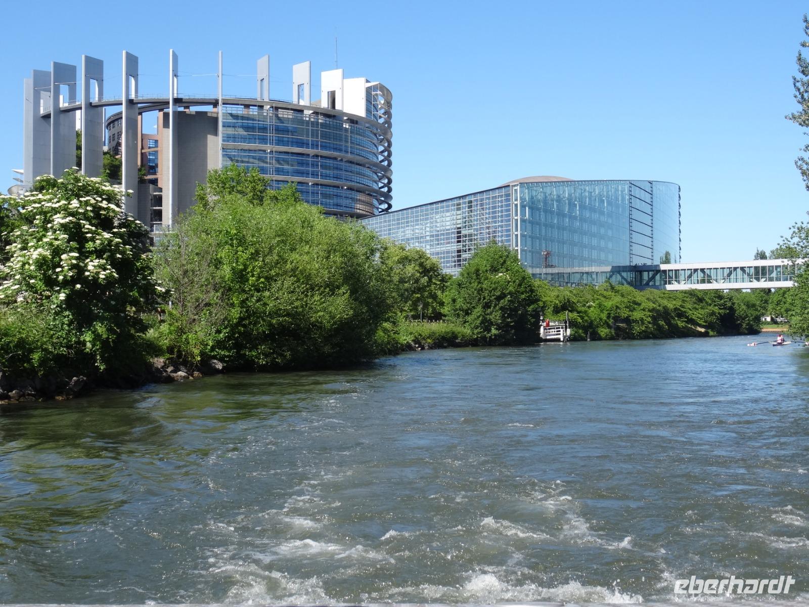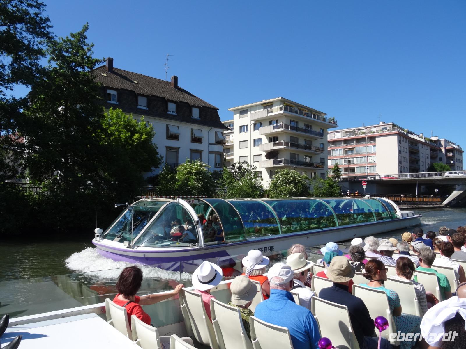 Angekommen wartete bereits ein "kleines Boot", welches uns 75 Minuten entlang der Ill und ihren Armen schipperte. Wir lauschten gespannt der wechselhaften Geschichte der Stadt über Kopfhörer. Beeindruckend "Klein Frankreich" und die "EU-Glaspaläste".
