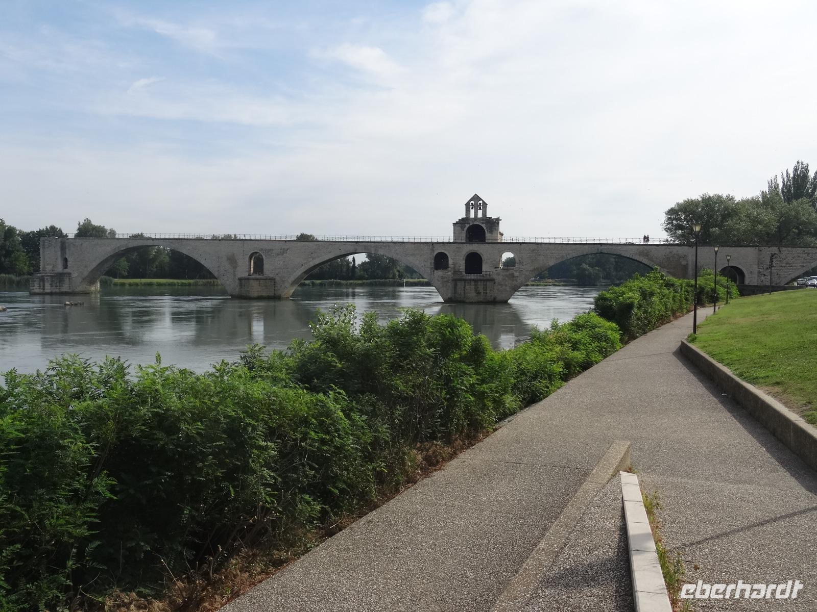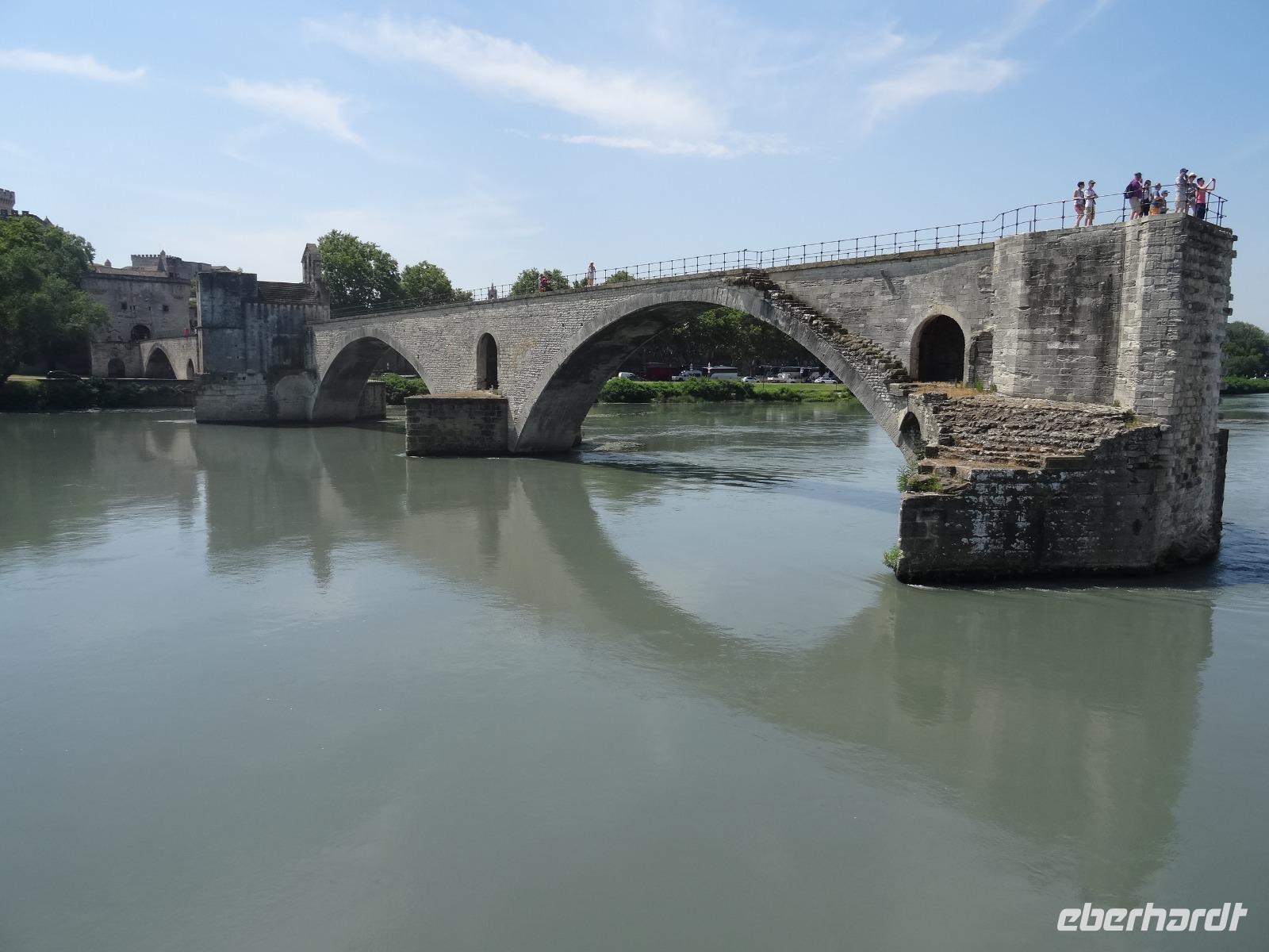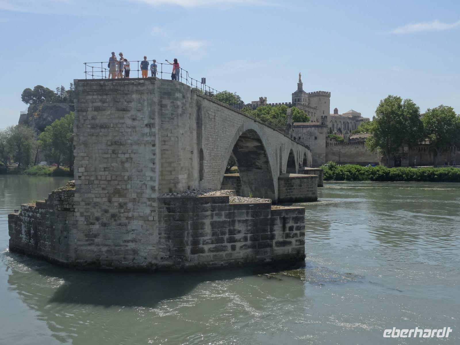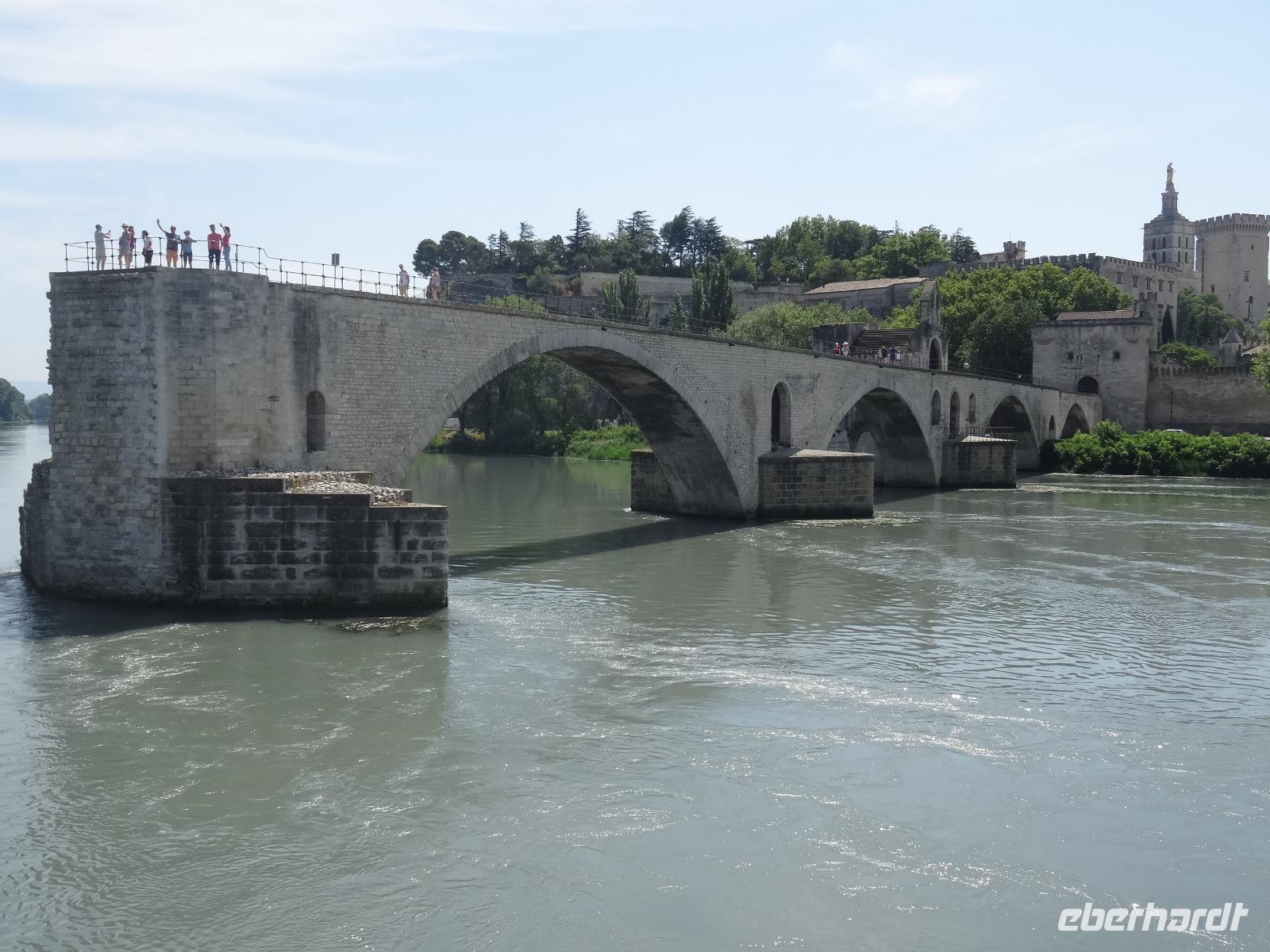 Nicht weniger beeindruckend war der folgende Blick auf die berühmte Brücke "Saint Benzet" aus dem Lied "Sur le pont d' Avignon". Leider gibt es nur noch einen Teil zu bewundern, denn Krieg und Hochwasser reduzierten die einst aus 22 Schwüngen bestehende Brücke auf vier Bögen.