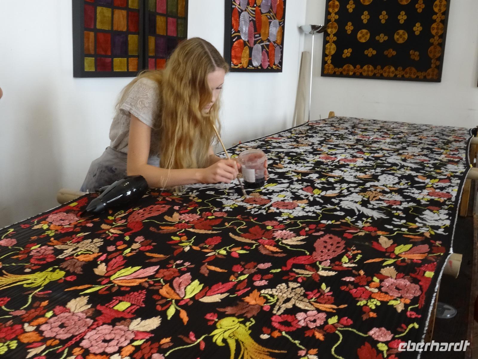 Apropos Seide. Der eine Teil des Ausflugsgäste erreichte im weitern Verlauf die Seidendruckerei "L Atelier de Soire". Hier konnte man in die Welt des feinen Stoffes, welcher Lyon berühmt und reich gemachte hatte, eintauchen.