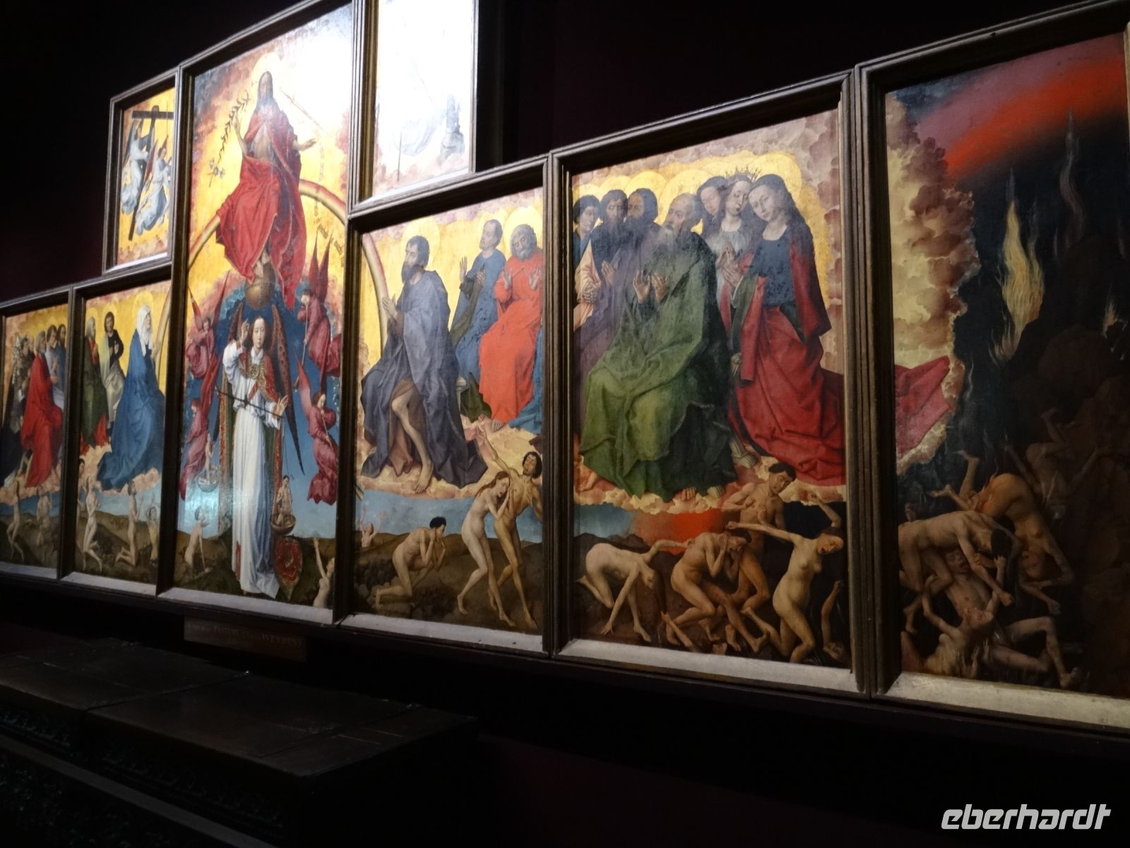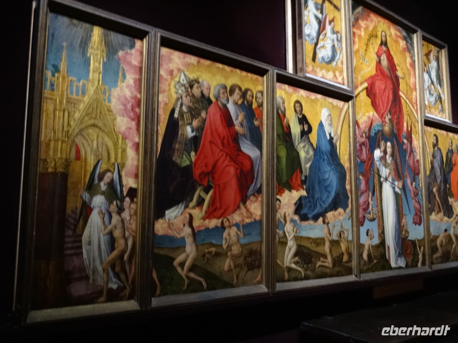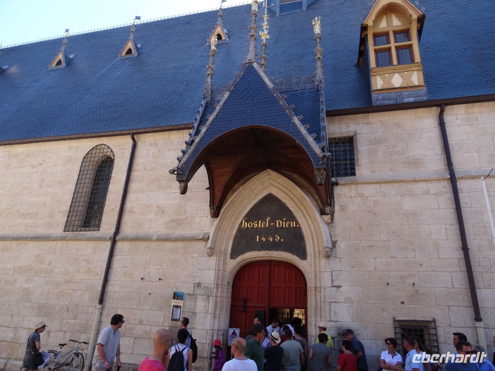 Entlang den Weinorten der Cote d'Or erreichten wir den Ort Beaune mit dem berühmten mittelalterlichem Krankenhaus "Hotel Dieu". Dessen Gründer Nicolas Rolin hat dieses beispielhafte Krankenhaus im 14. Jahrhundert als "Palast für die Armen" errichten lassen und fungierte über 500 Jahre zu diesem Zweck. Erst seit 1977 ist es Museum sowie Altersheim. Nicht nur das Museum an sich beeindruckte, sondern auch die Architektur des Hauses waren überwältigend. Die Dächer waren mit farbig glasierten Dachziegeln gedeckt. Wir schauten uns die Schlafsäle, Küche und Apotheke an. Absoluter Höhepunkt unter allen Sehenswürdigkeiten bildete ein "Wandteppich der tausend Blüten" sowie der Weltgerichtaltar von Roger van der Weyden.